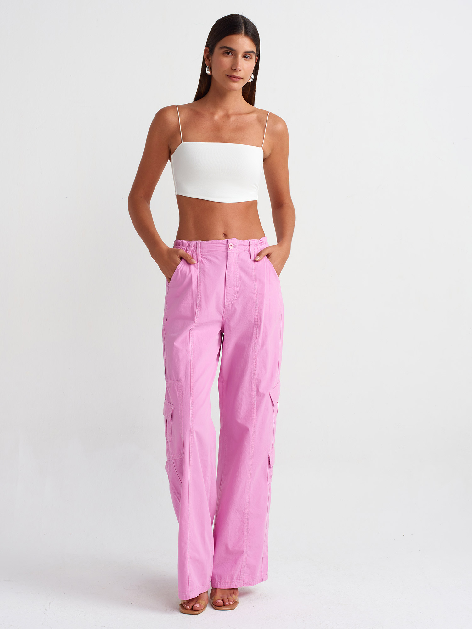 70960 Kargo Cepli Pantolon-Pembe