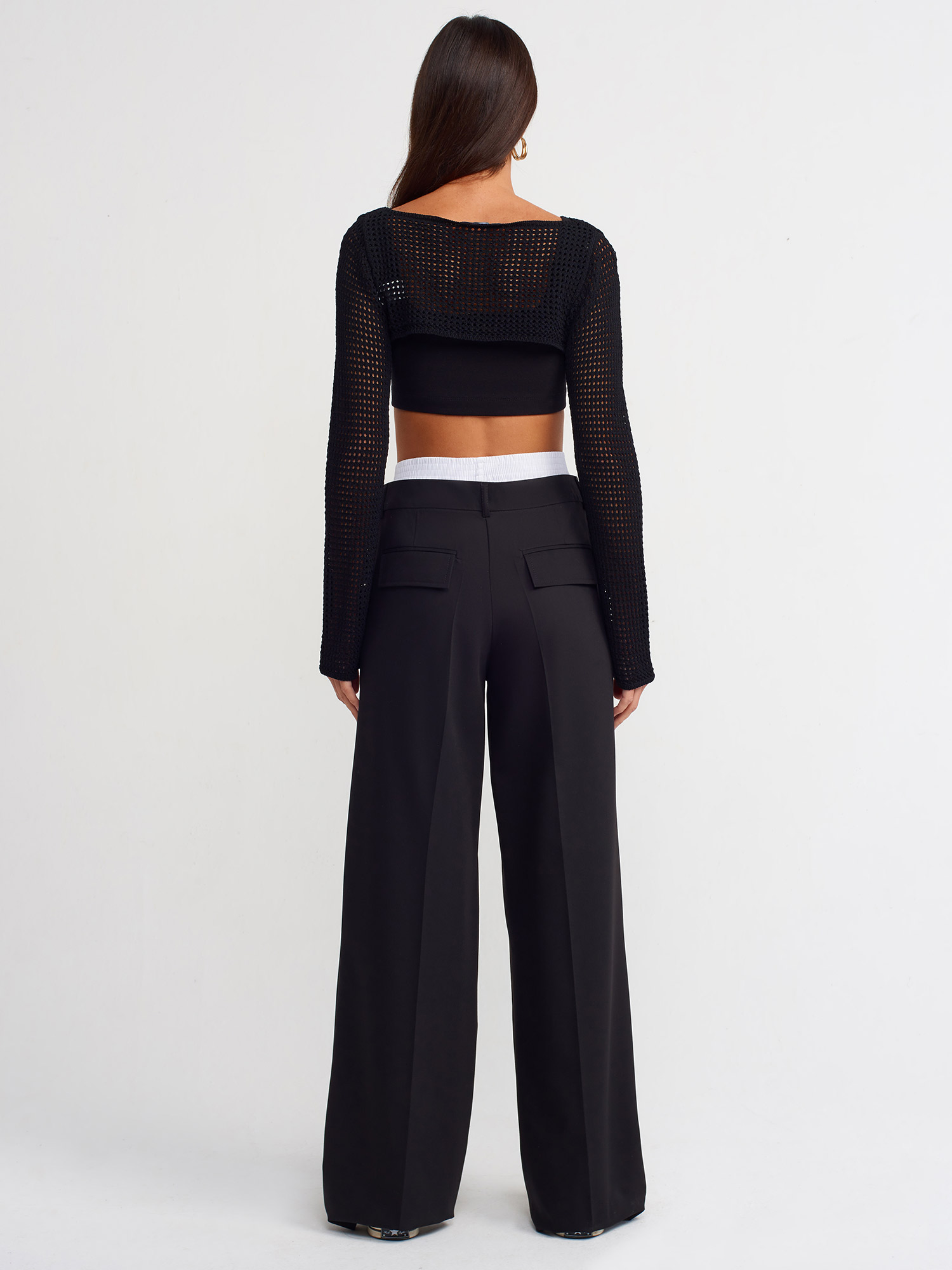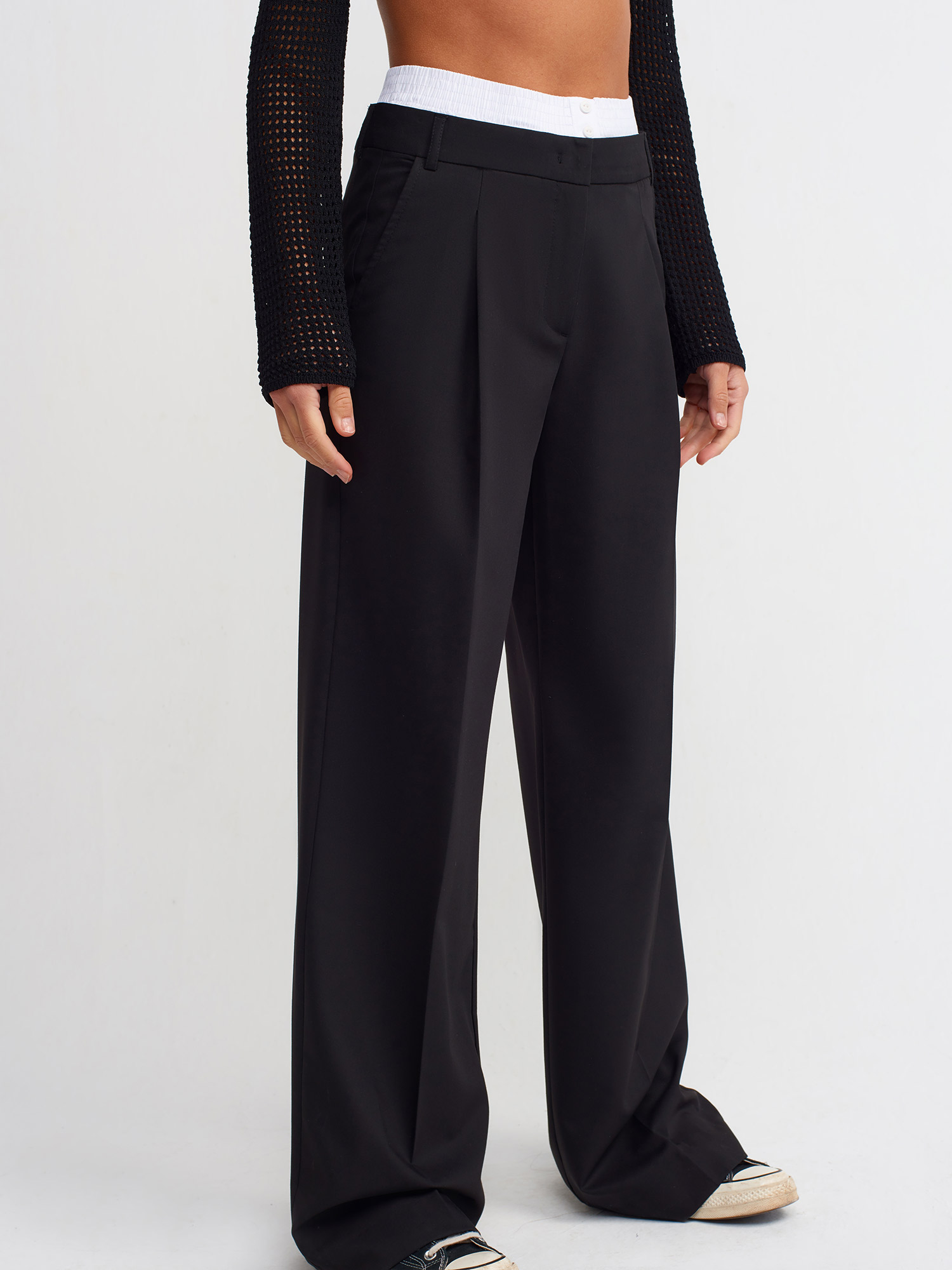 71136 Çamaşır Detaylı Bol Pantolon-Siyah