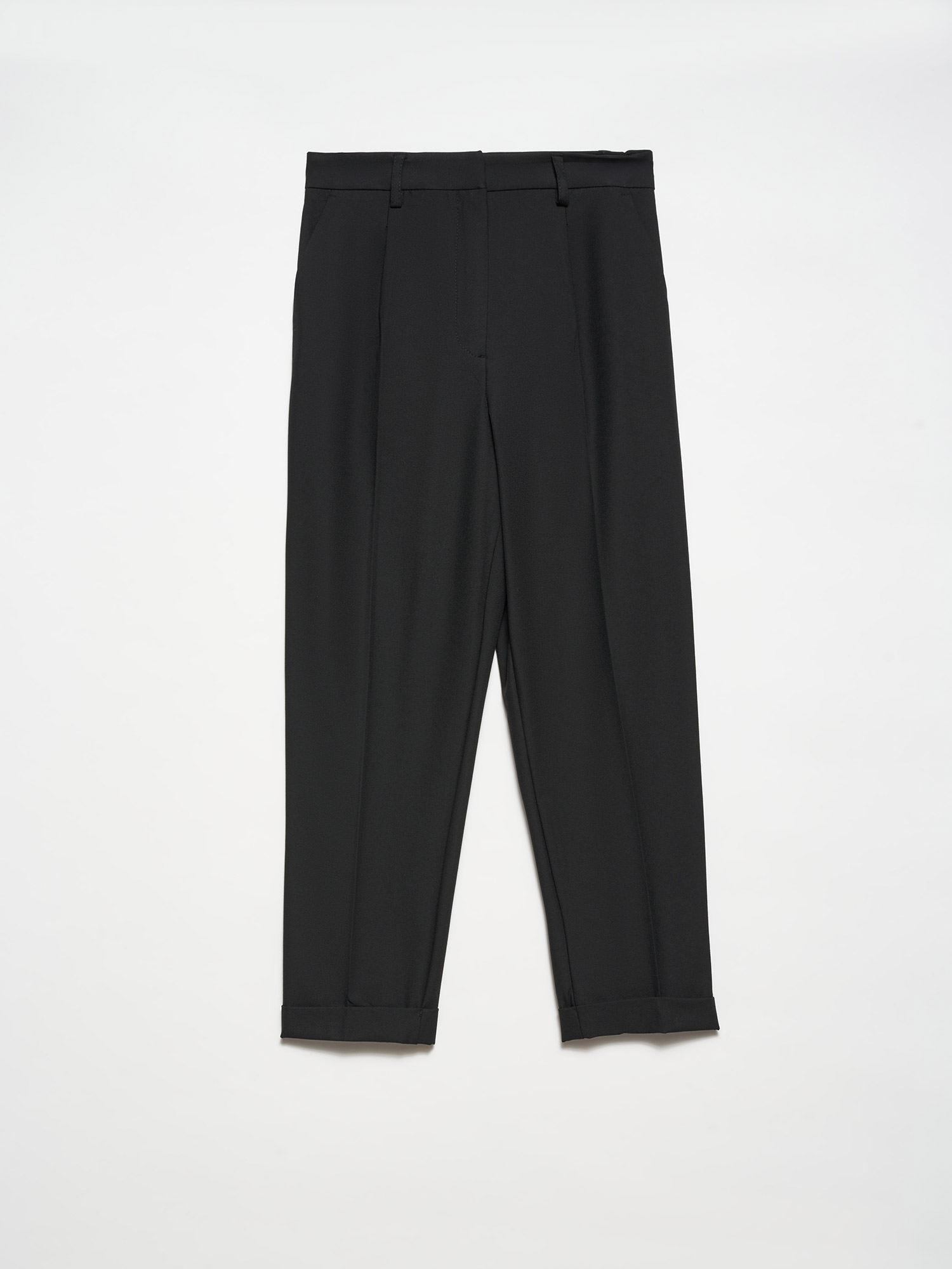 71181 Kıvrık Paça Düz Fit Pantolon-Siyah