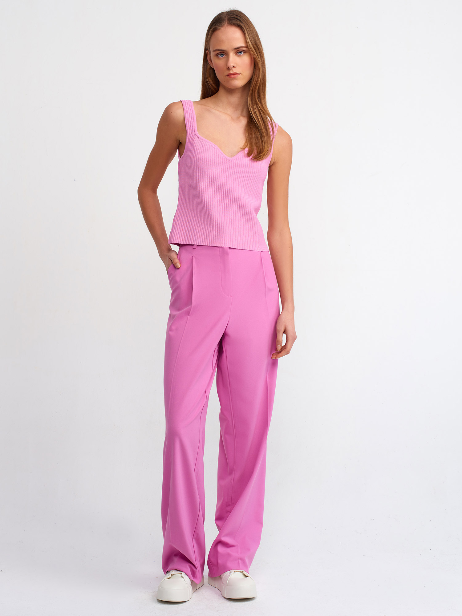 71183 Yüksek Bel Uzun Pantolon-Pembe