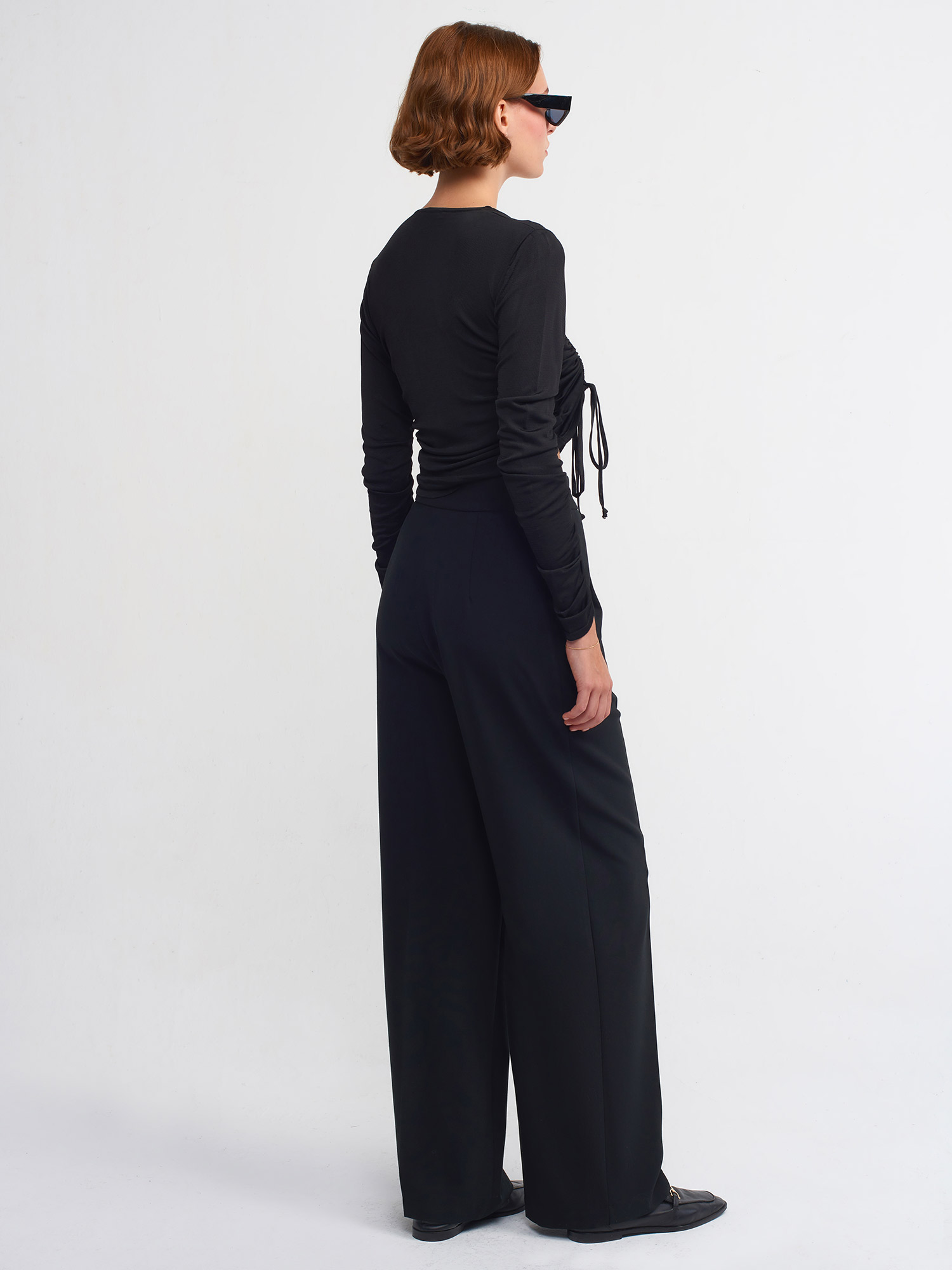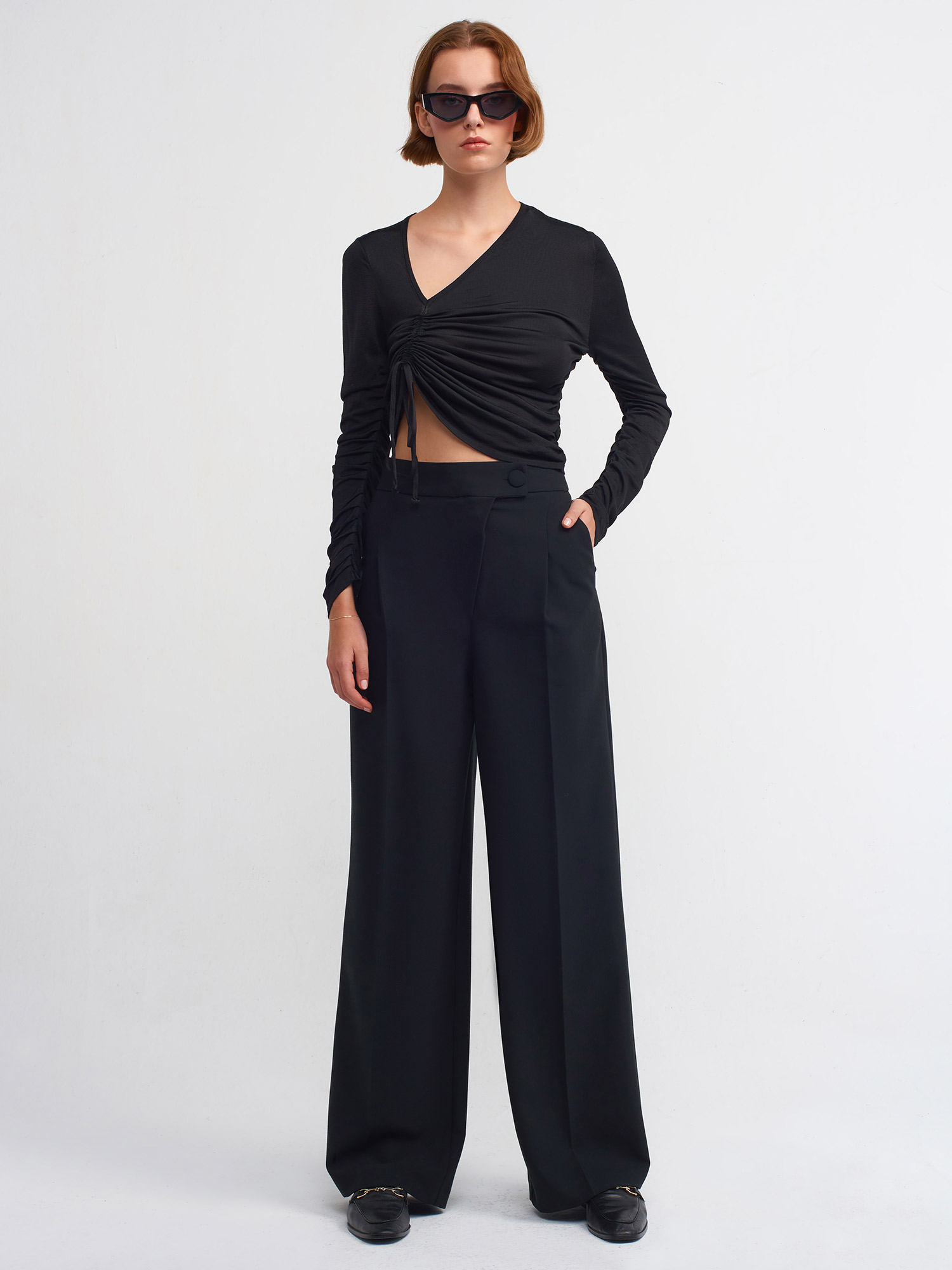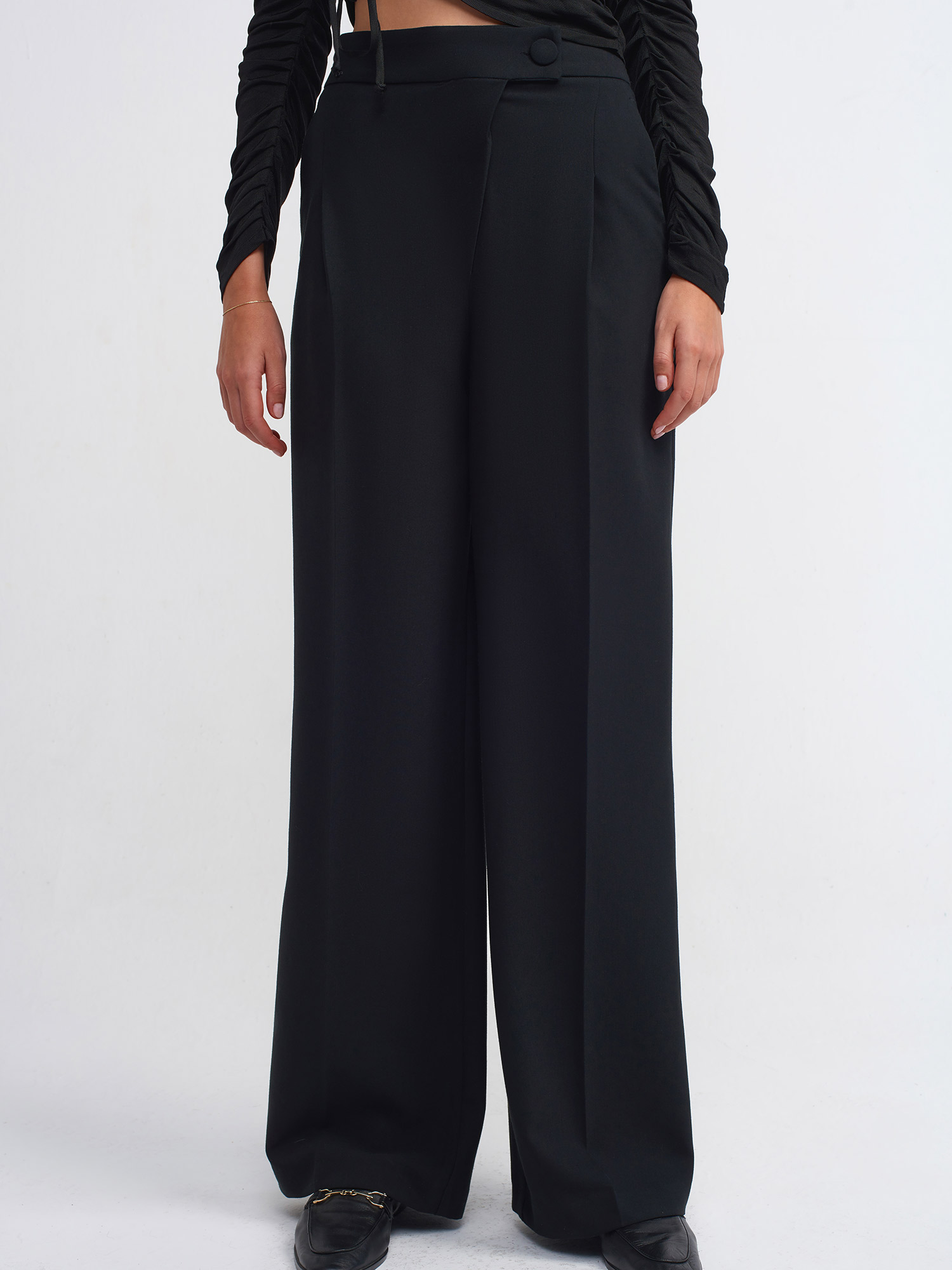 71188 Yüksek Bel Asimetrik Pantolon-Siyah