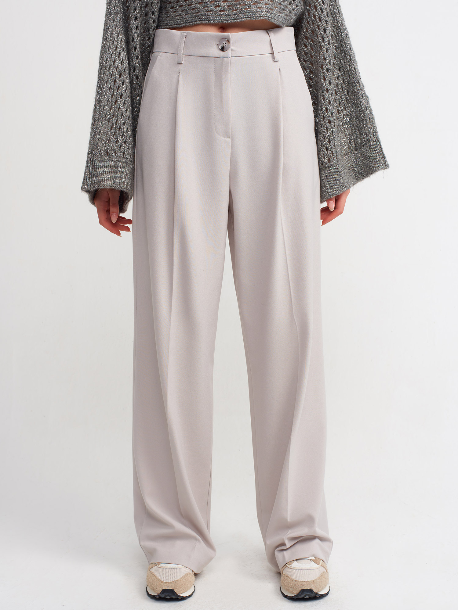 71190 Yüksek Bel Uzun Pantolon-Taş