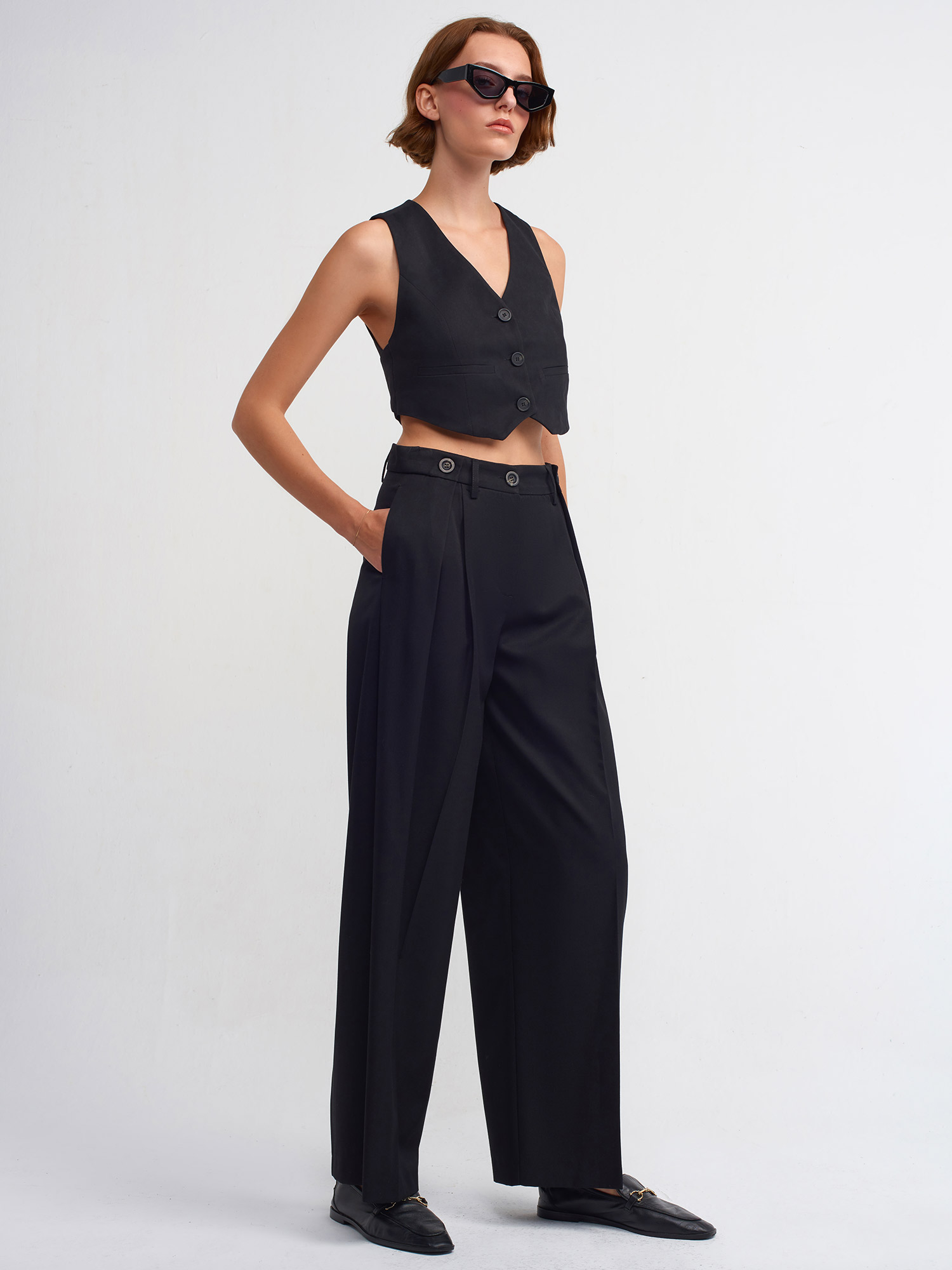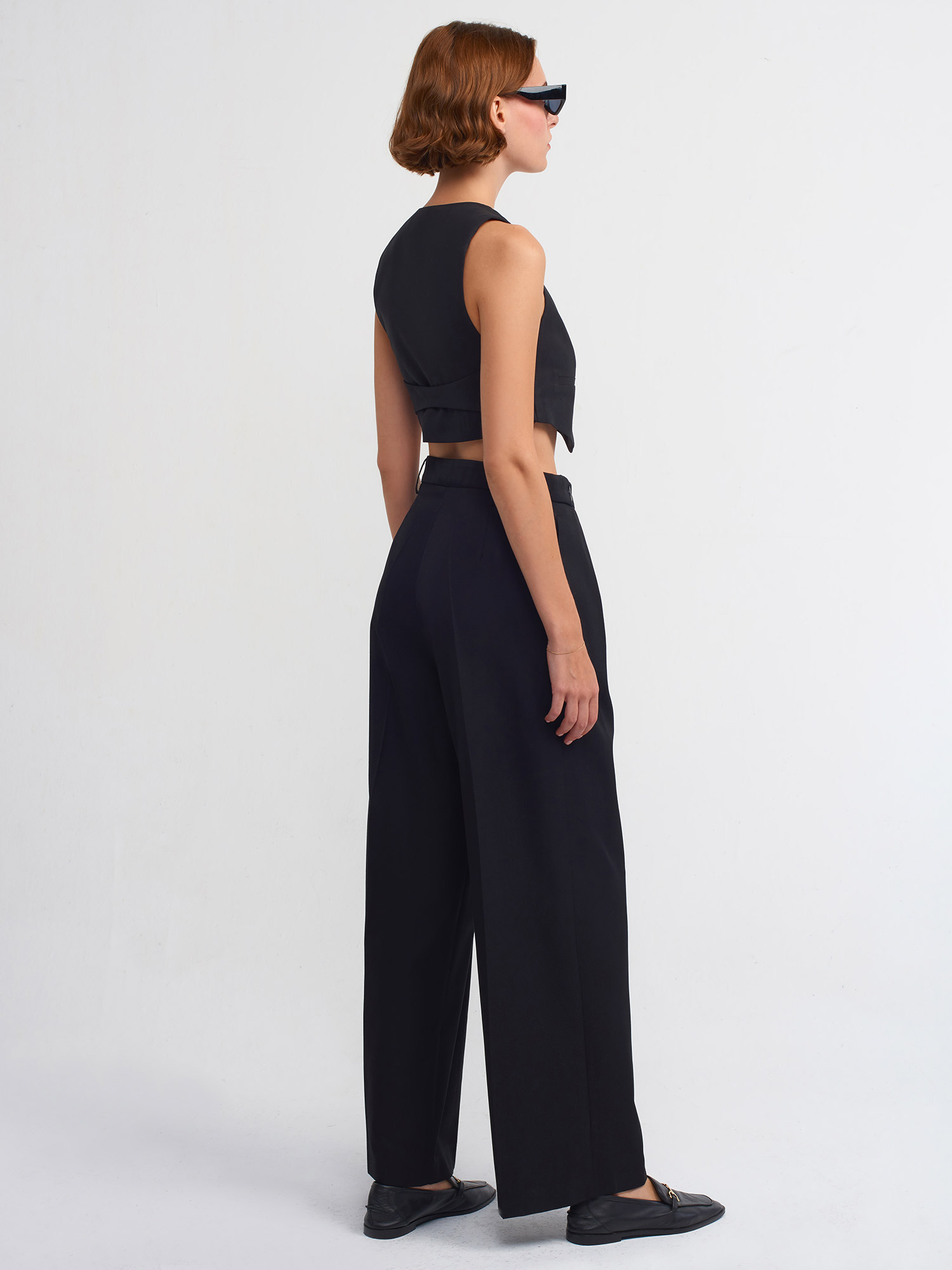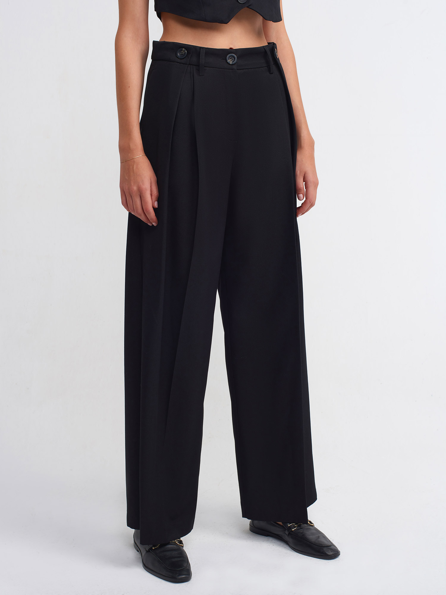 71191 Özel Dikim Geniş Paça Pantolon-Siyah