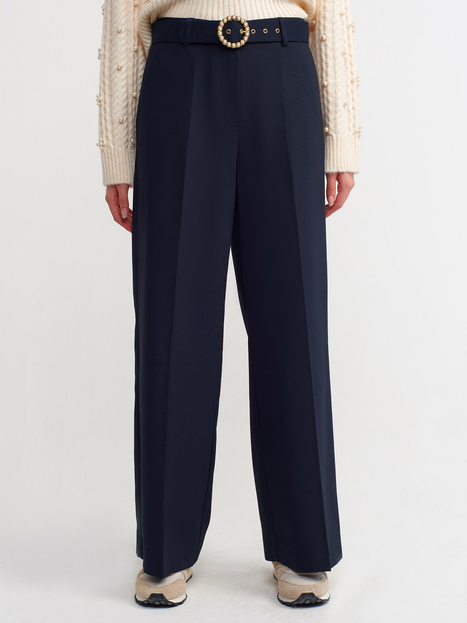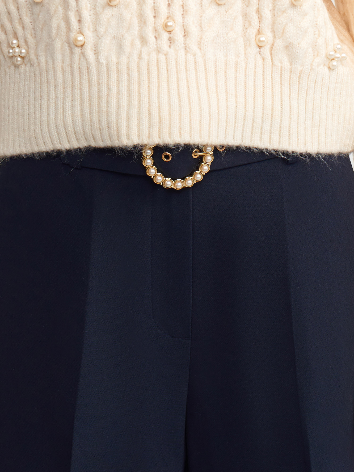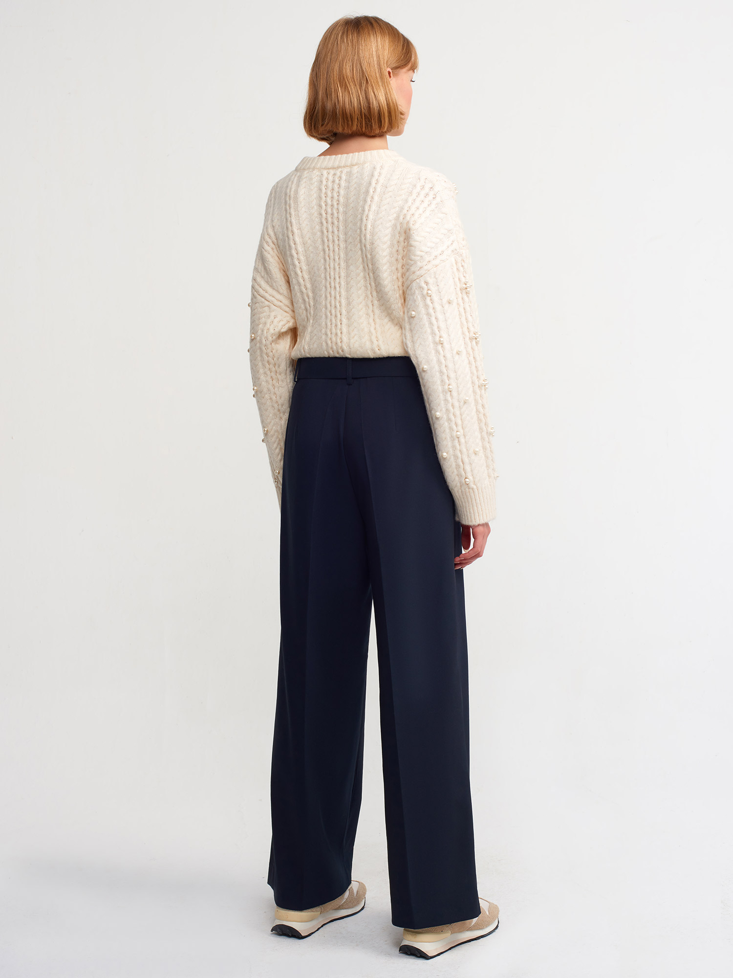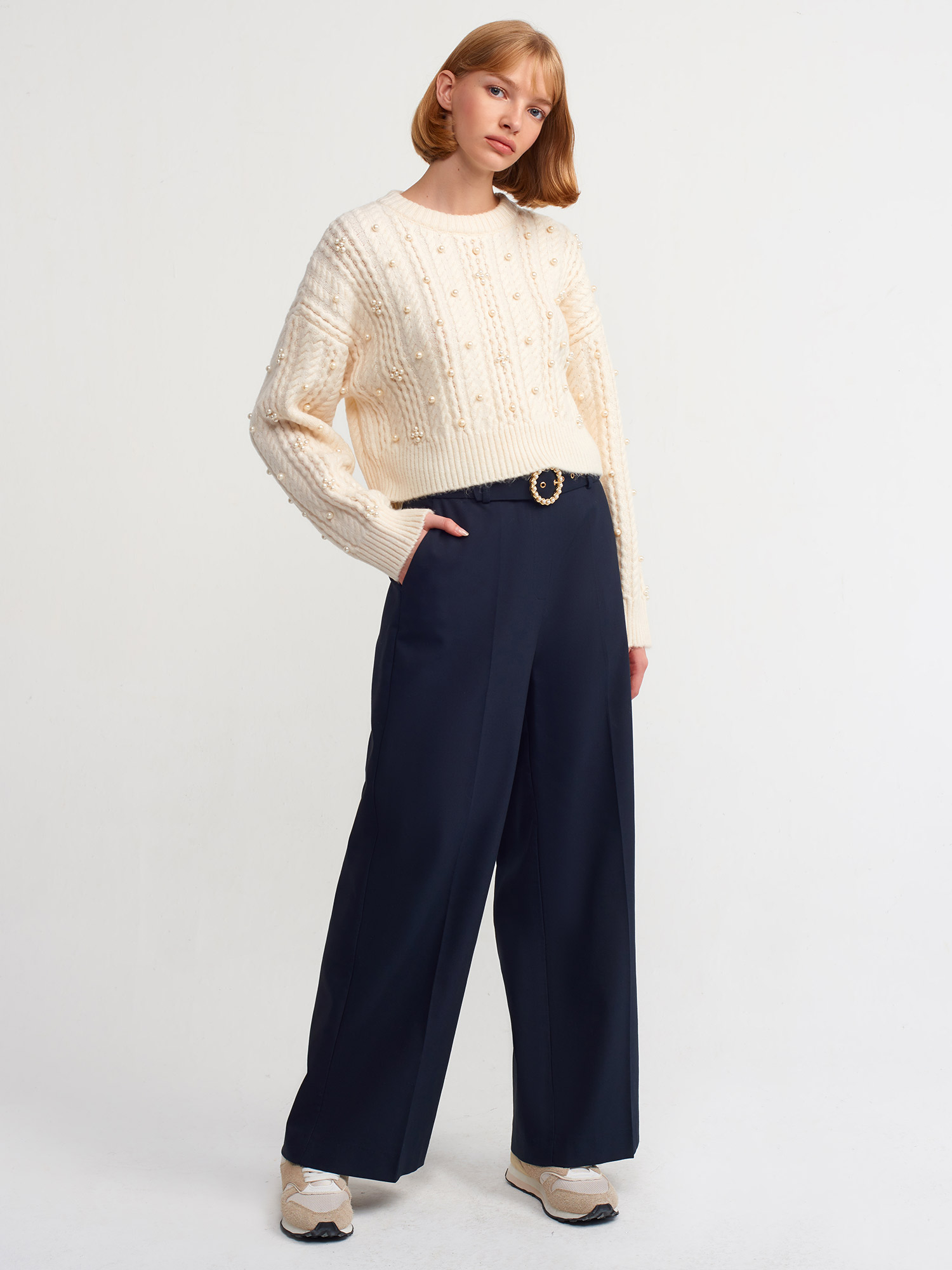 71197 Kemeri Suni İncili Culotte Pantolon-Lacivert