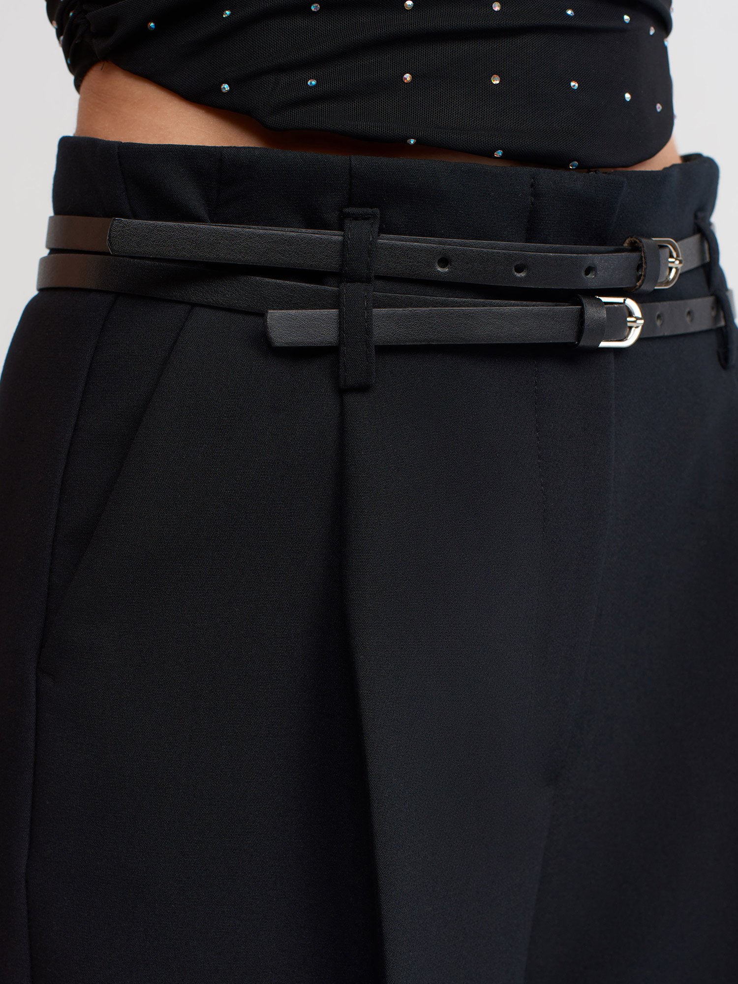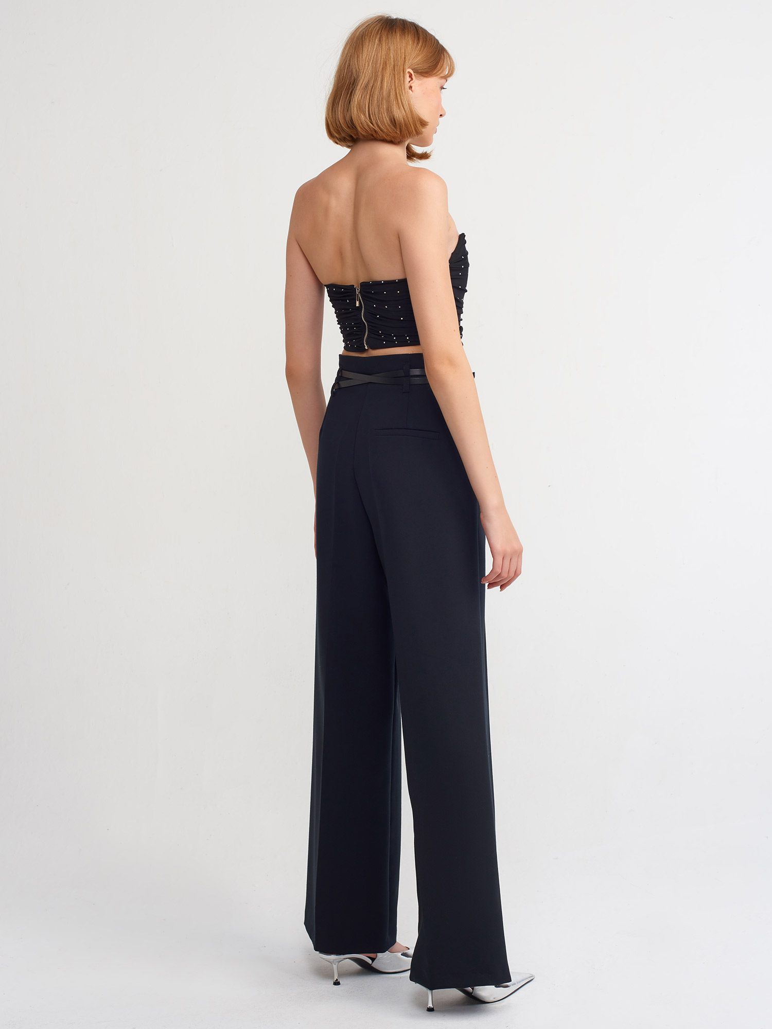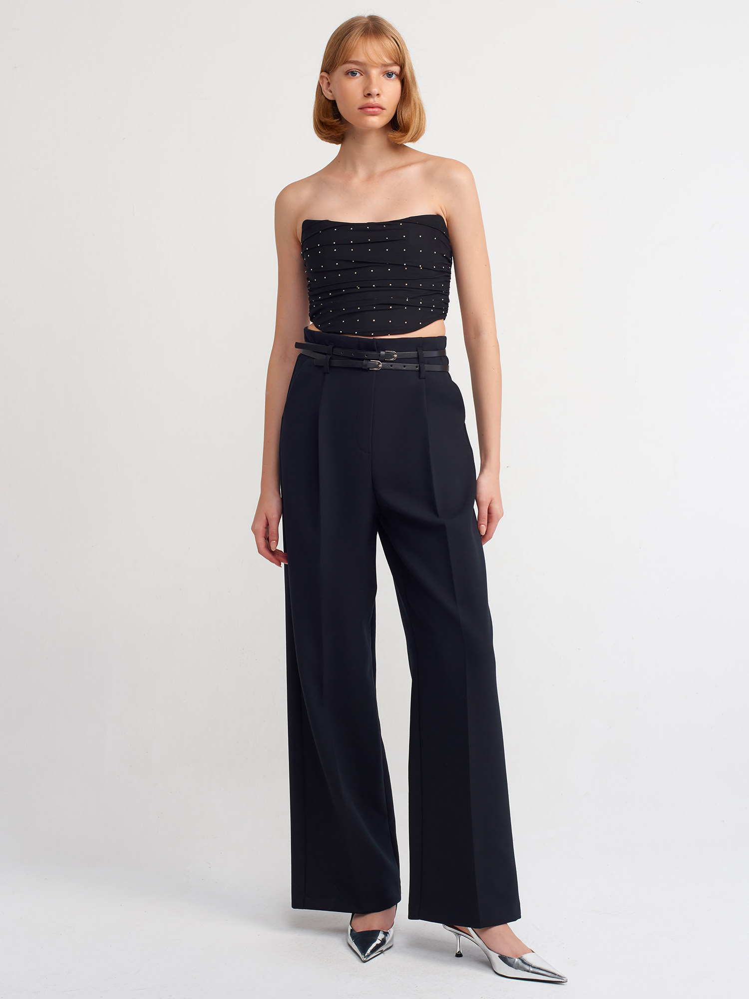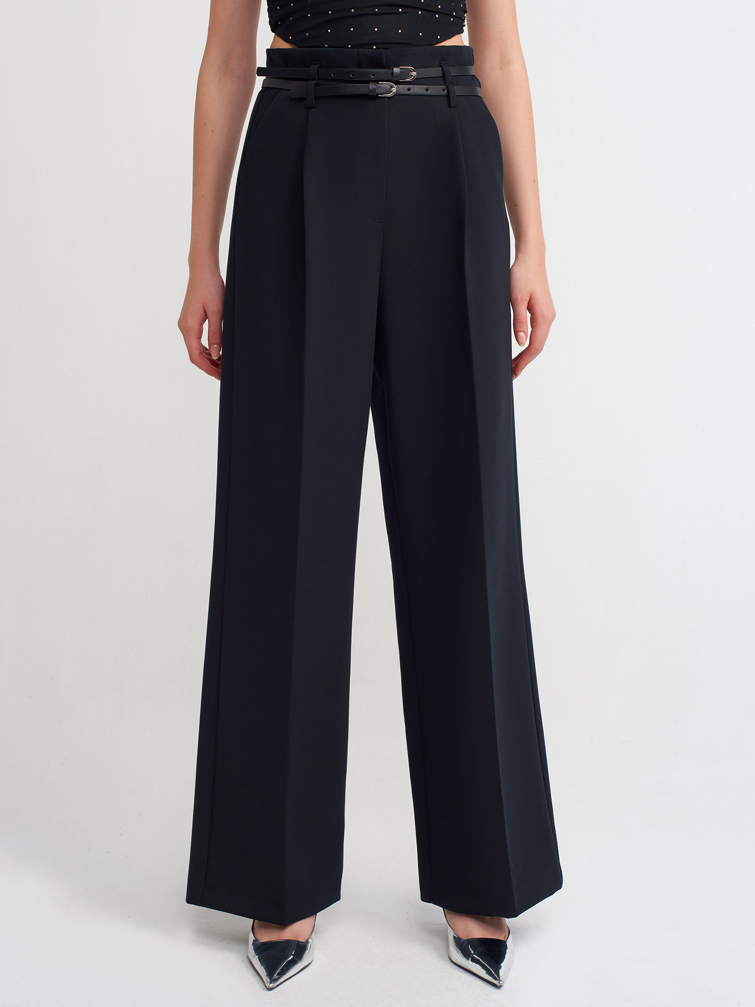71209 Kemerli Yüksekl Bel Pantolon-Siyah