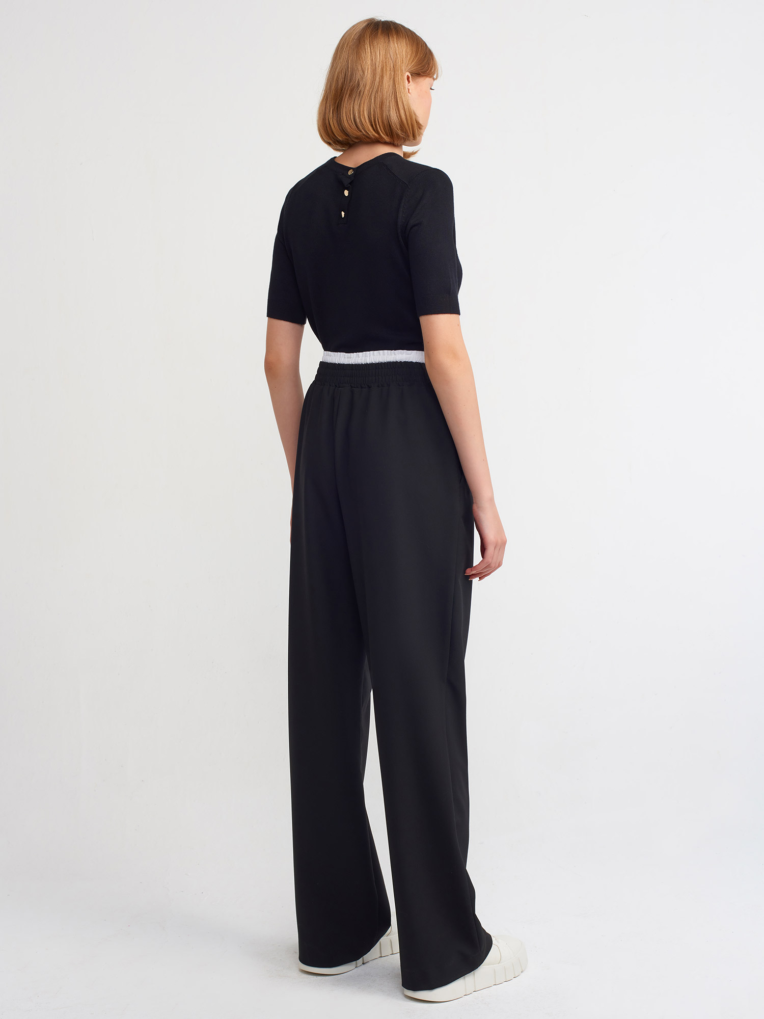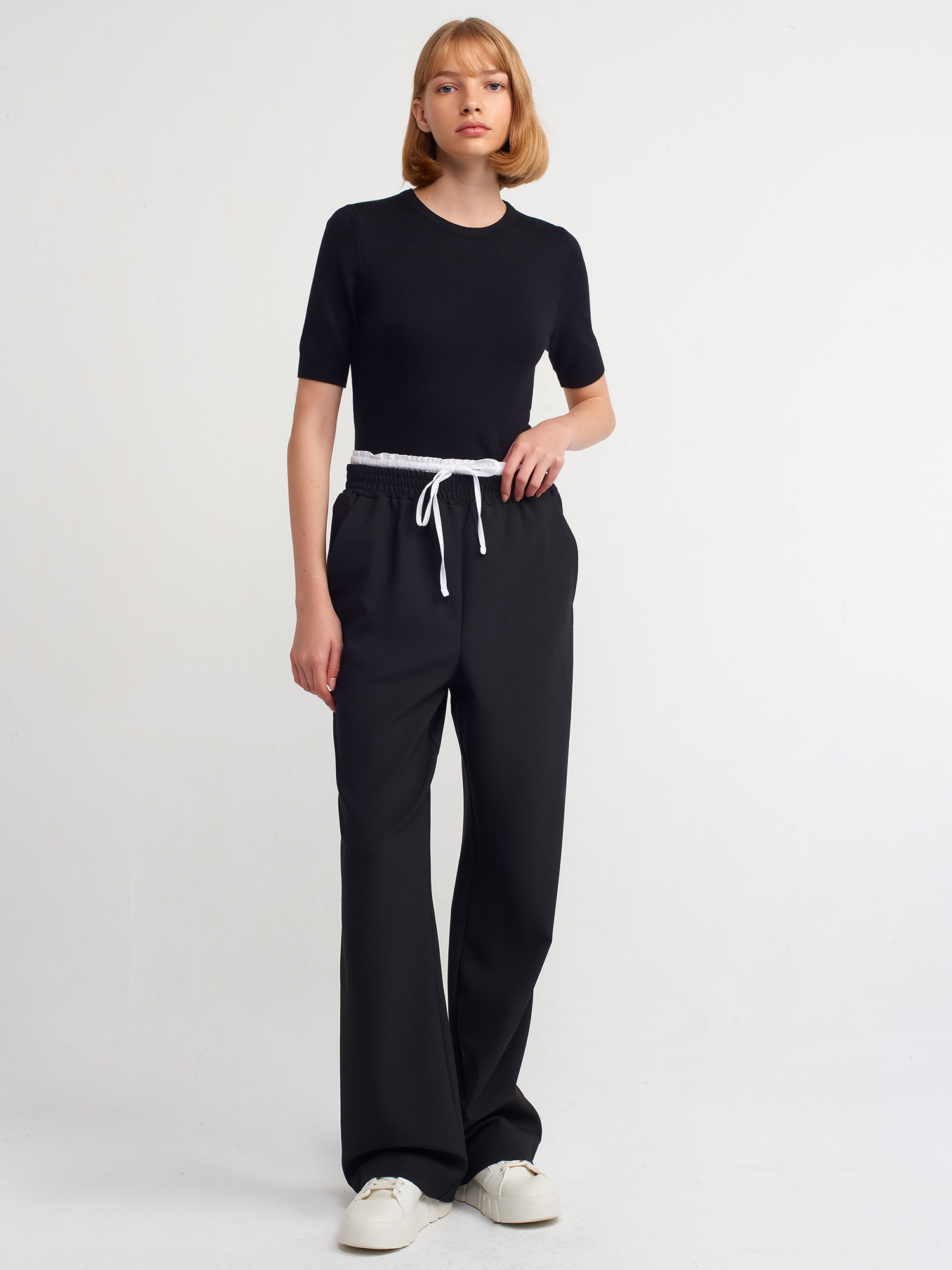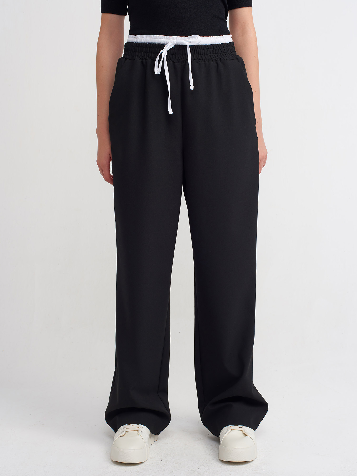 71215 Beli Boxer Detaylı Pantolon-Siyah