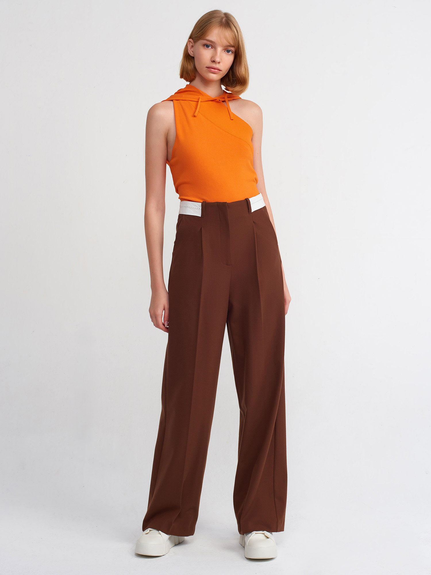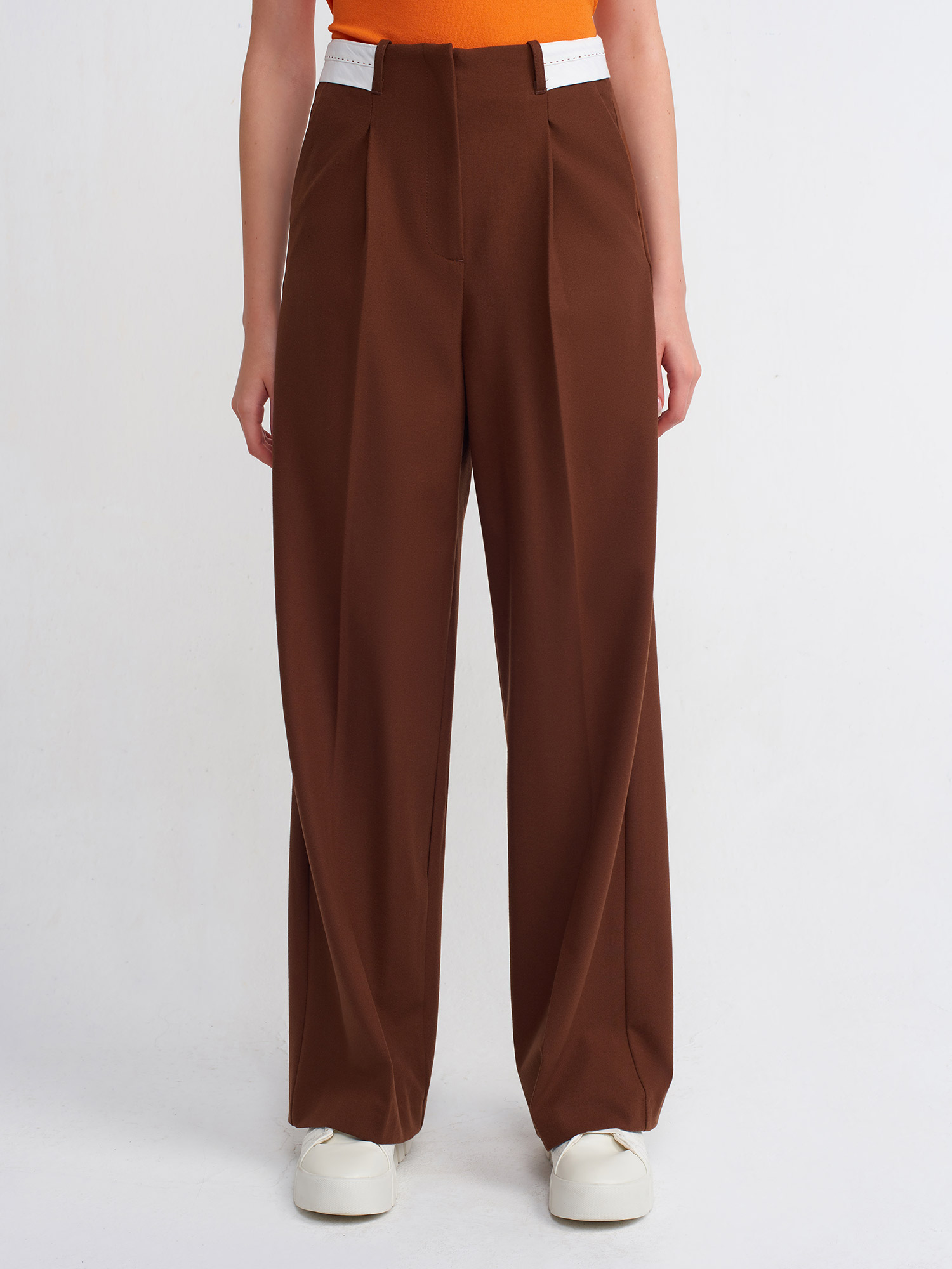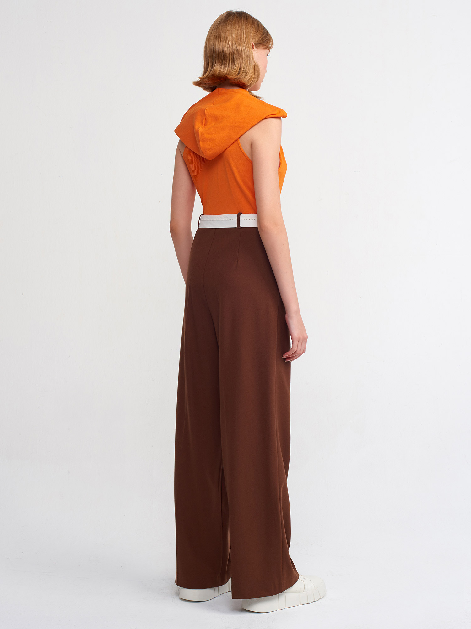 71219 Kıvrık Kemerli Klasik Pantolon-Kahve