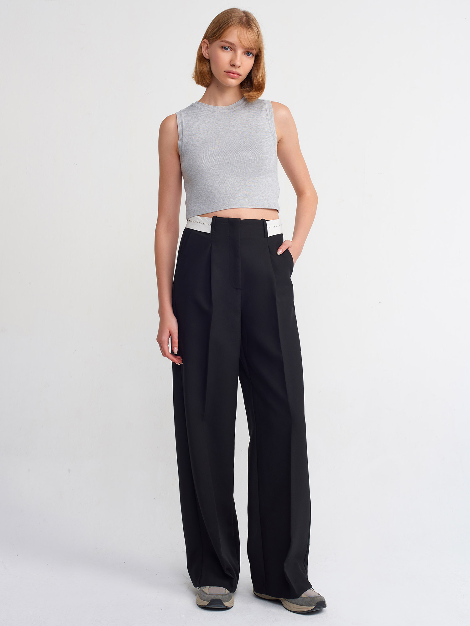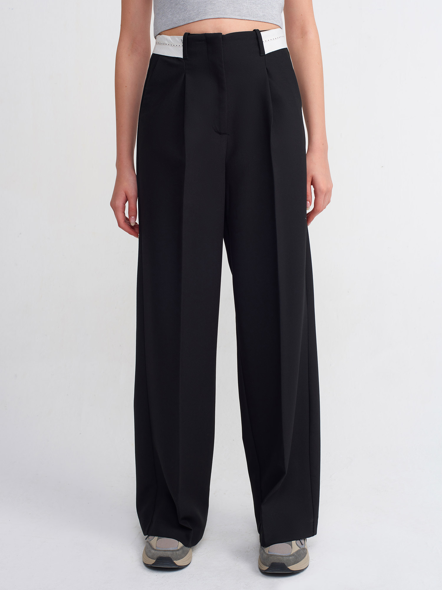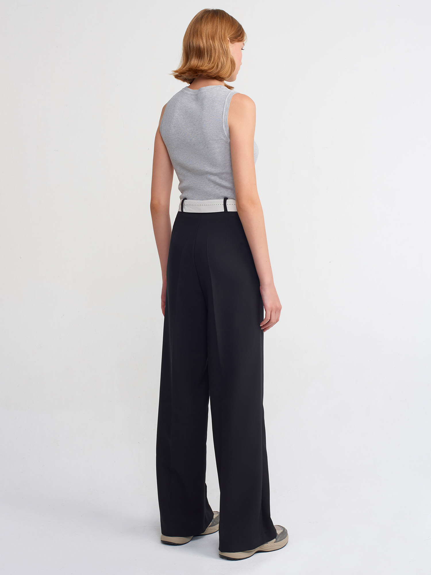 71219 Kıvrık Kemerli Klasik Pantolon-Siyah