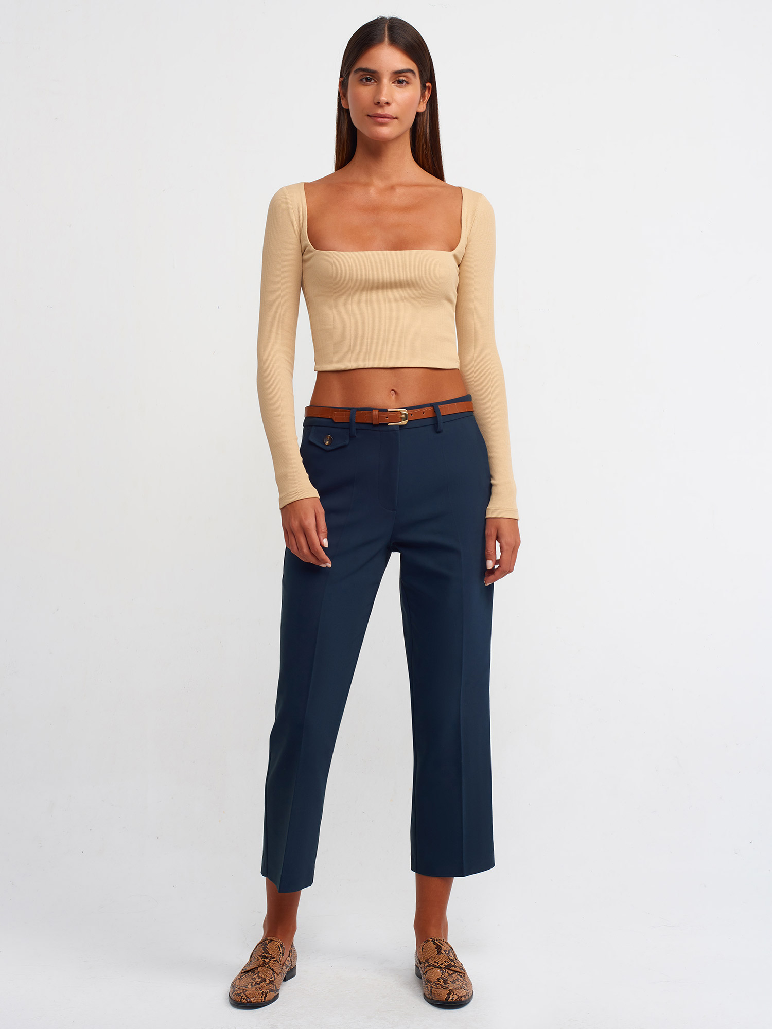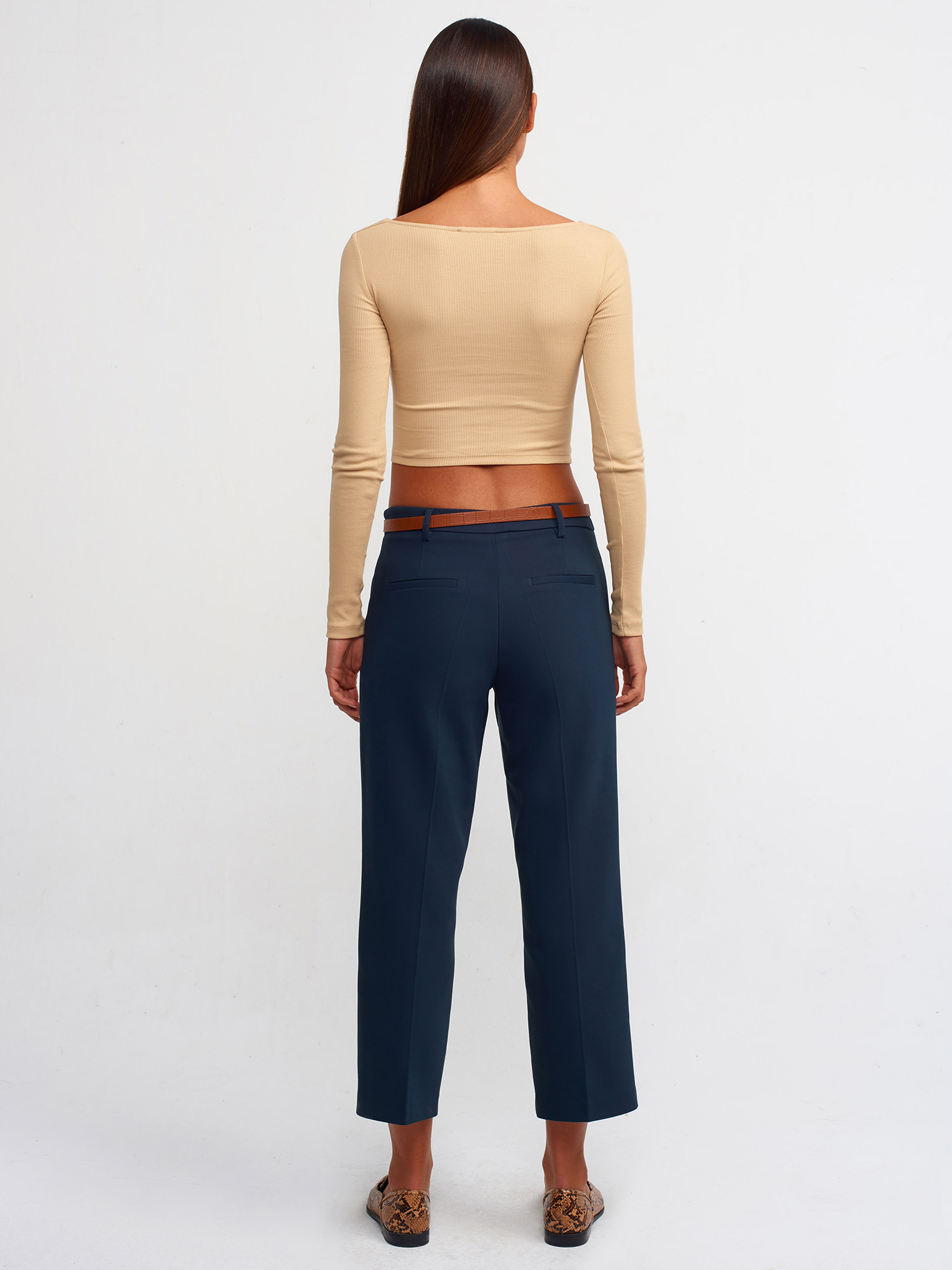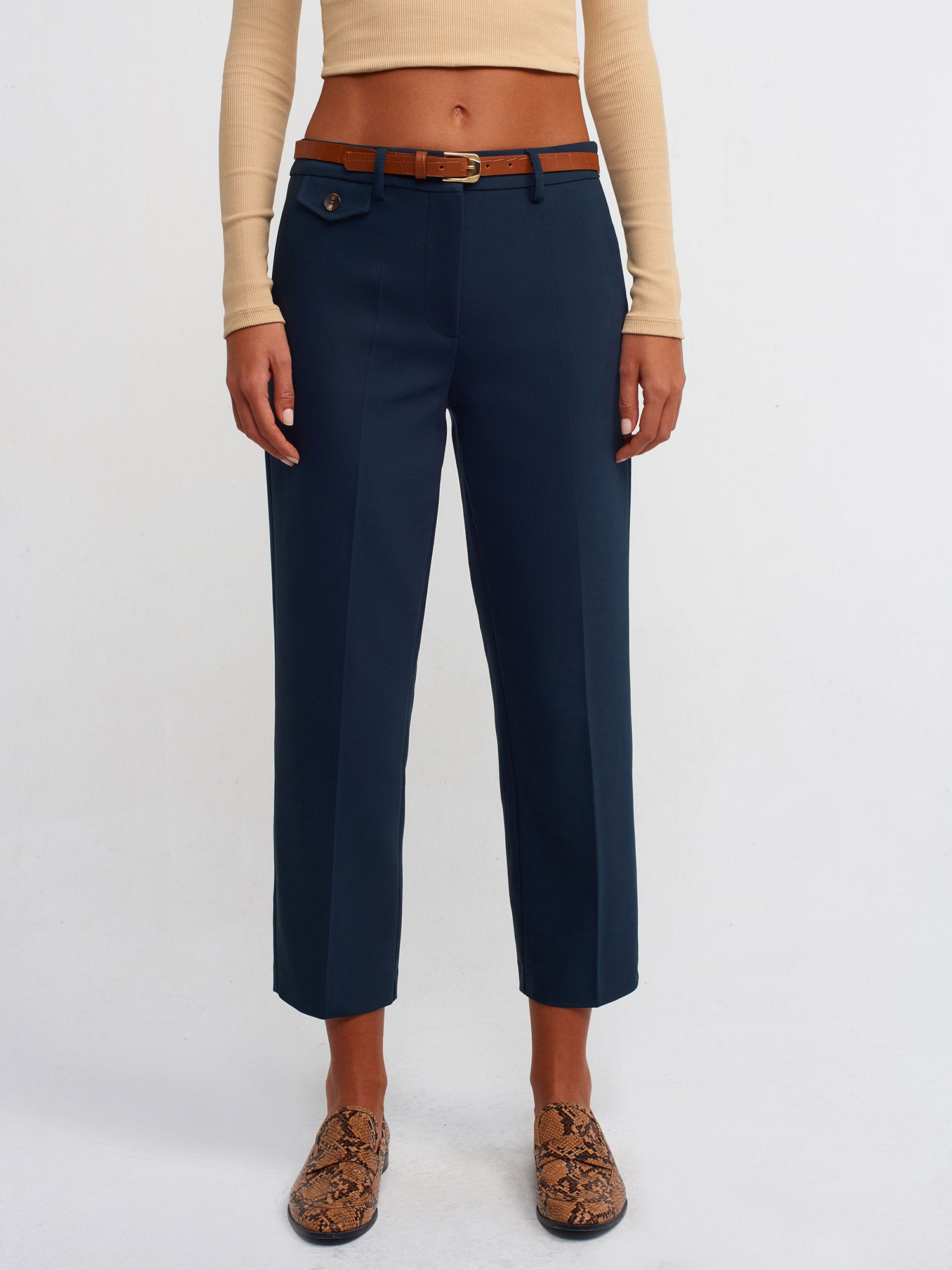 71232 Kemerli Düz Fit Pantolon-Lacivert