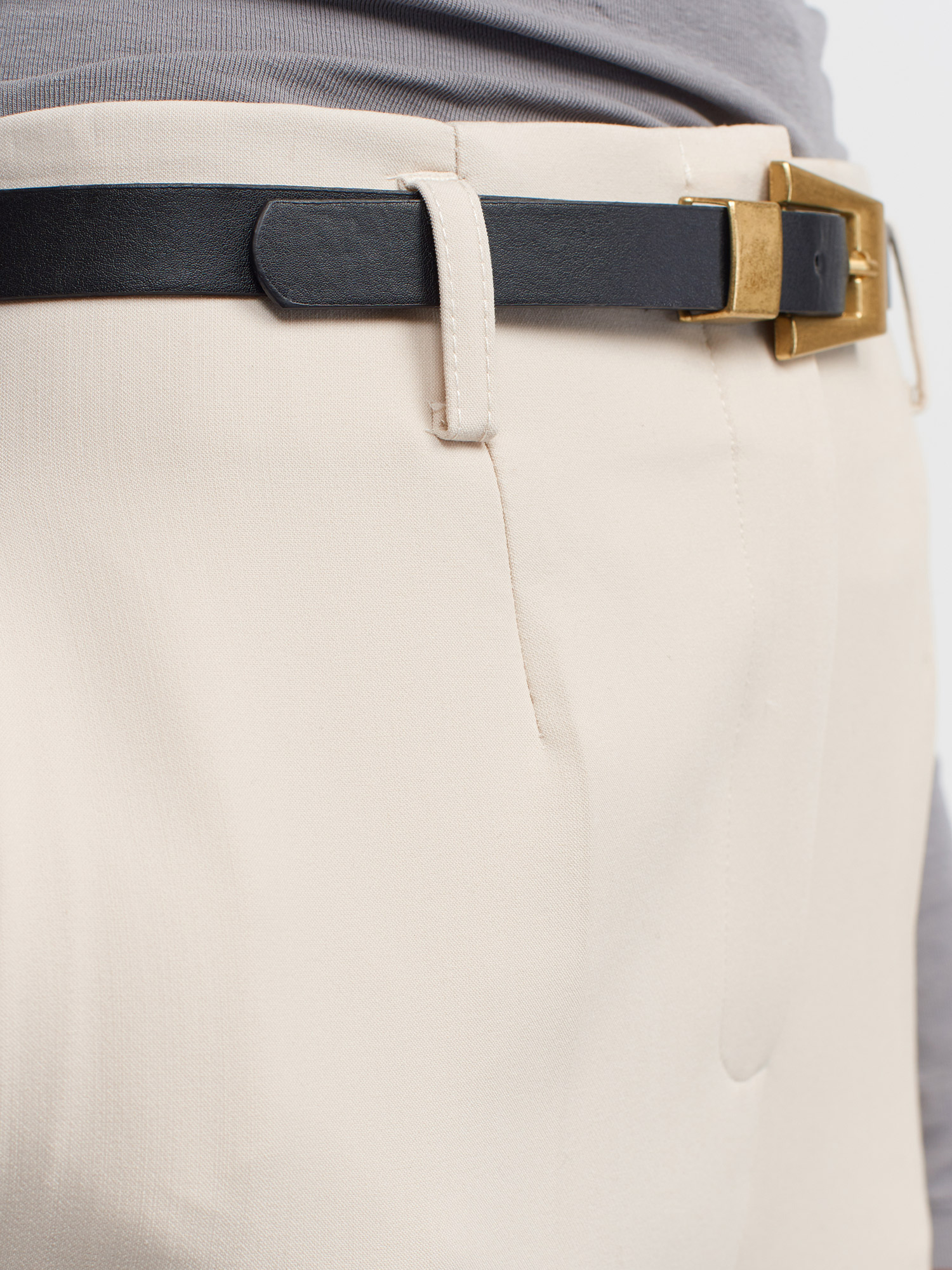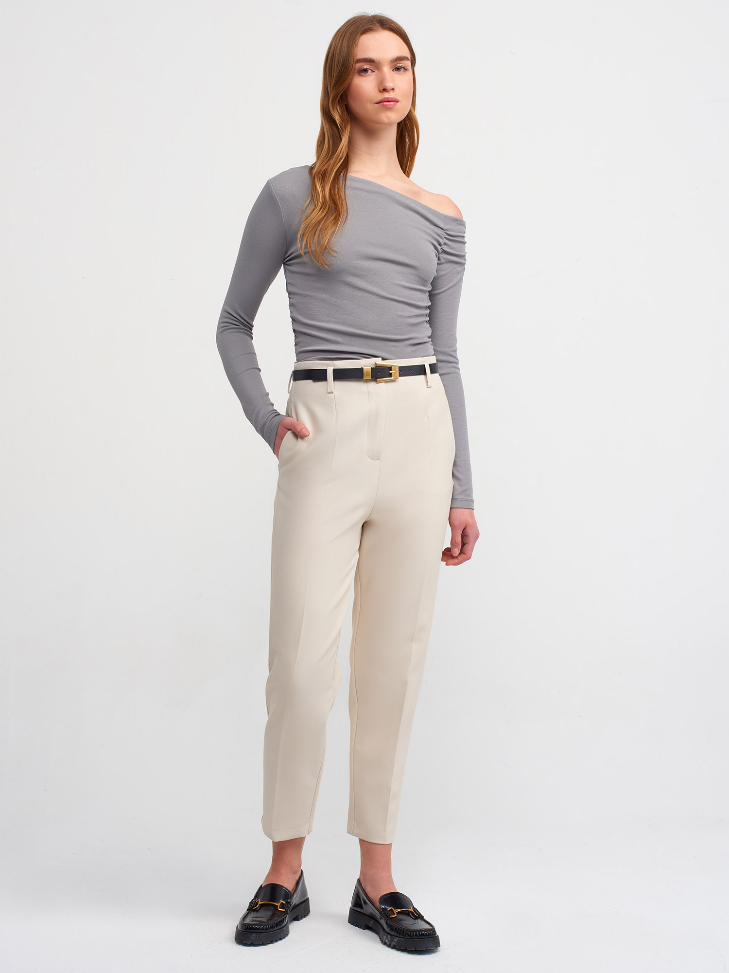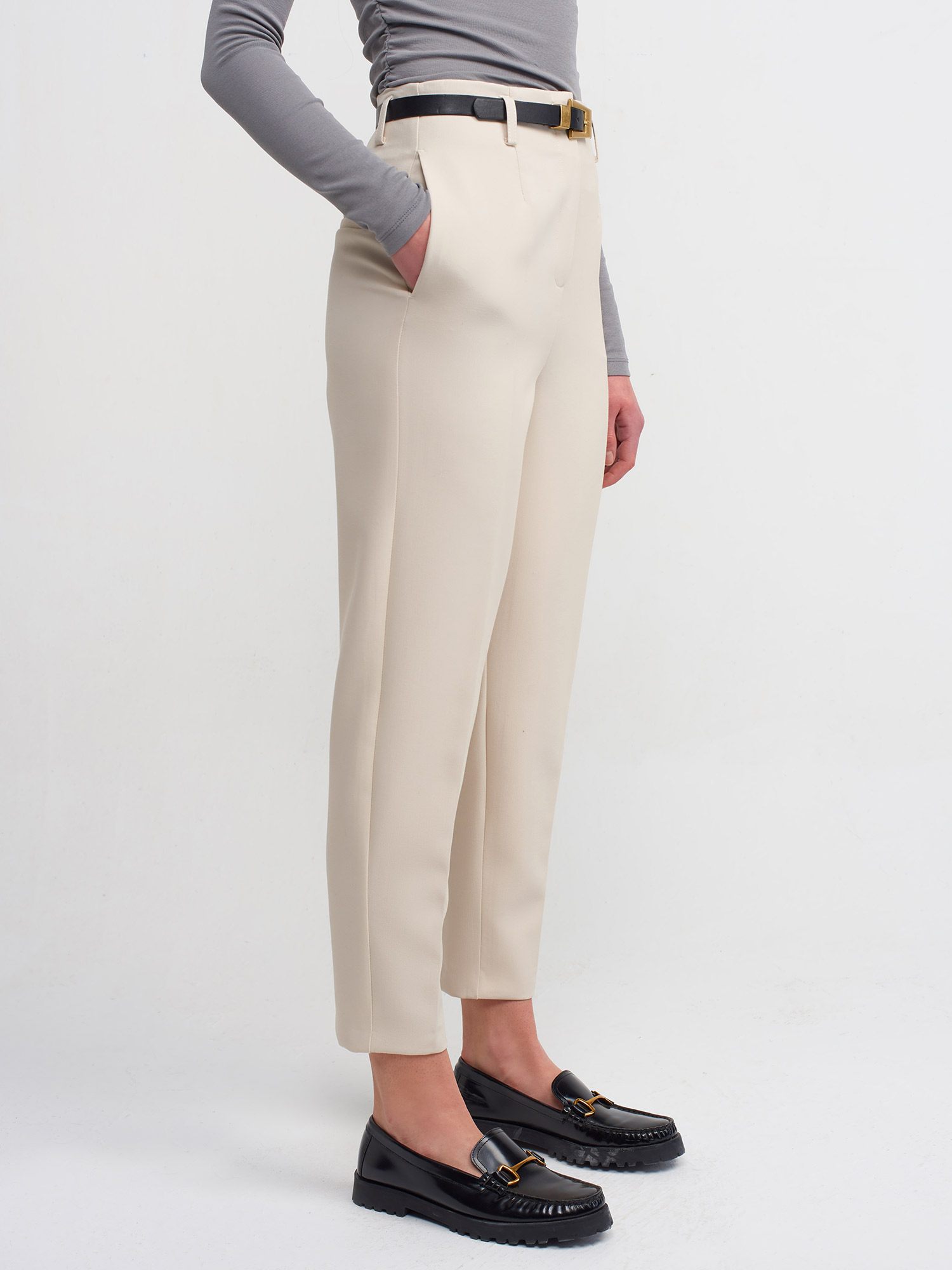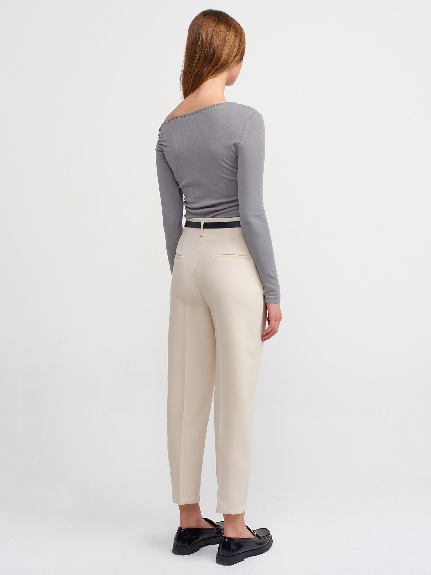 71233 Kemerli Yüksek Bel Pantolon-Beyaz