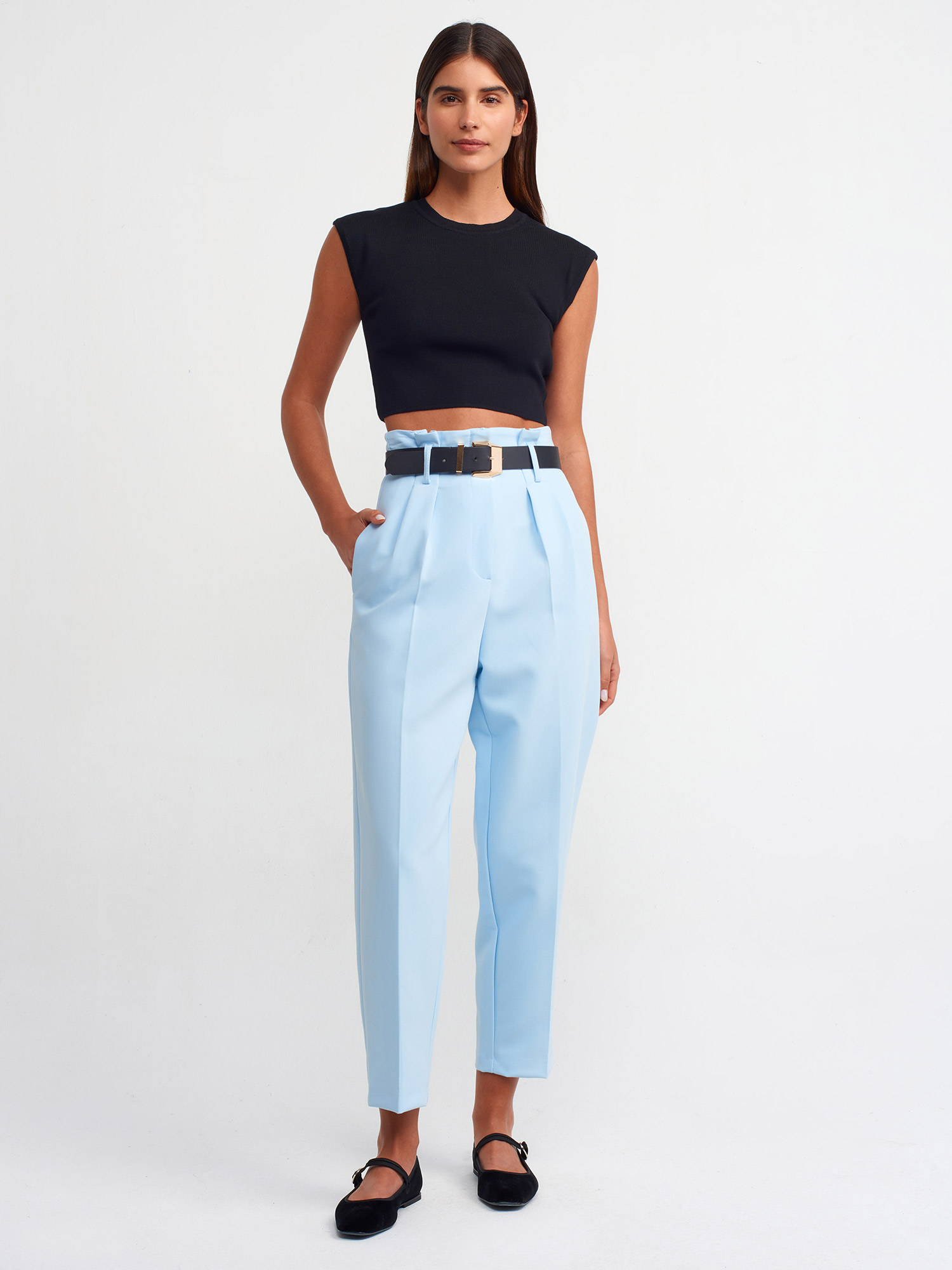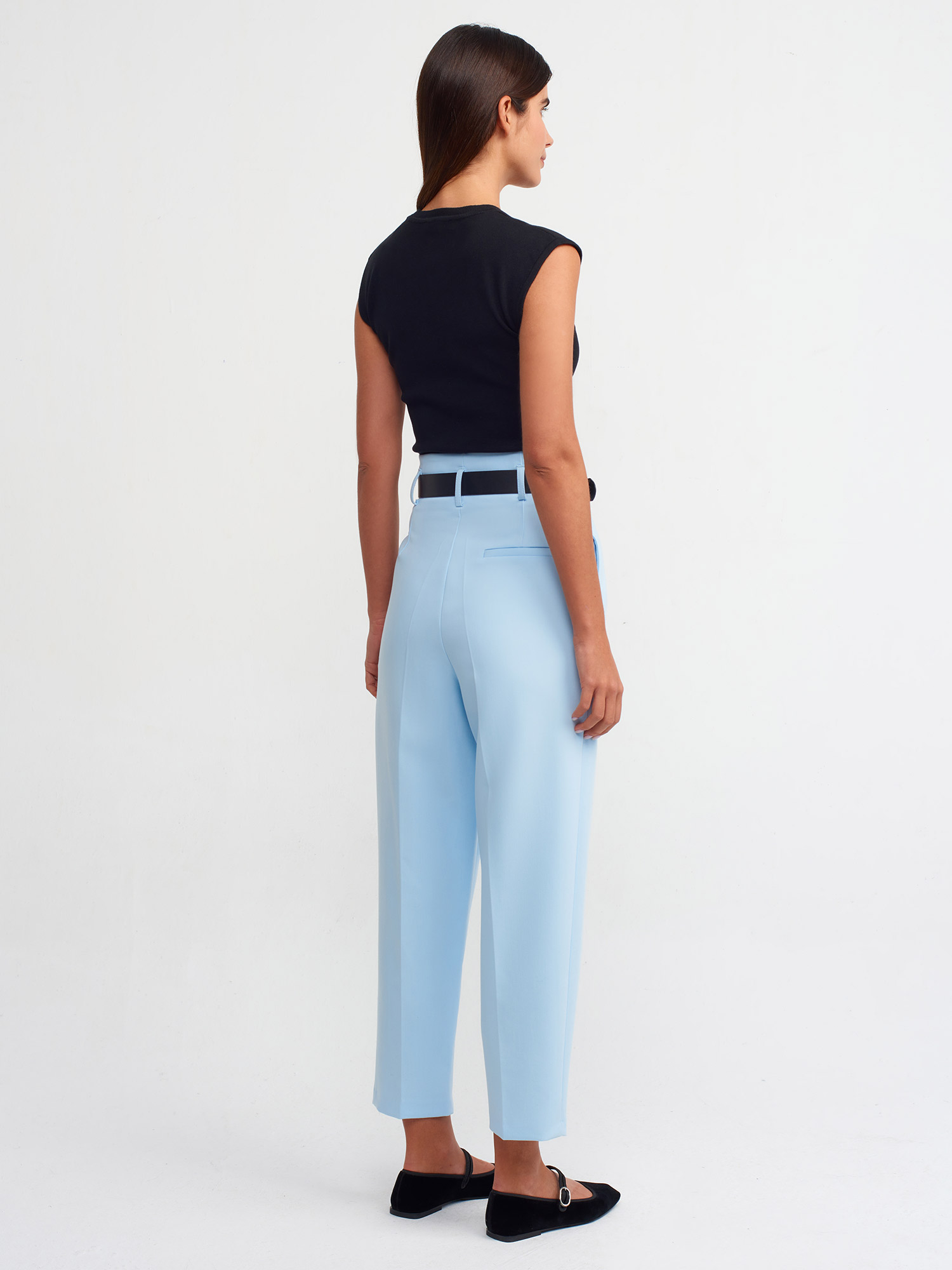 71242 Kemerli Yüksek Bel Pantolon-Mavi