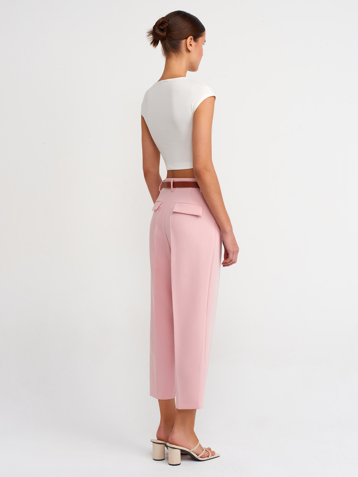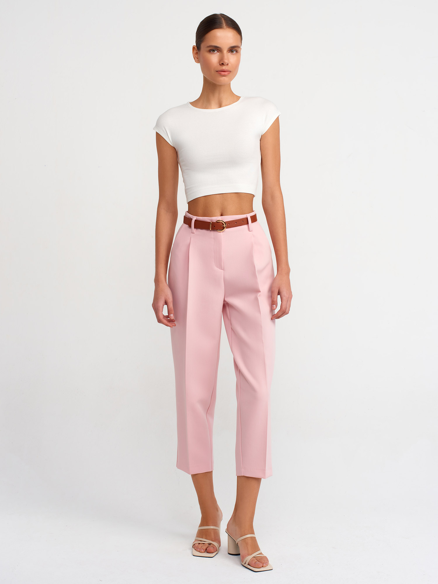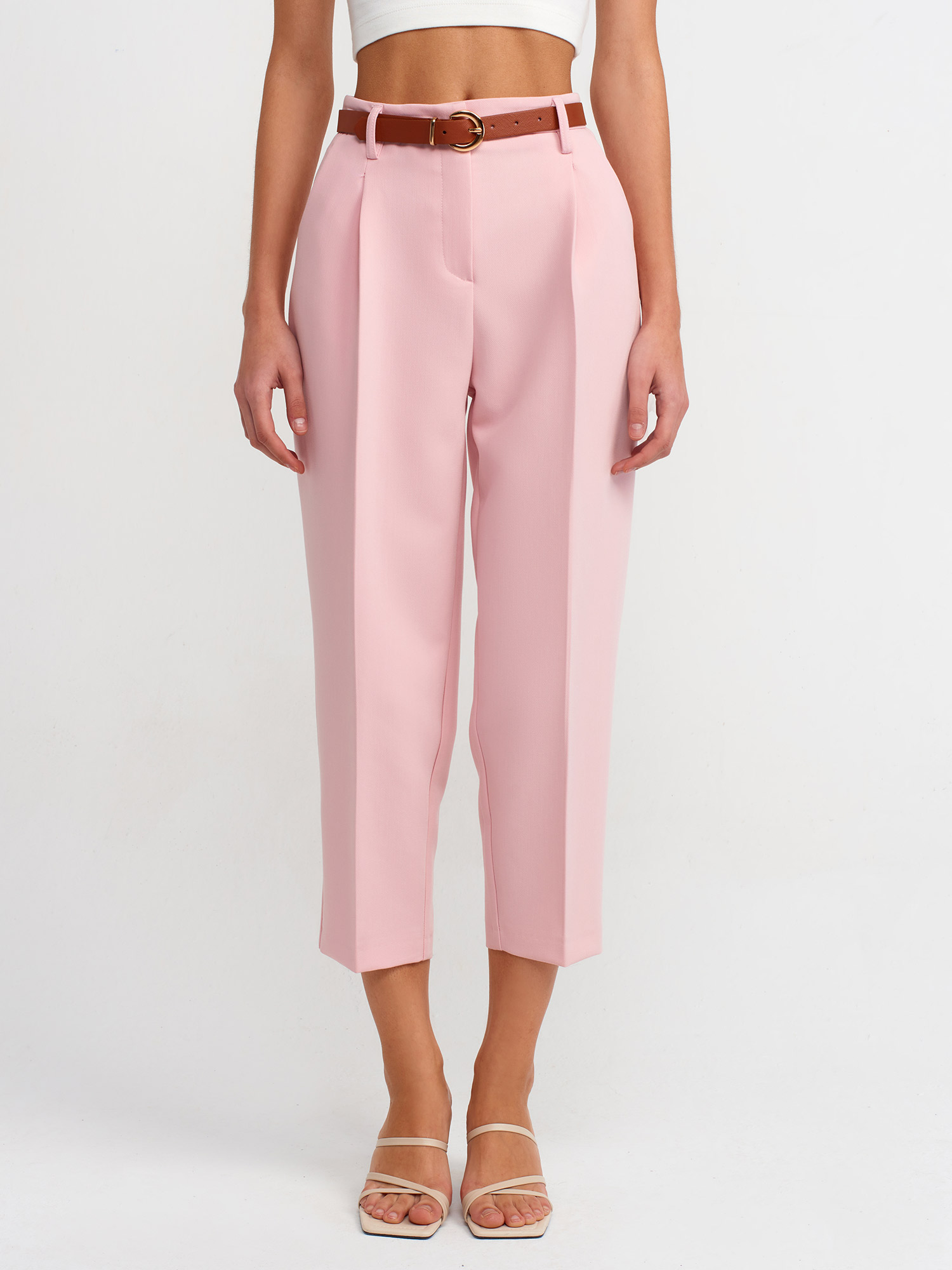 71253 Kemerli Havuç Fit Pantolon-Pudra