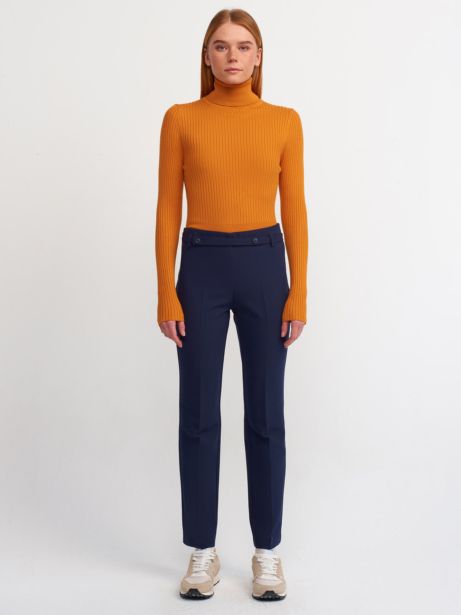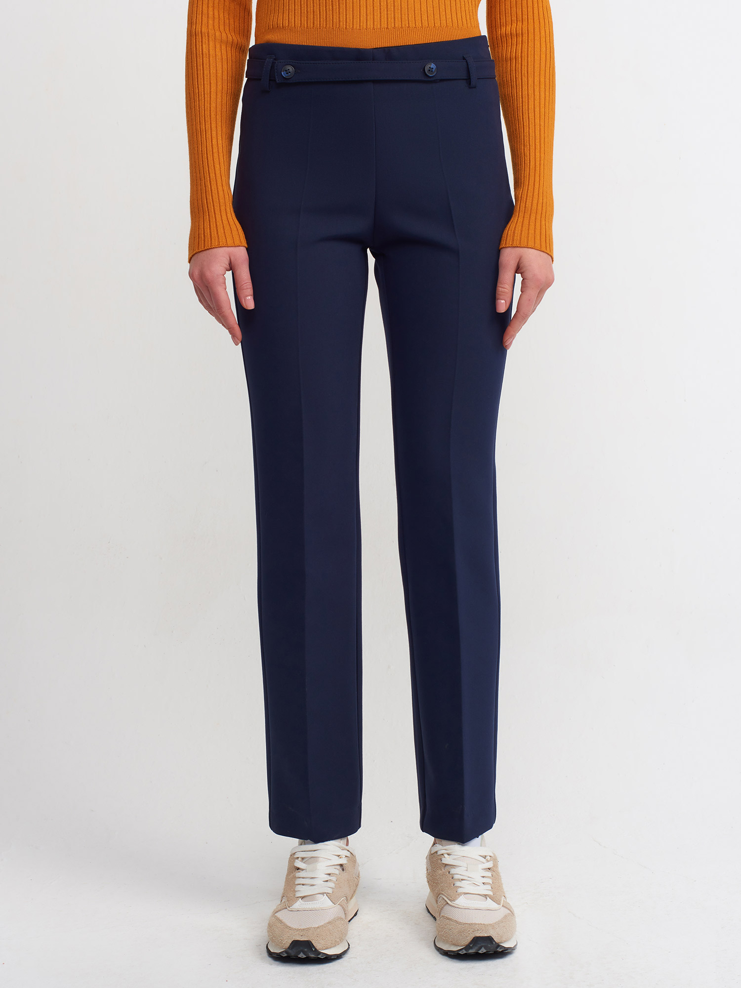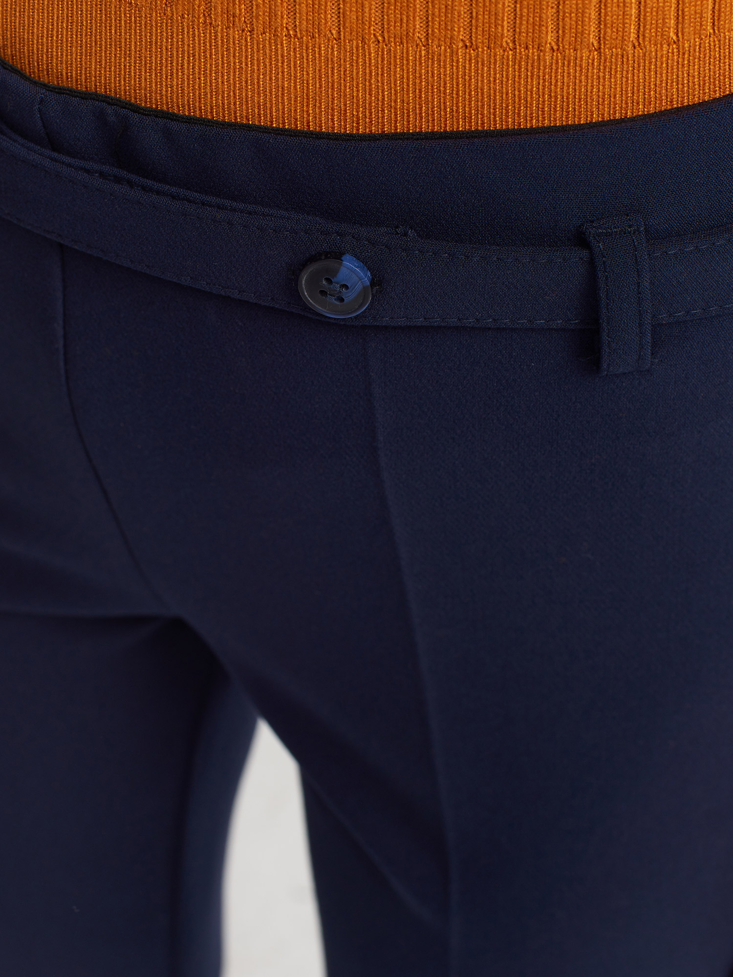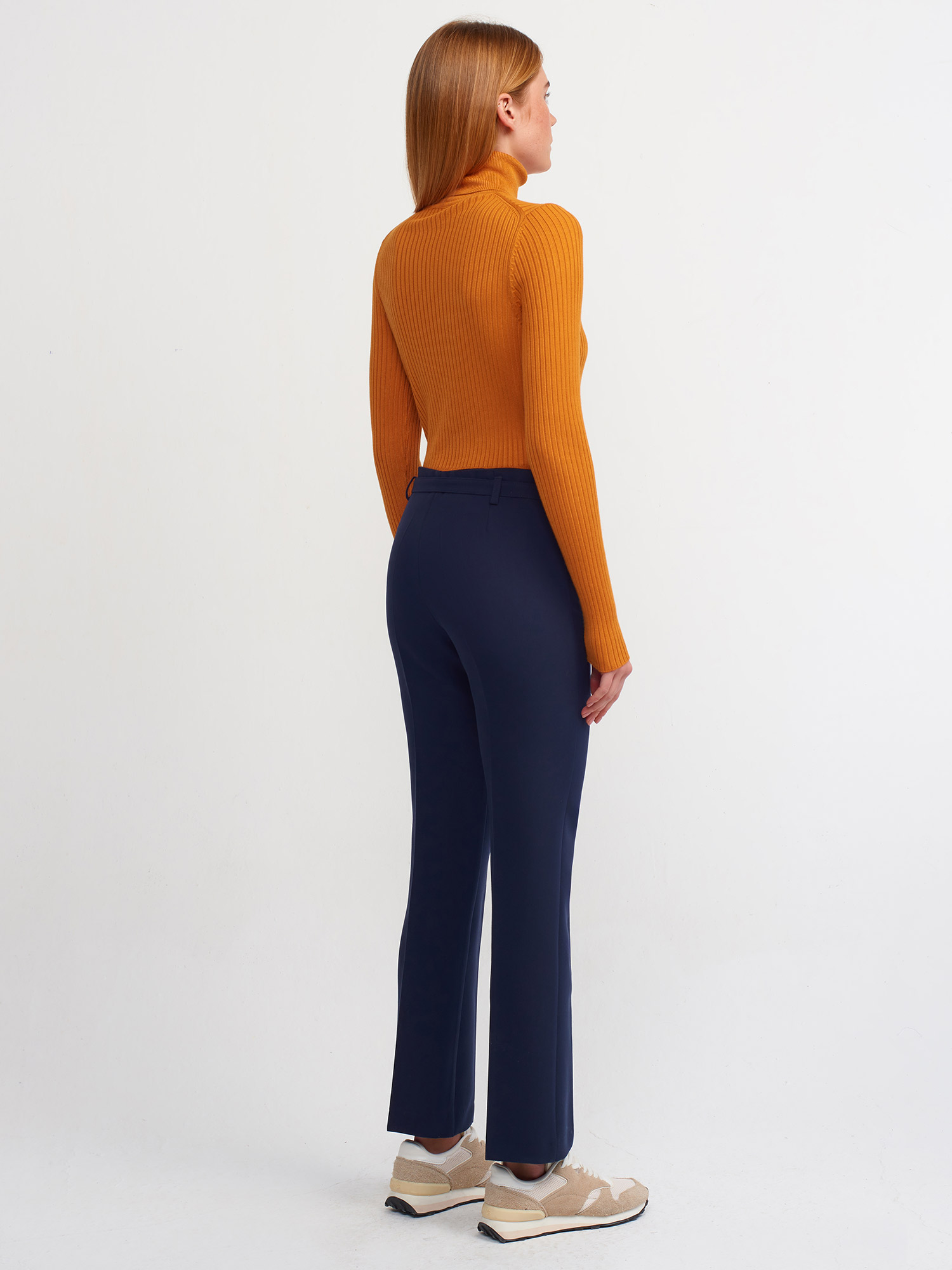 71255 Kemerli Düz Kesim Pantolon-Lacivert