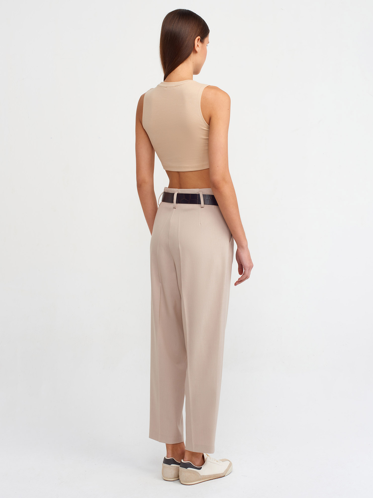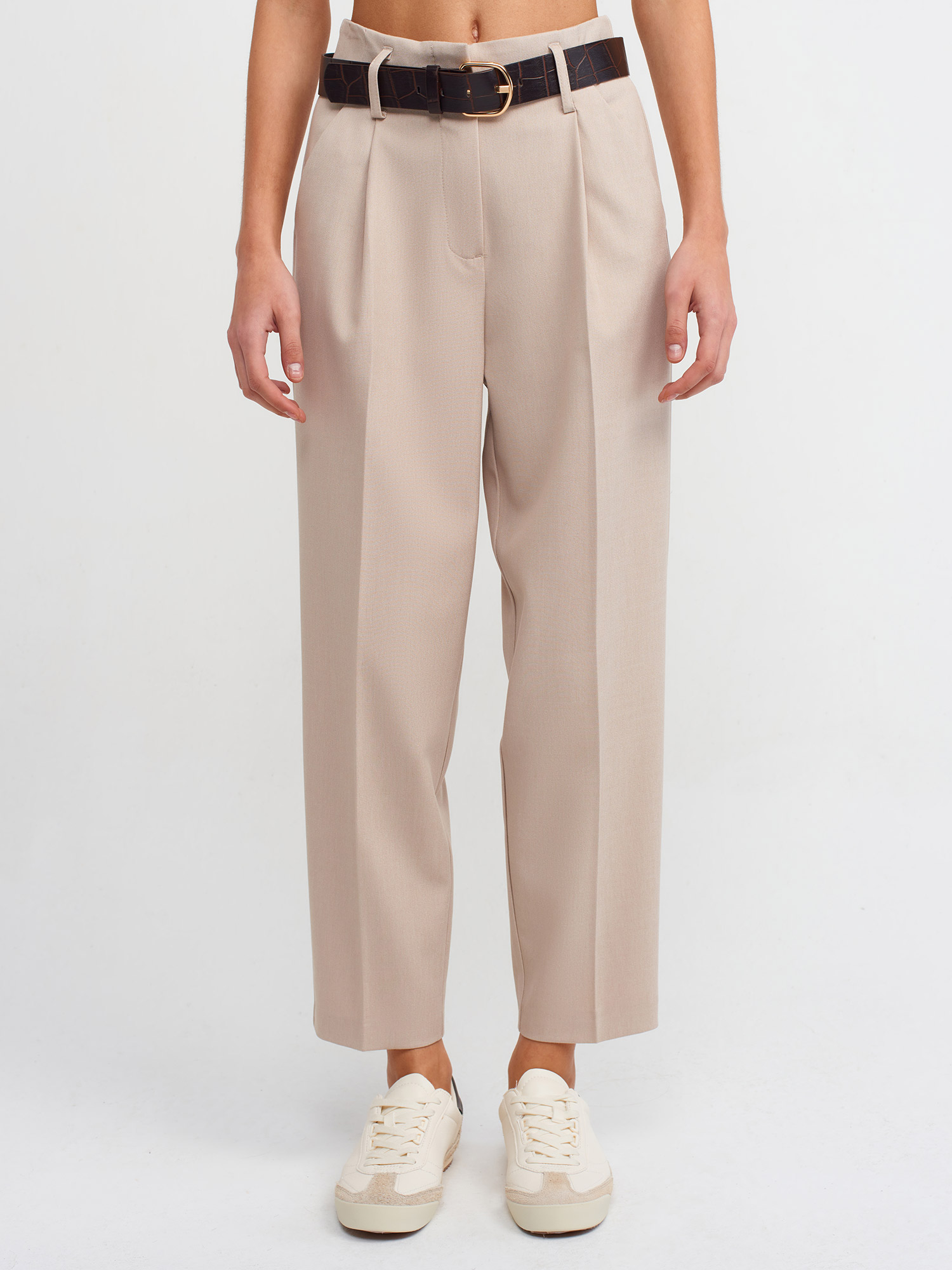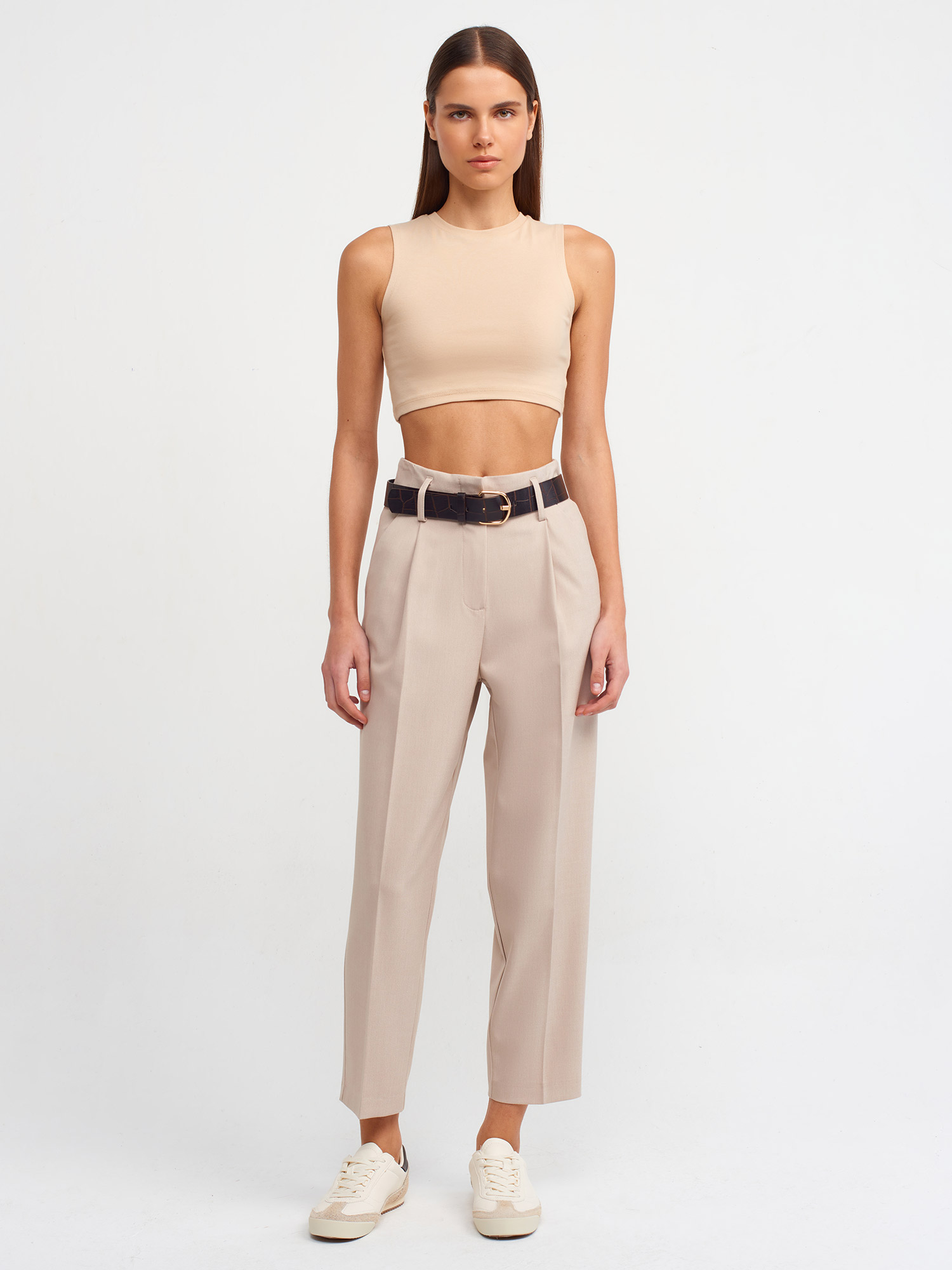 71259 Kabartmalı Kemerli Havuç Fit Pantolon-Taş