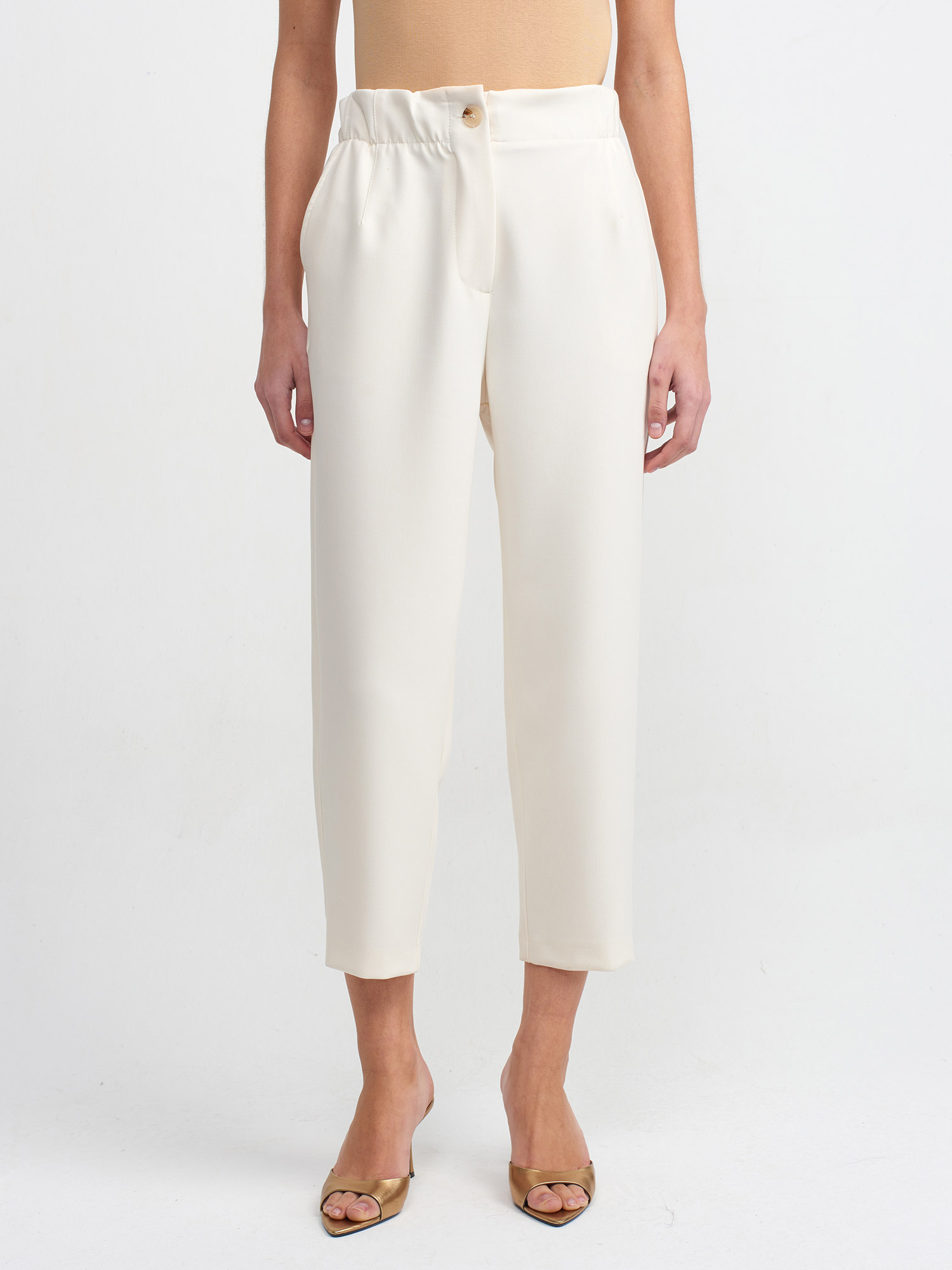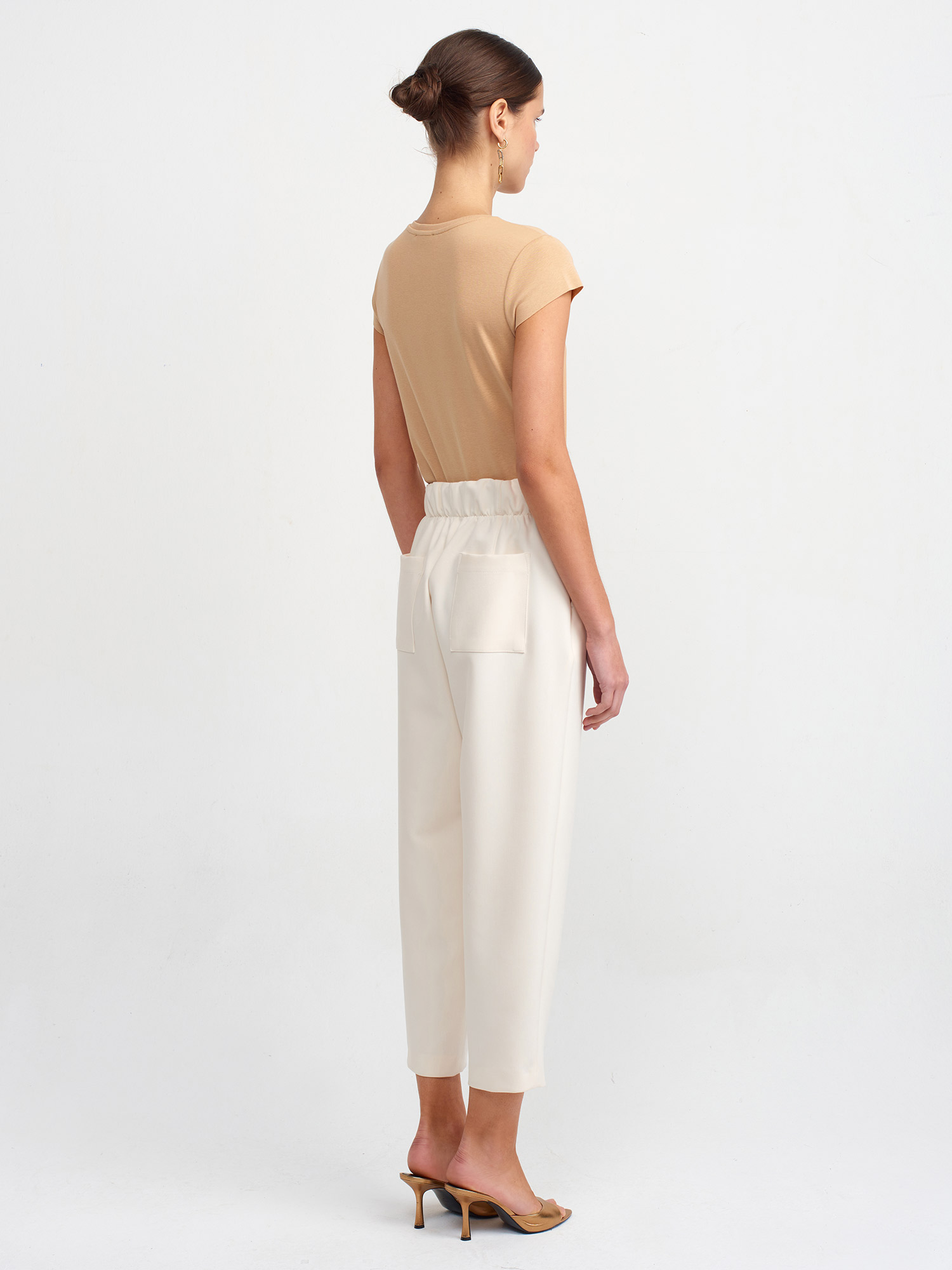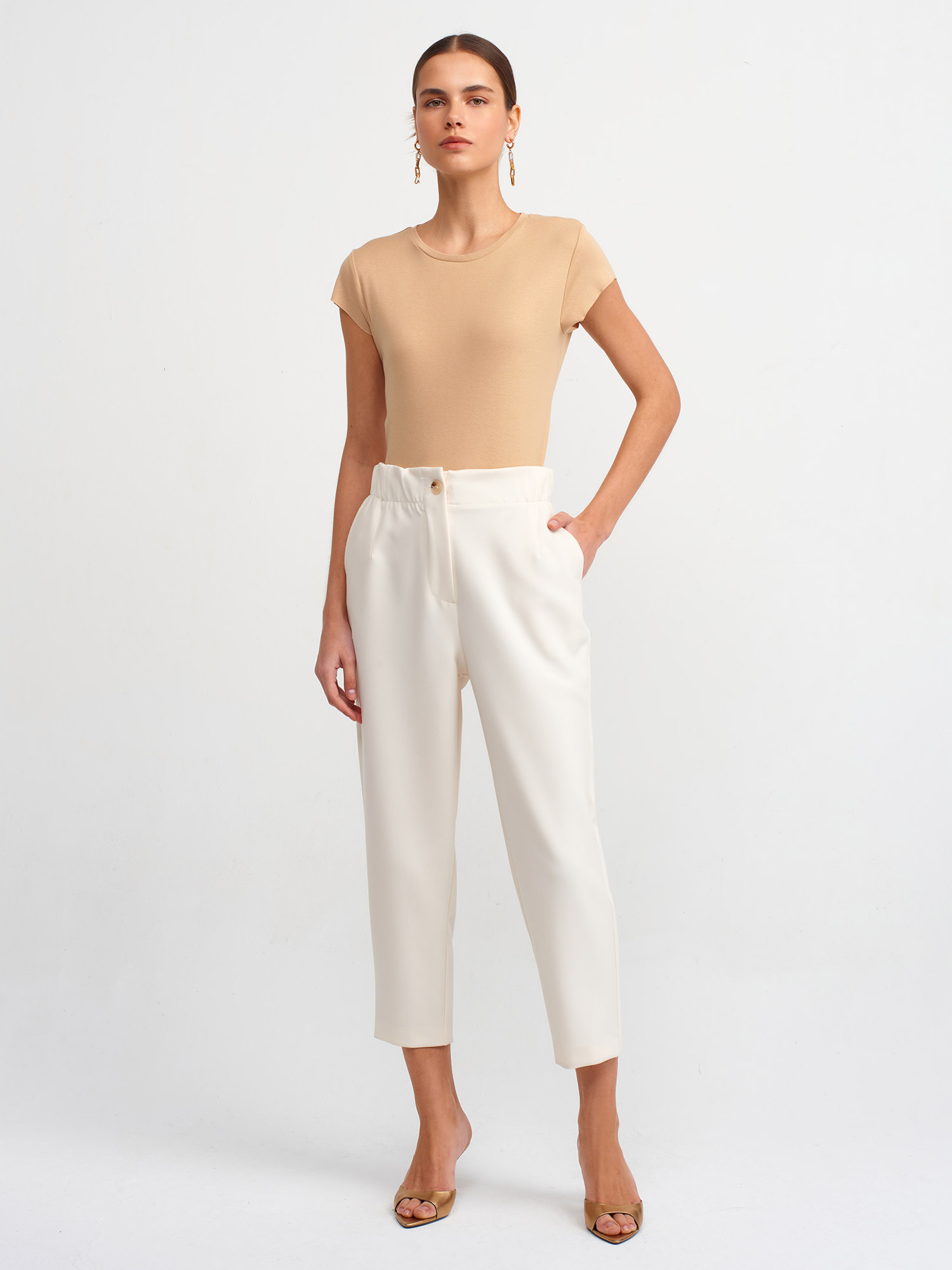 71269 Yüksek Belli Elastik Bel Bantlı Pantolon-Beyaz