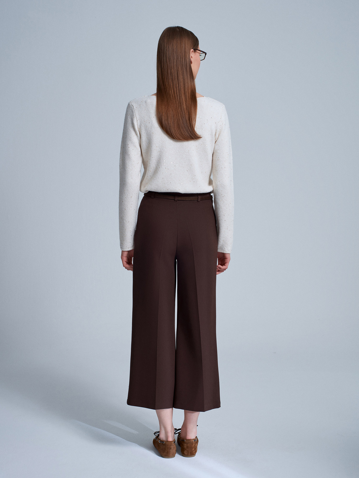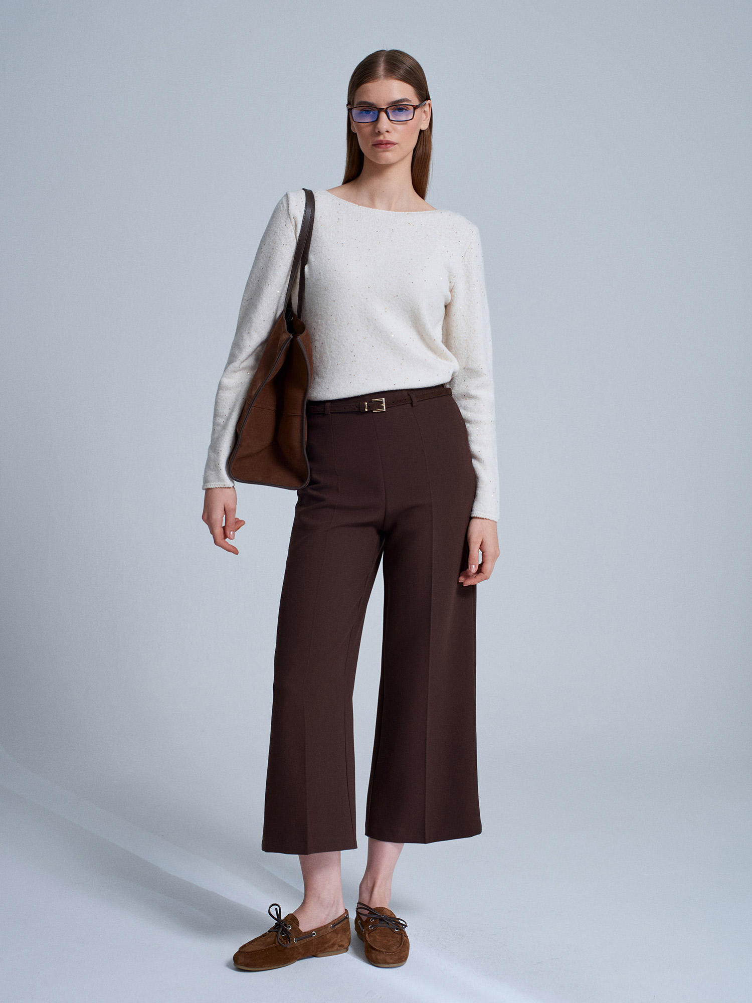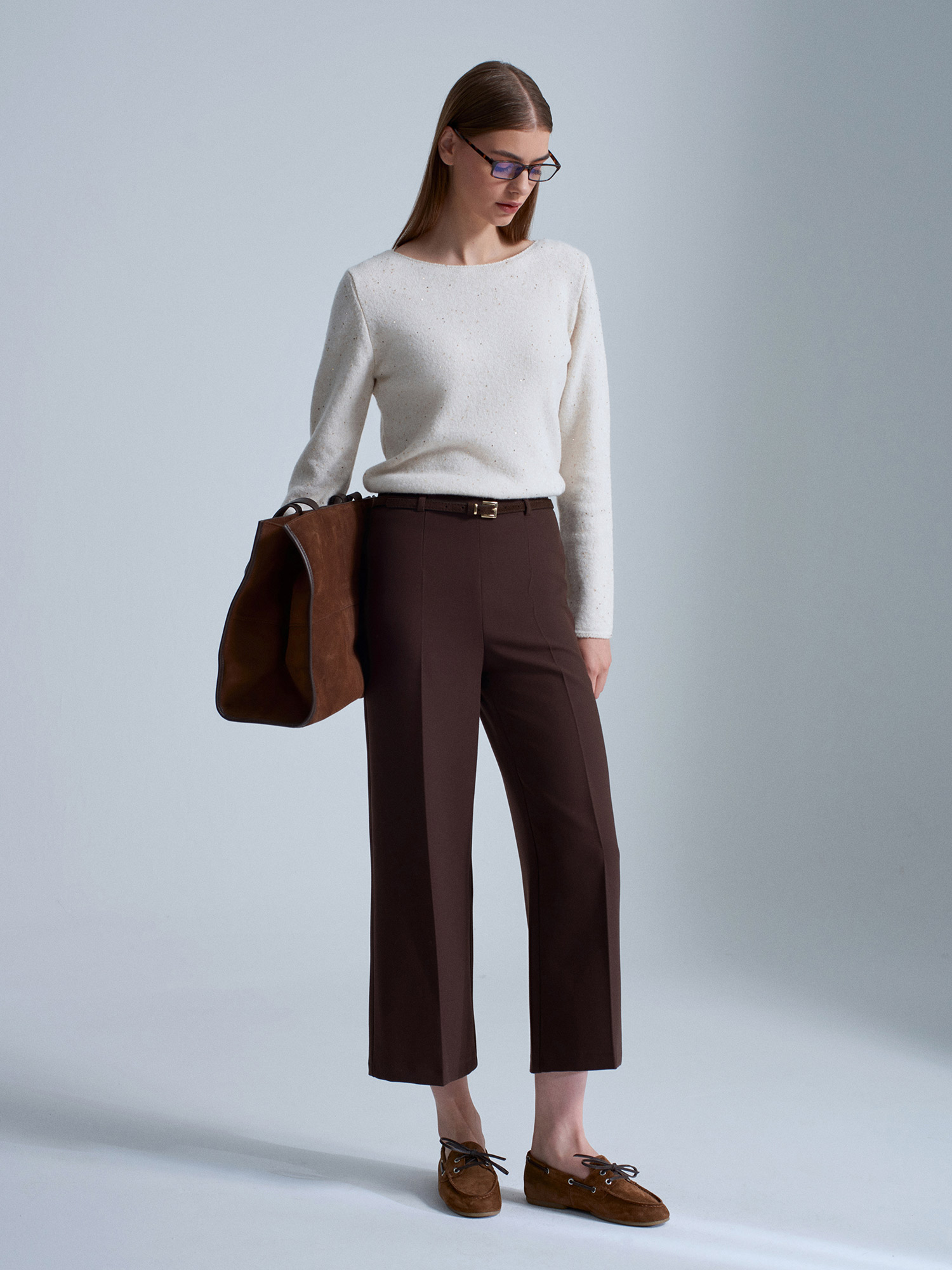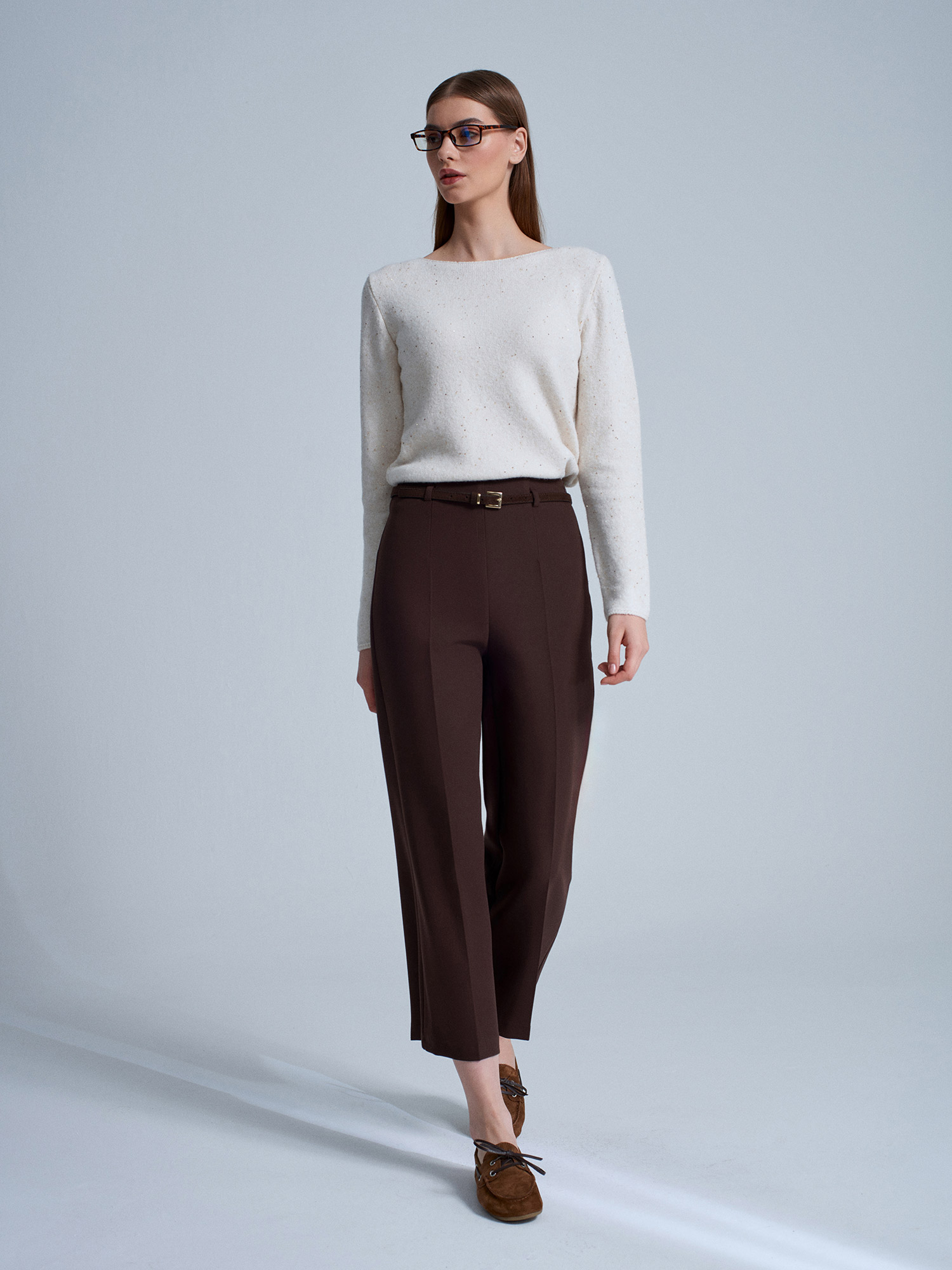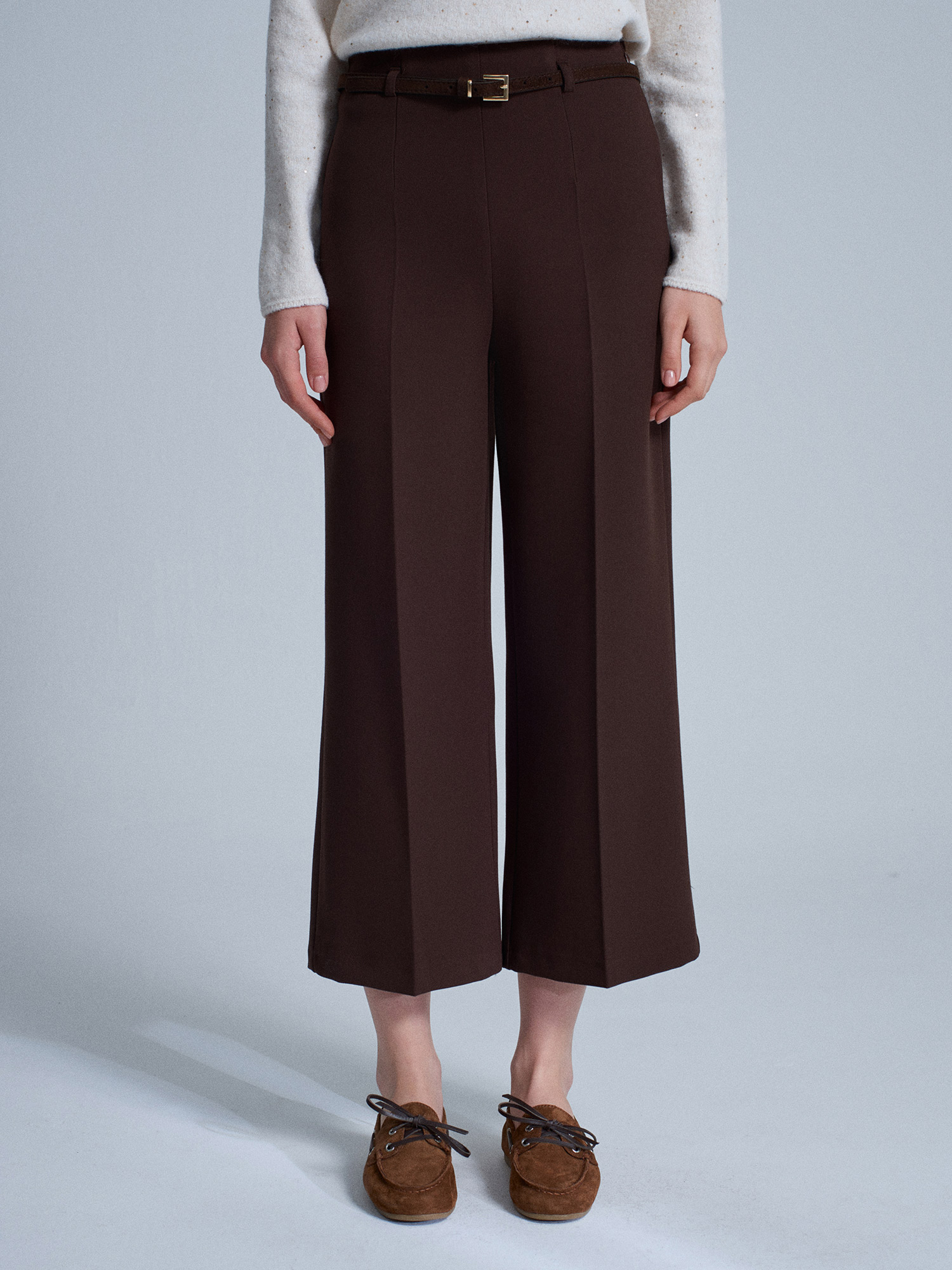 71276 Yanı Fermuarlı Kemerli Kumaş Pantolon-Kahve