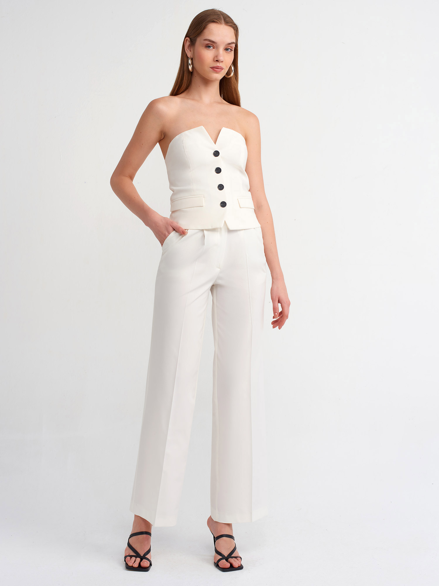 71283 Ayarlanabilir Belli Şık Pantolon-Beyaz