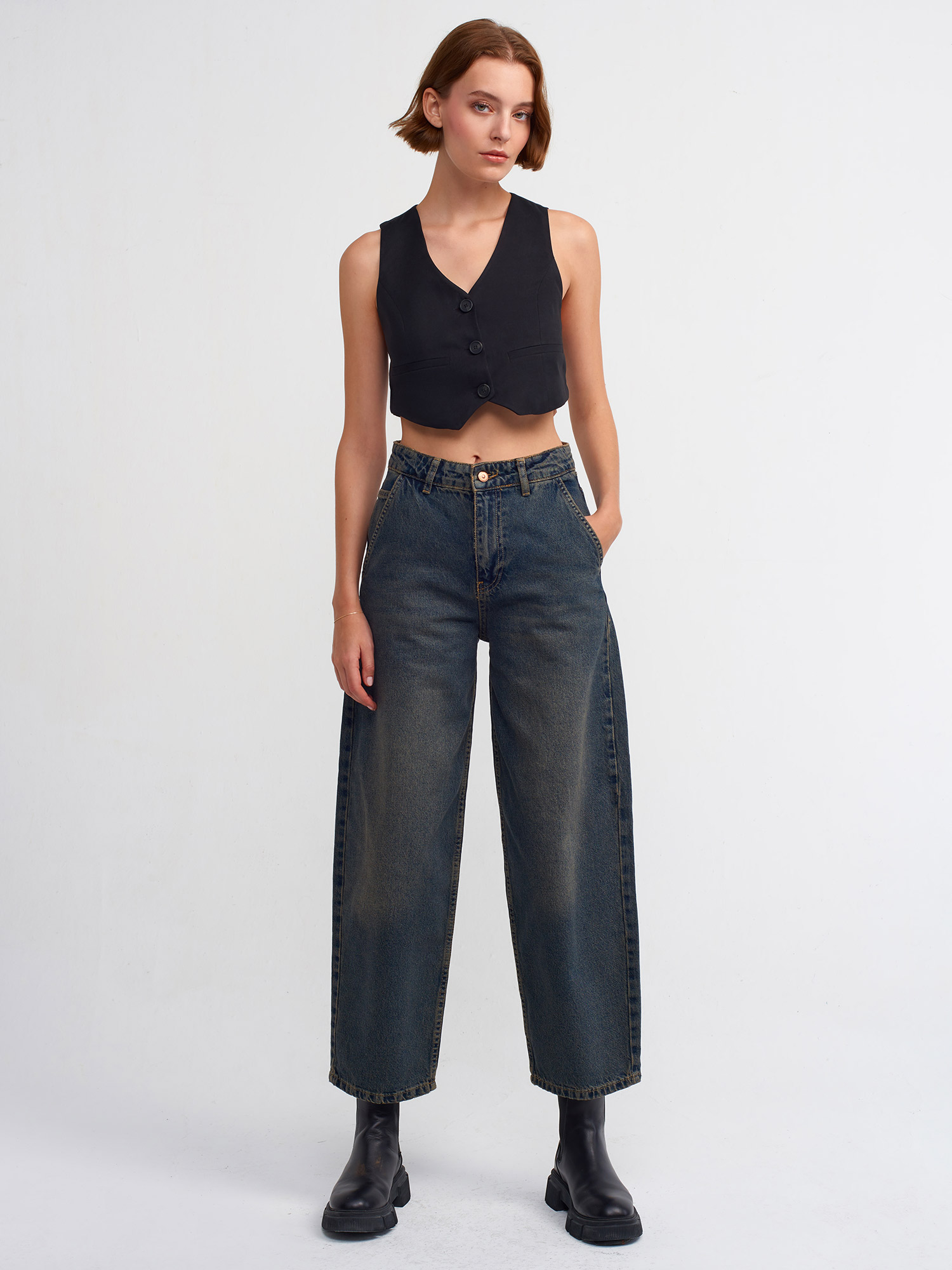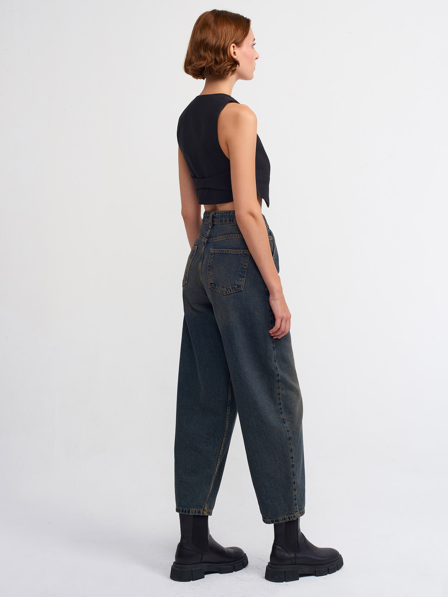 71353 Chino Cepli Geniş Denim Balon Pantolon-Kahve