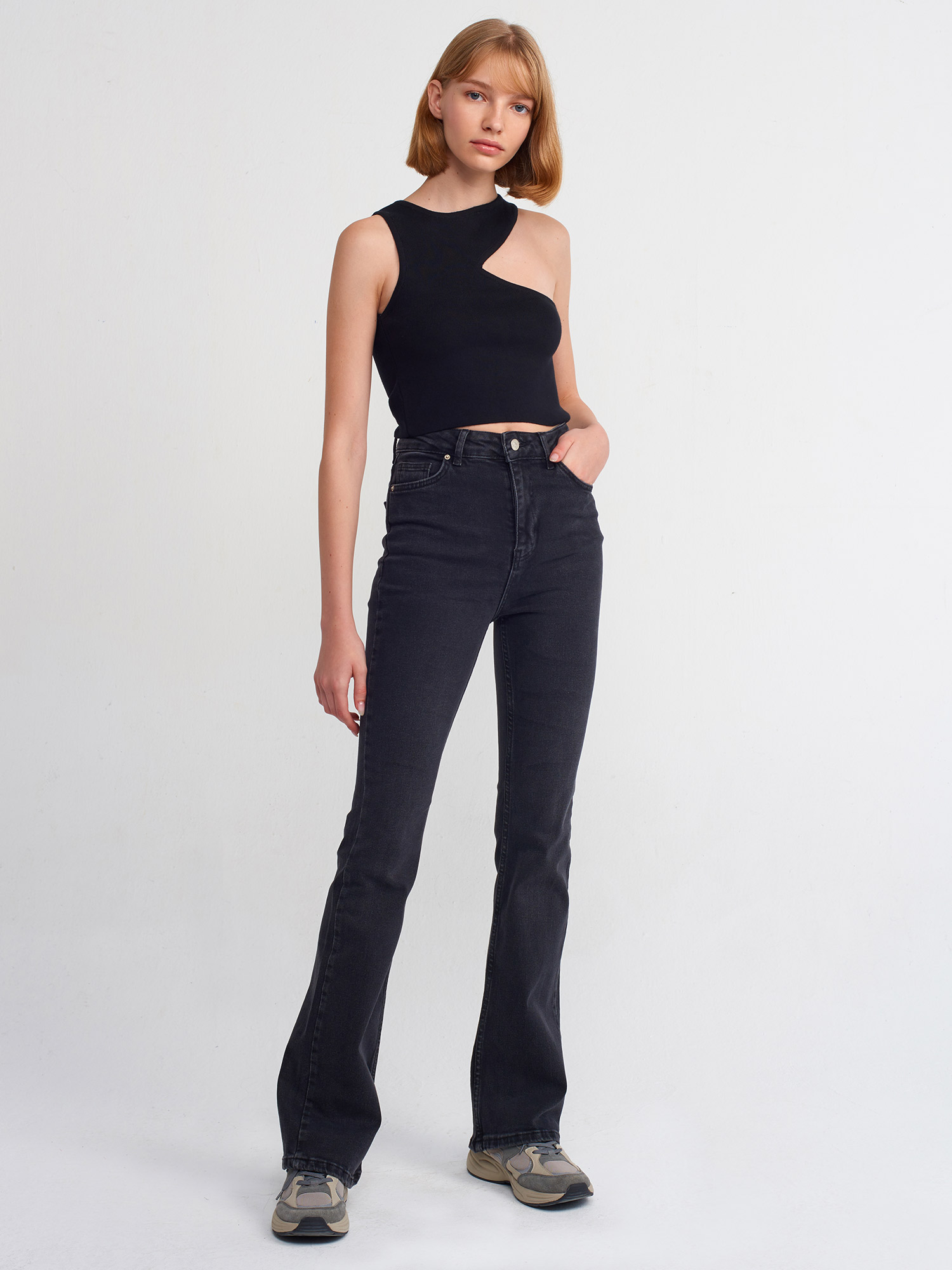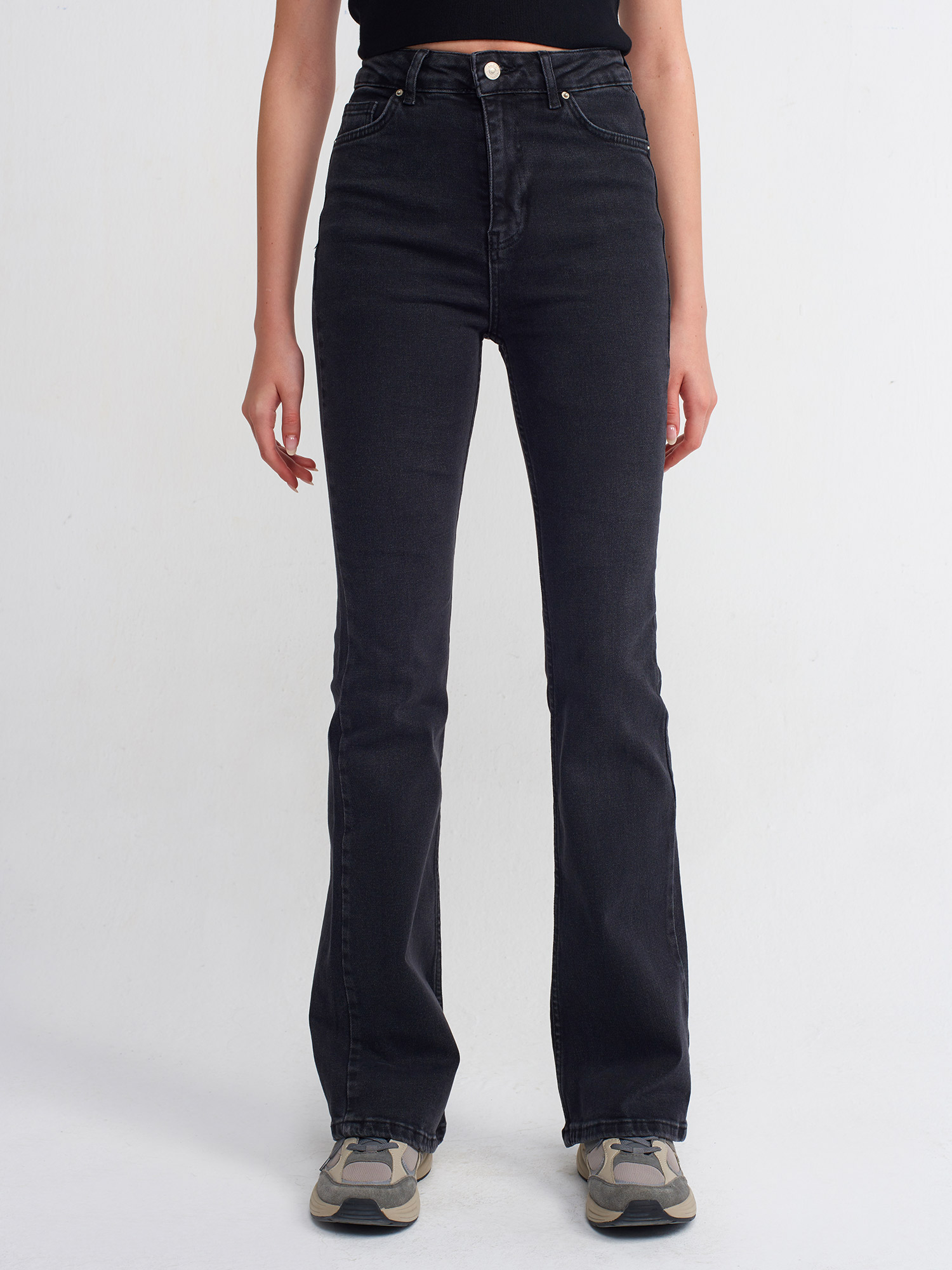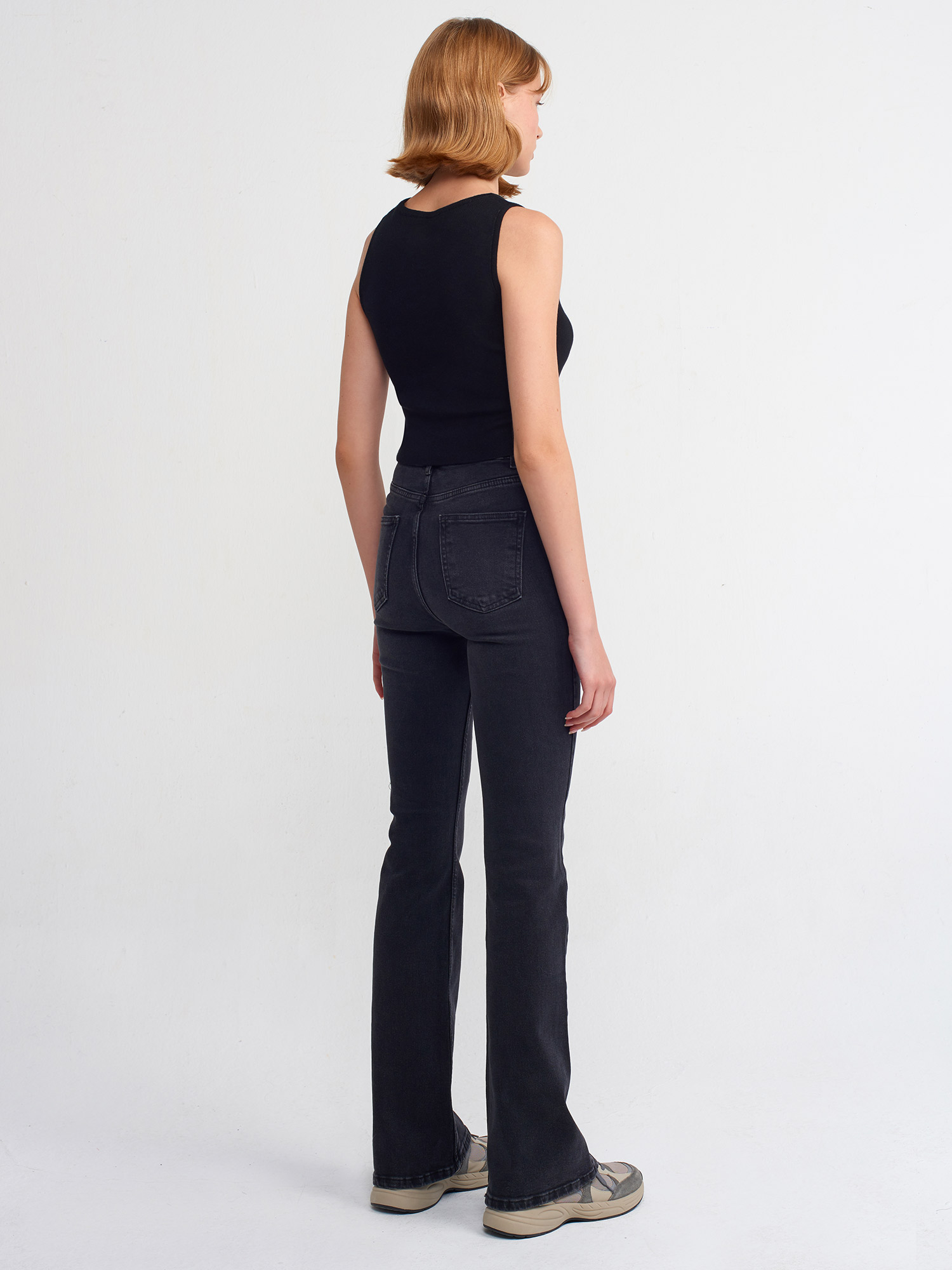 71376 Siyah Likralı Flare Denim Pantolon-Siyah