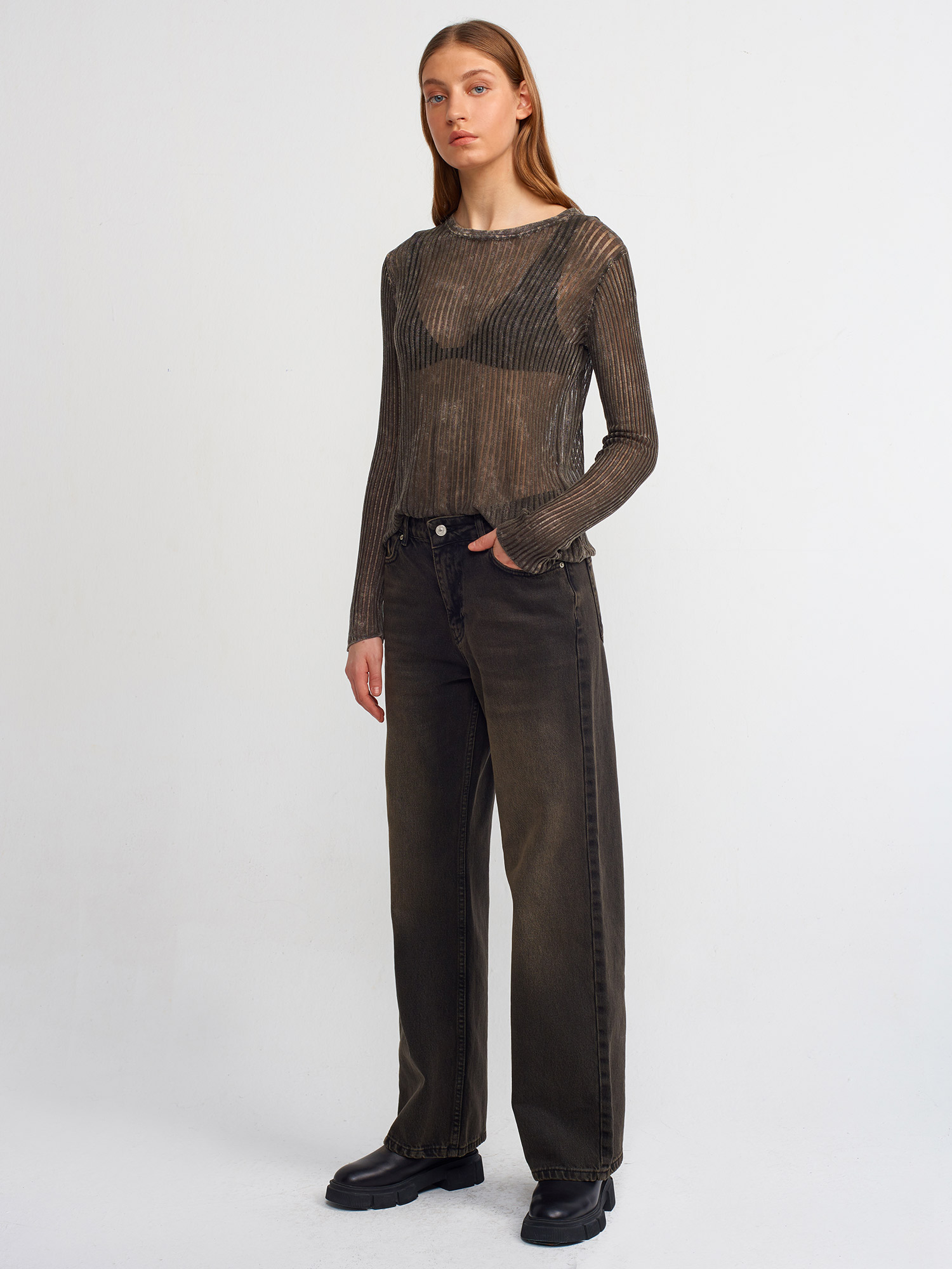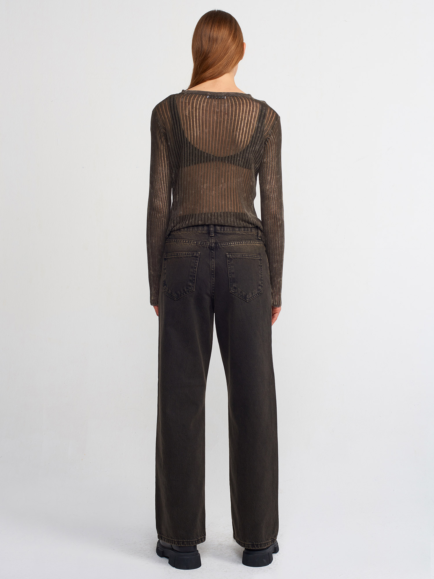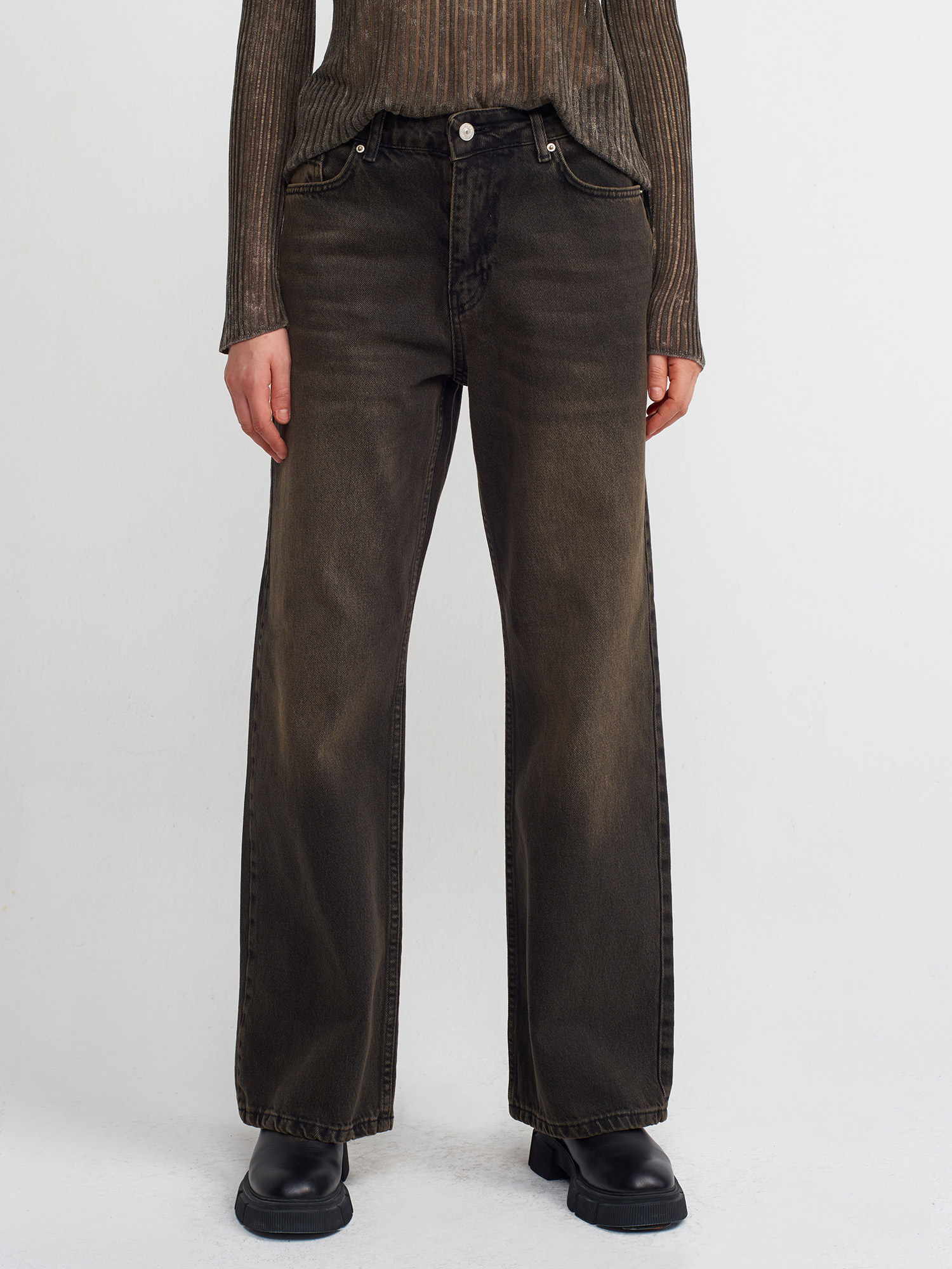 71406 Tint Yıkama Wide Leg Denim Pantolon-Siyah