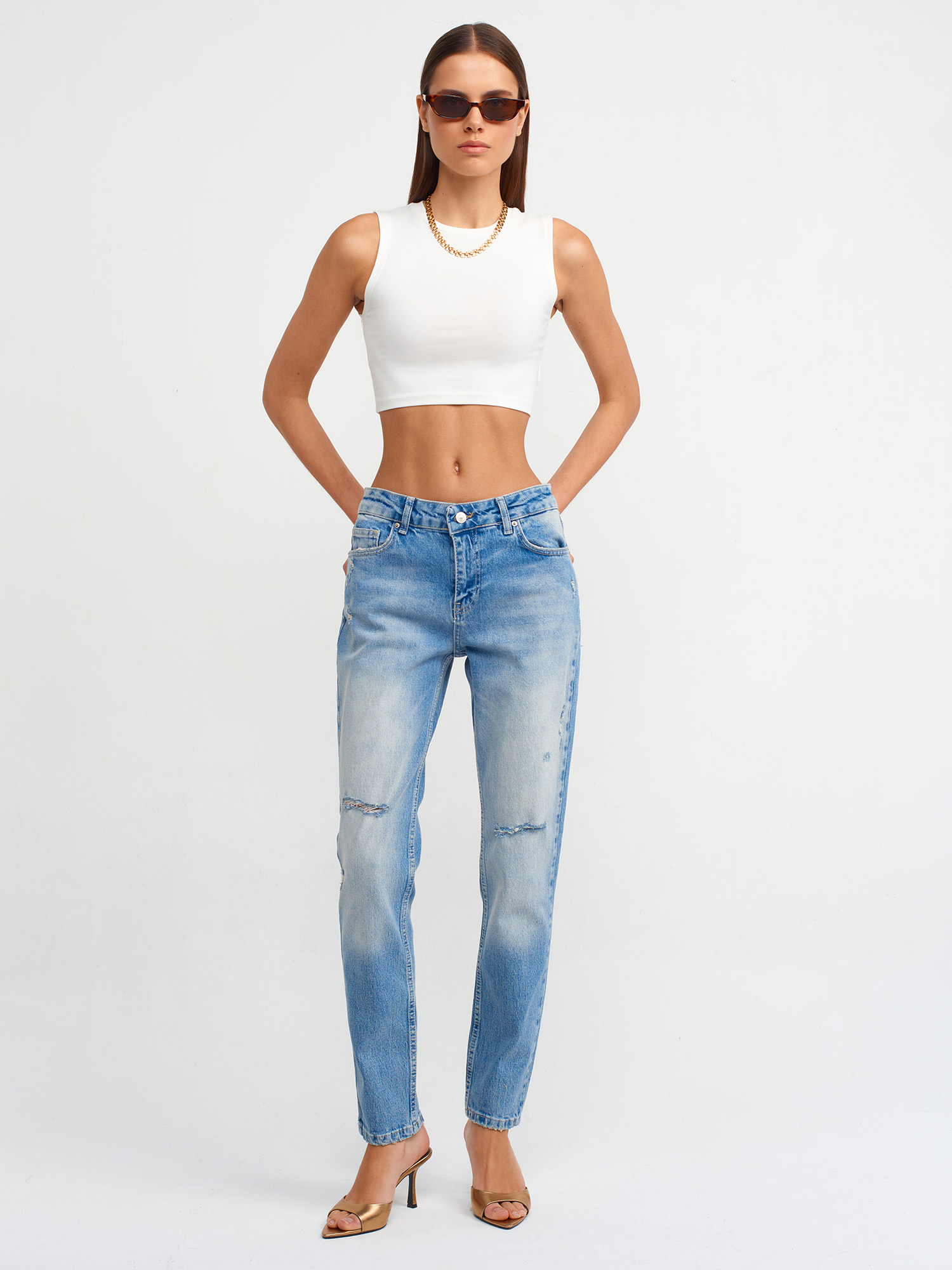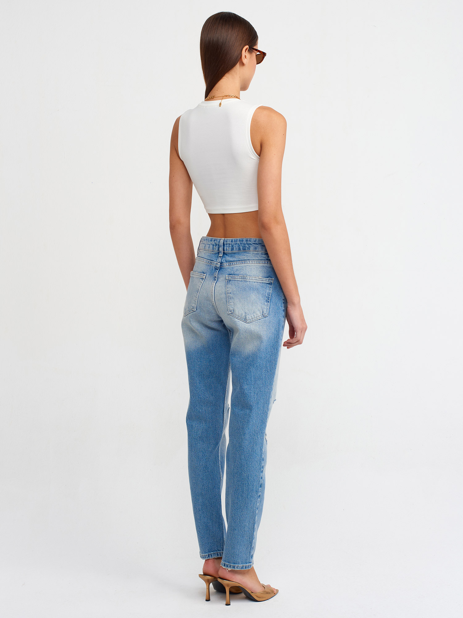 71440 Düşükbel Comfort Likra Denim Pantolon-Mavi