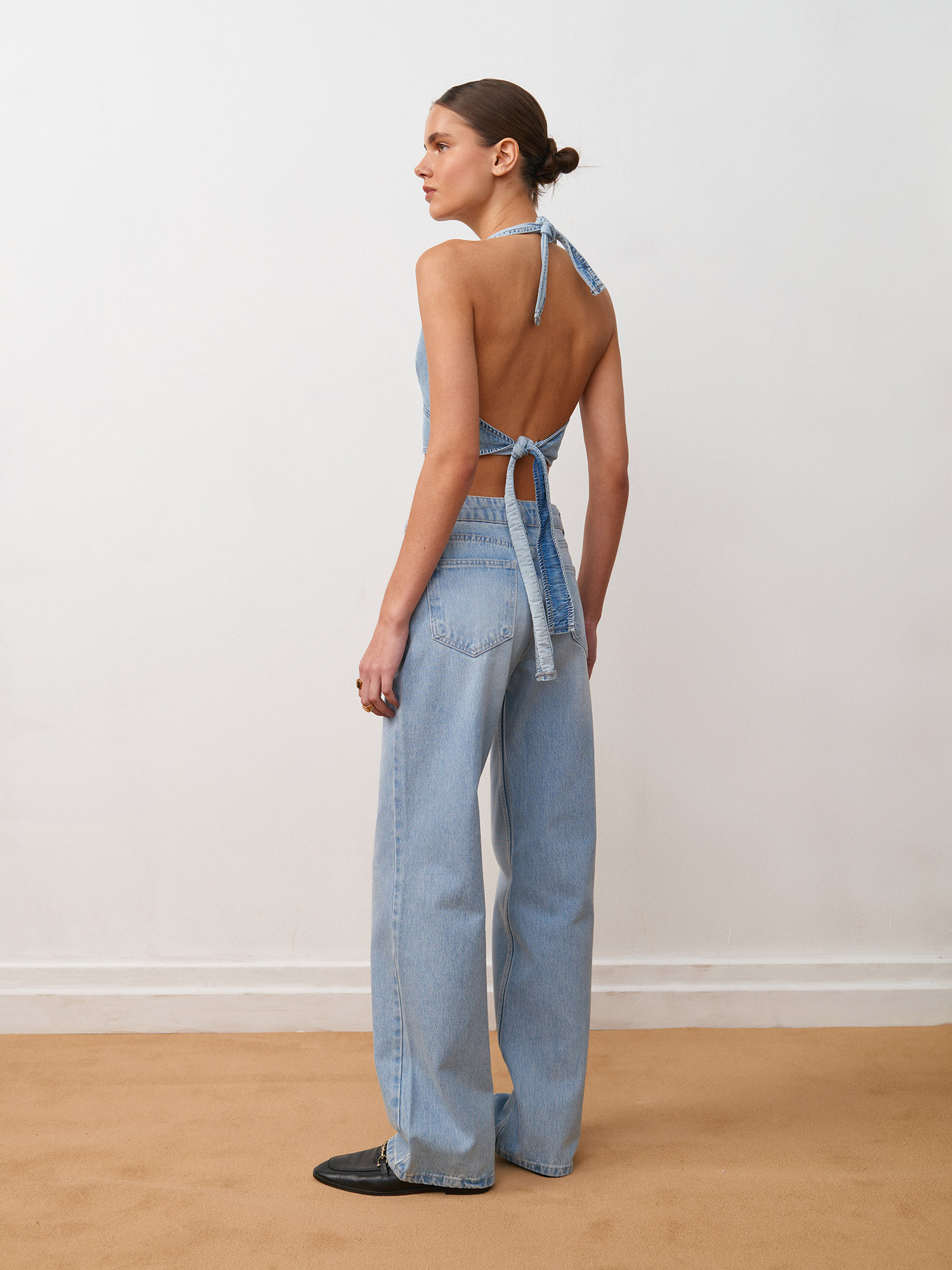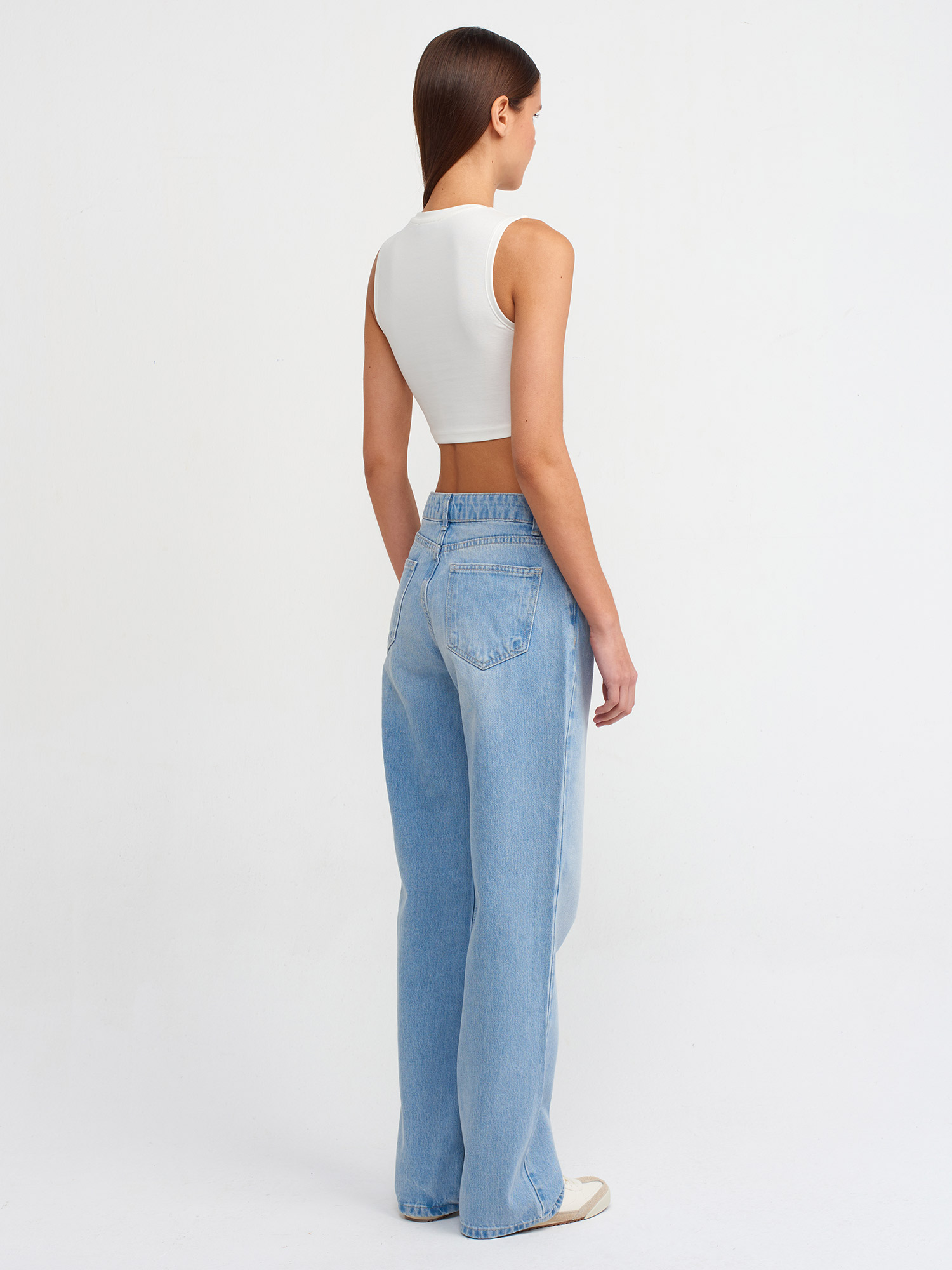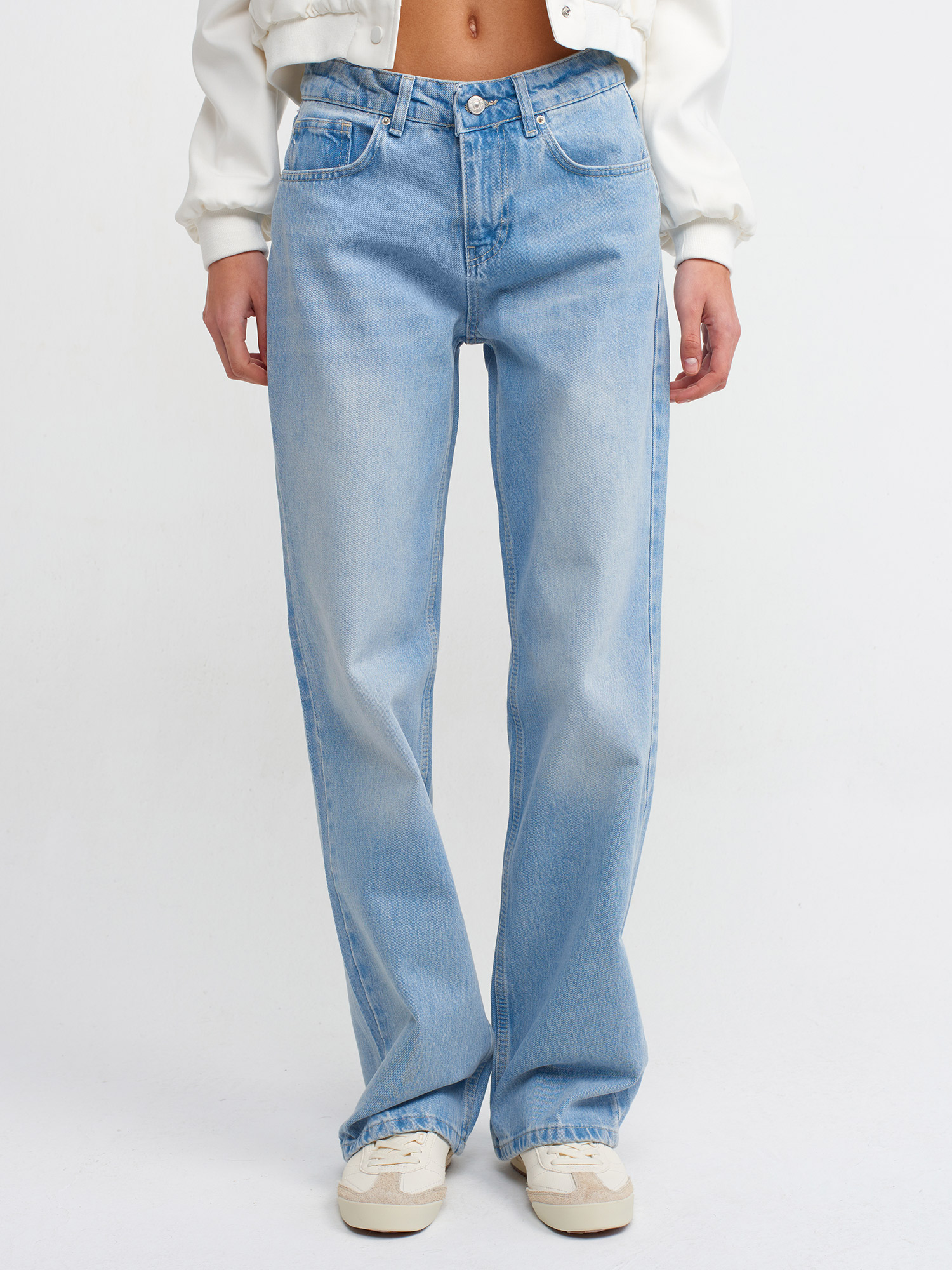 71441 Düşük Bel Straight Denim Pantolon-Mavi