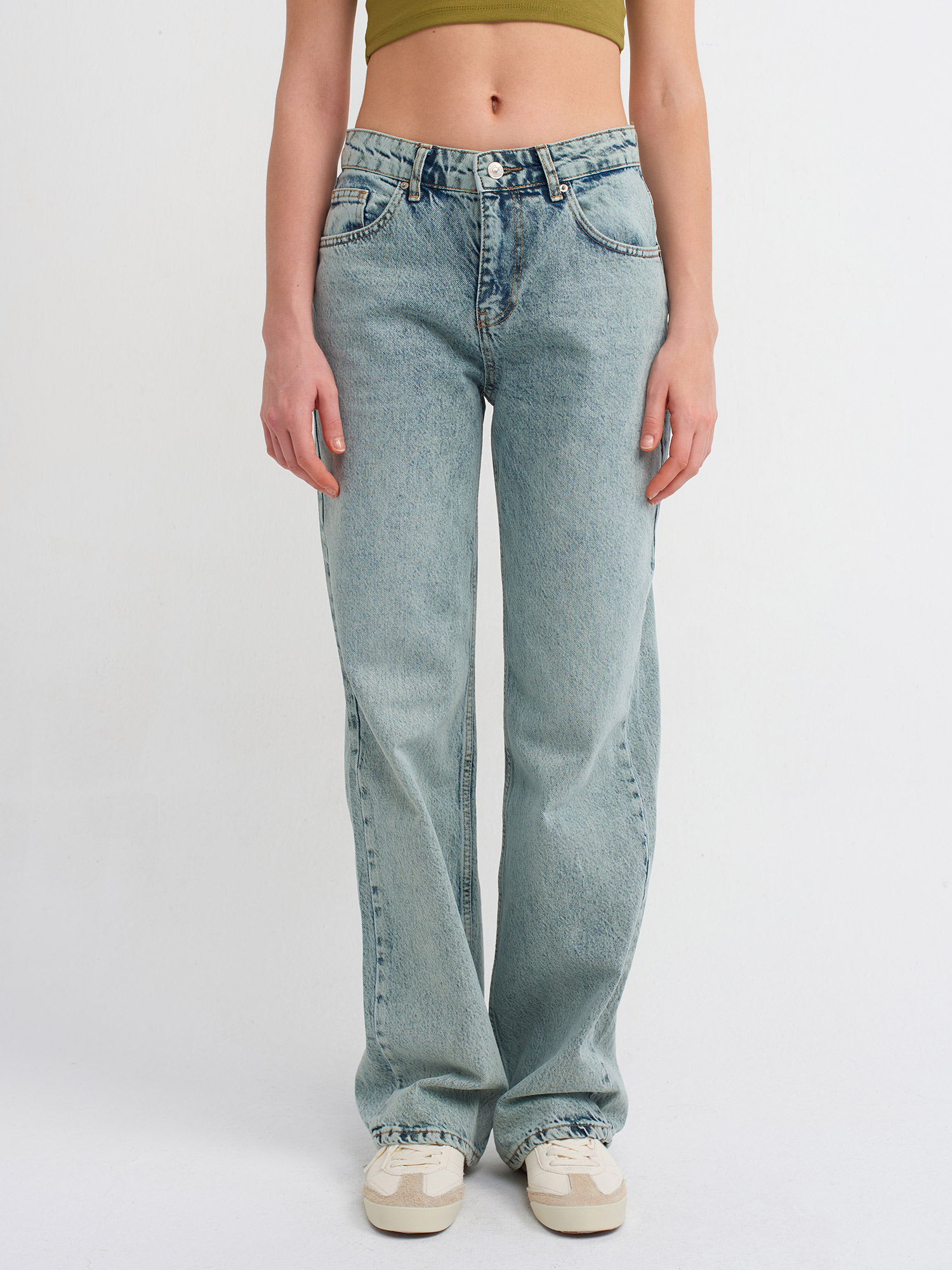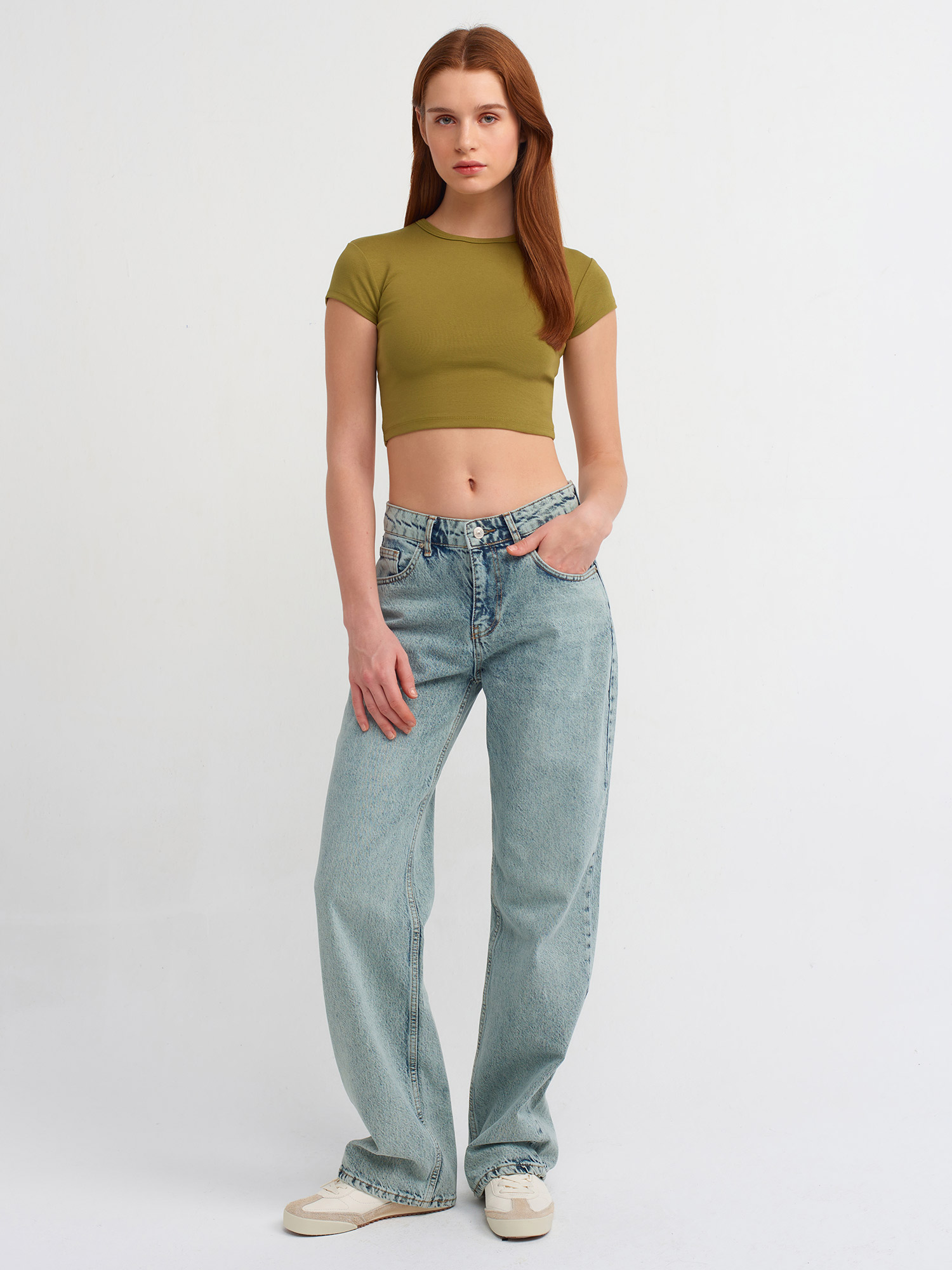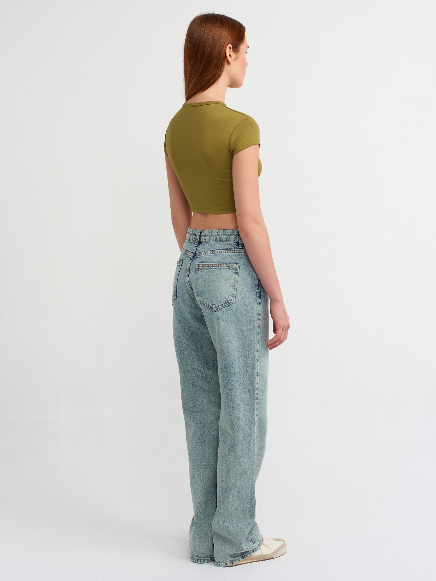 71458 Yıkama Efektli Straight Denim Pantolon-Yeşil