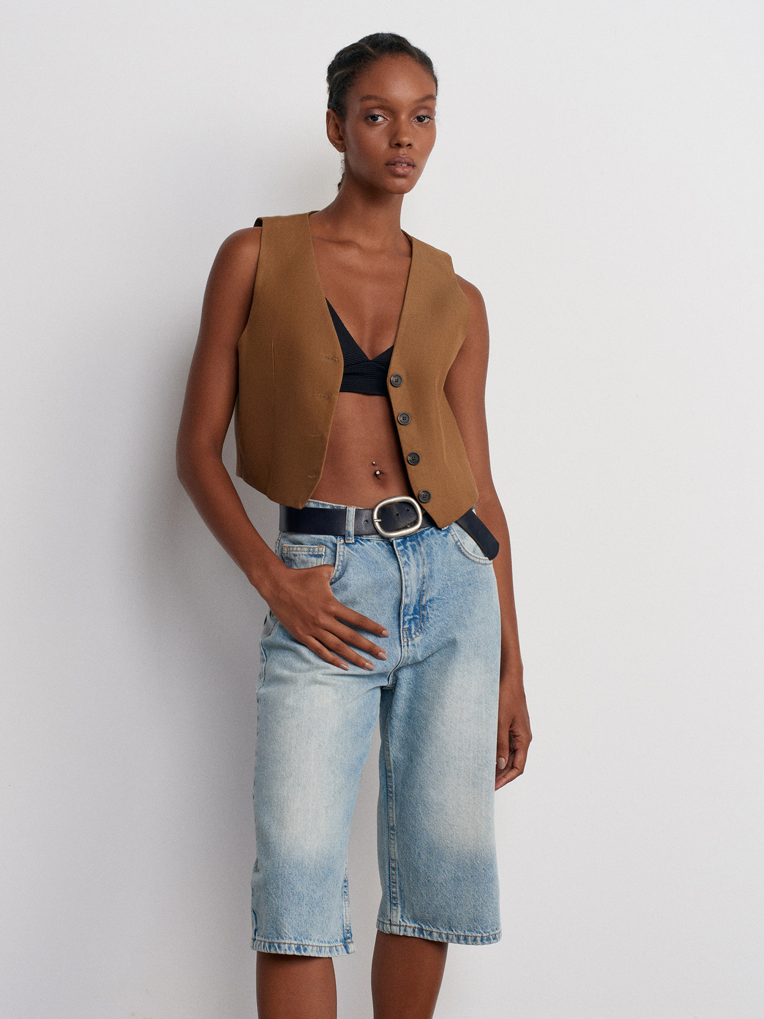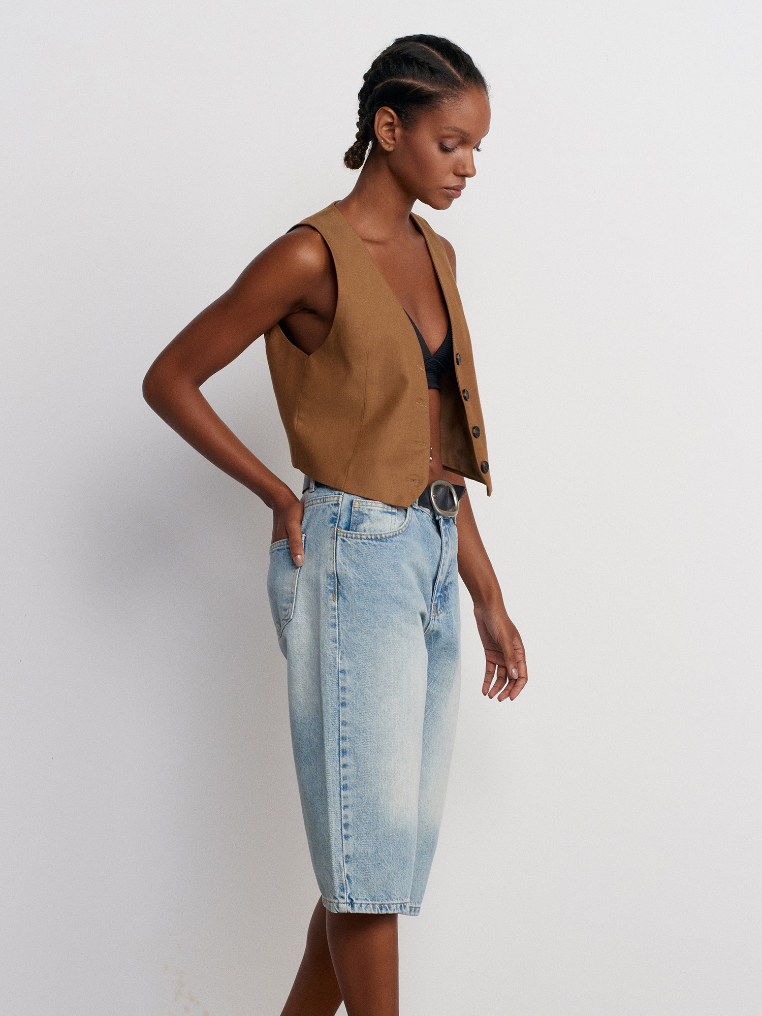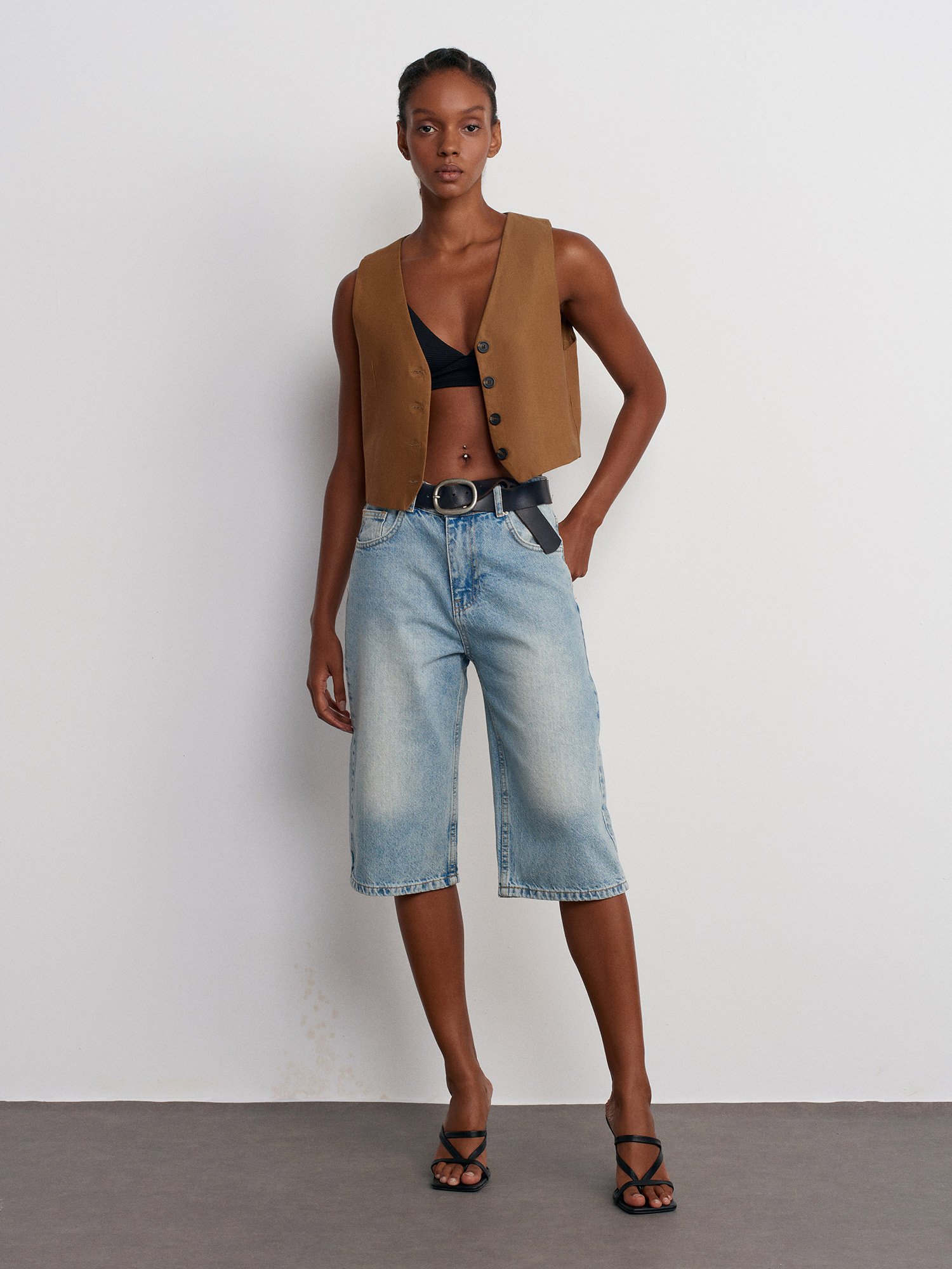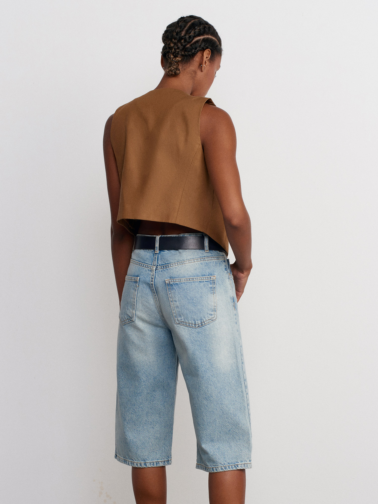 71482 Dar Kesim Denim Bermuda-Mavi