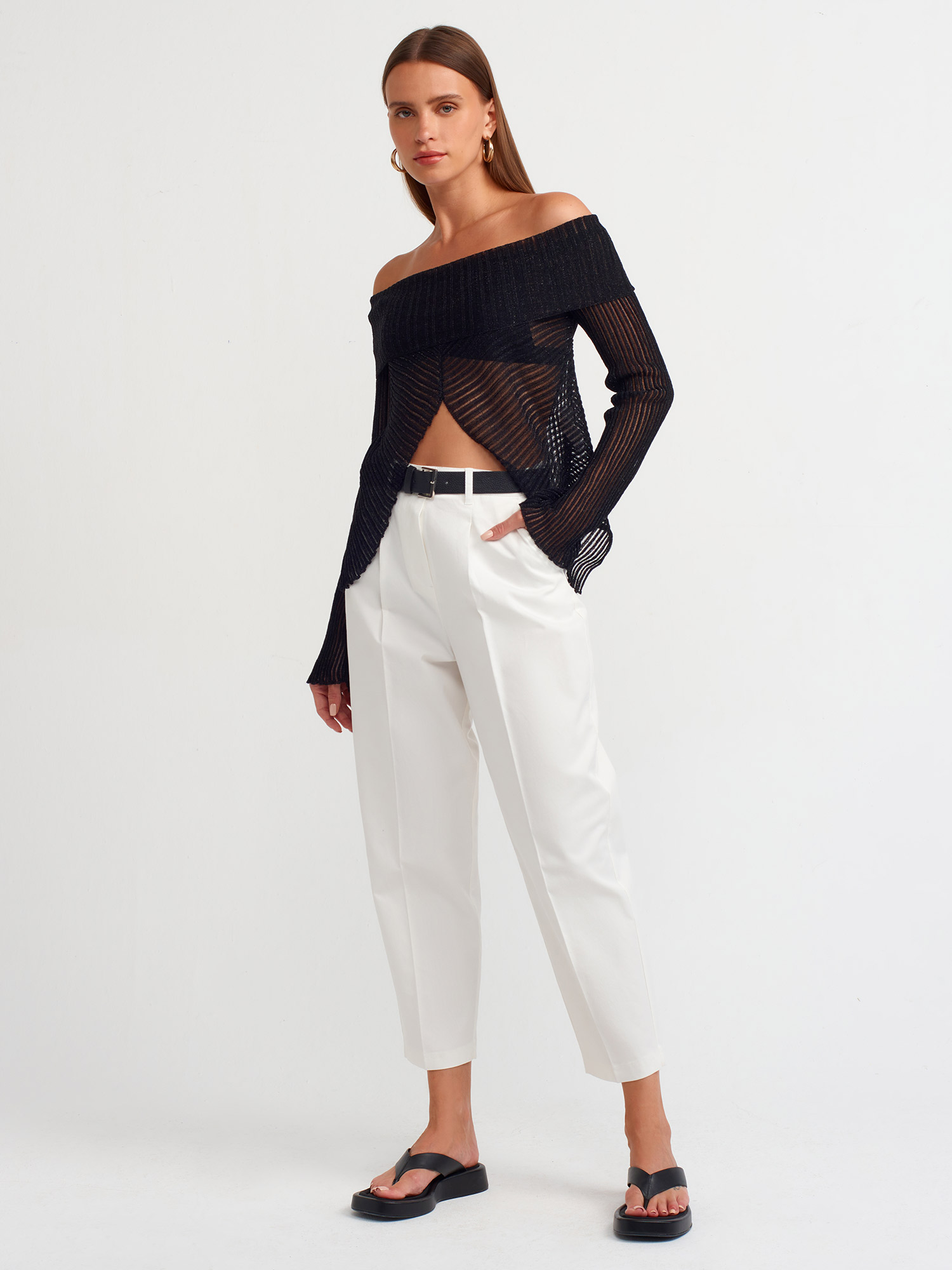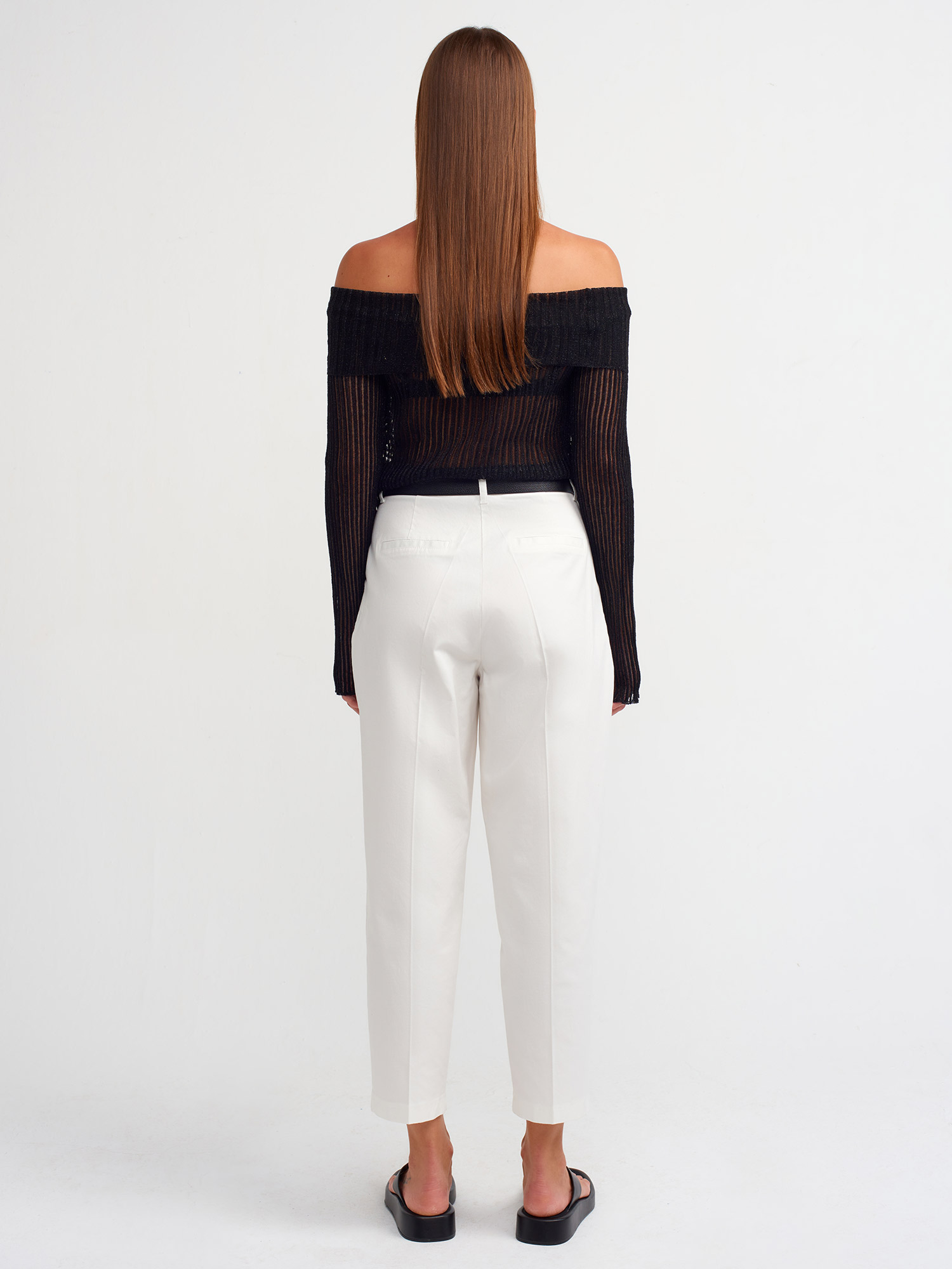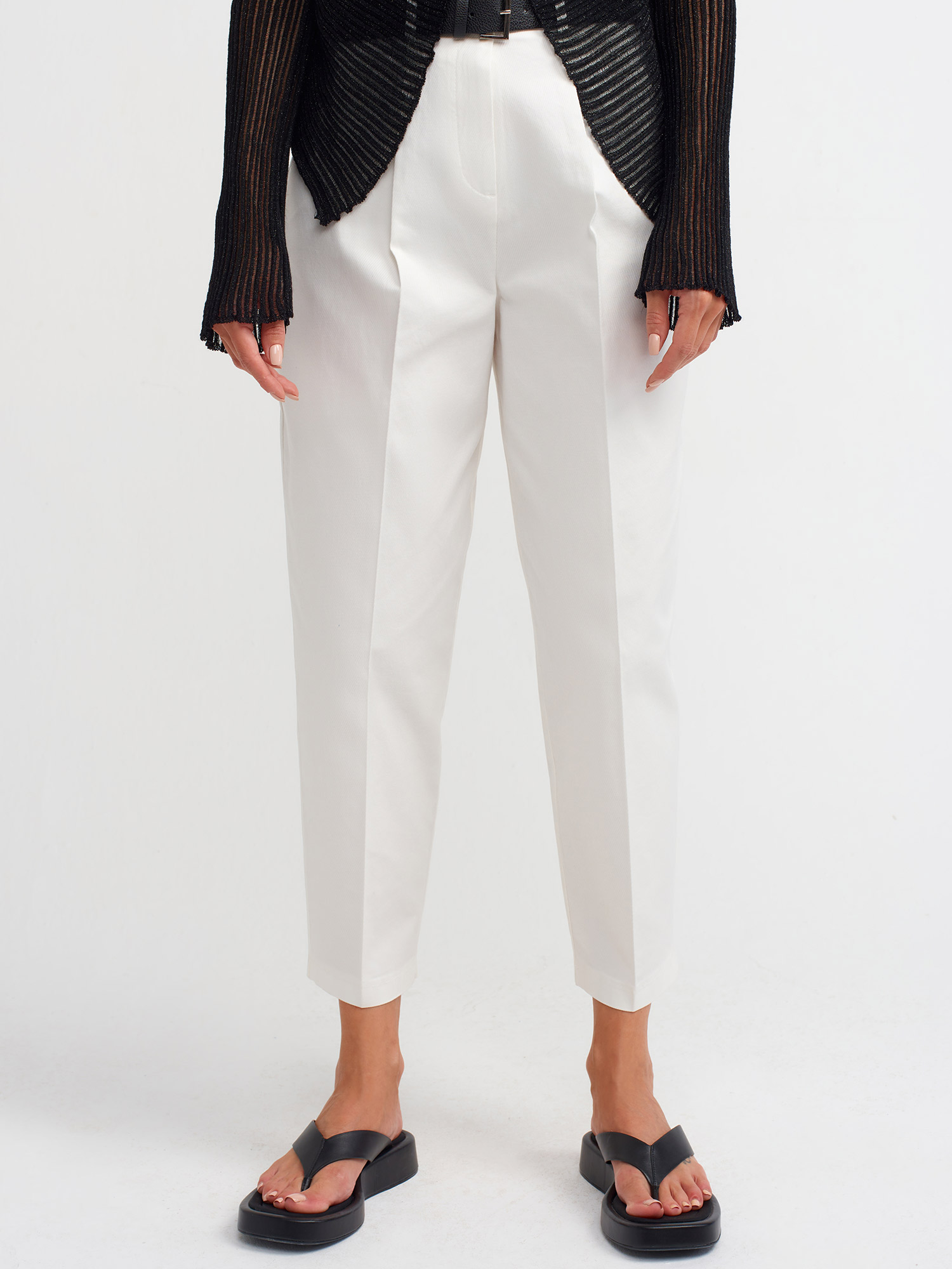 71518 Kemerli Chino Pantolon-Beyaz