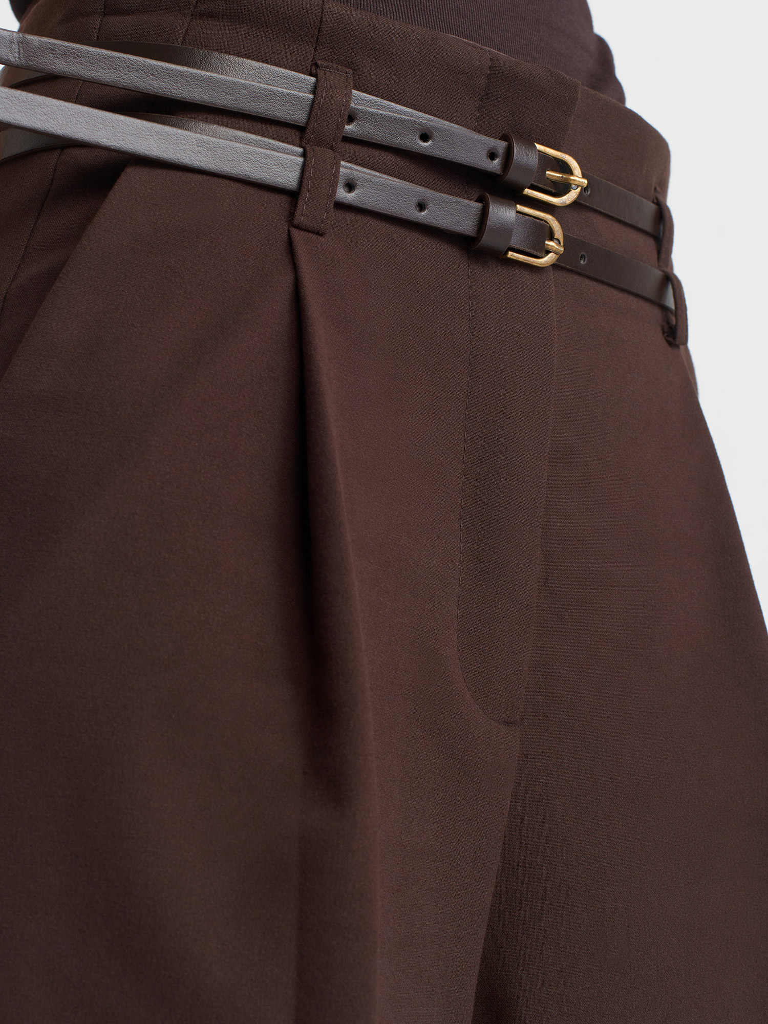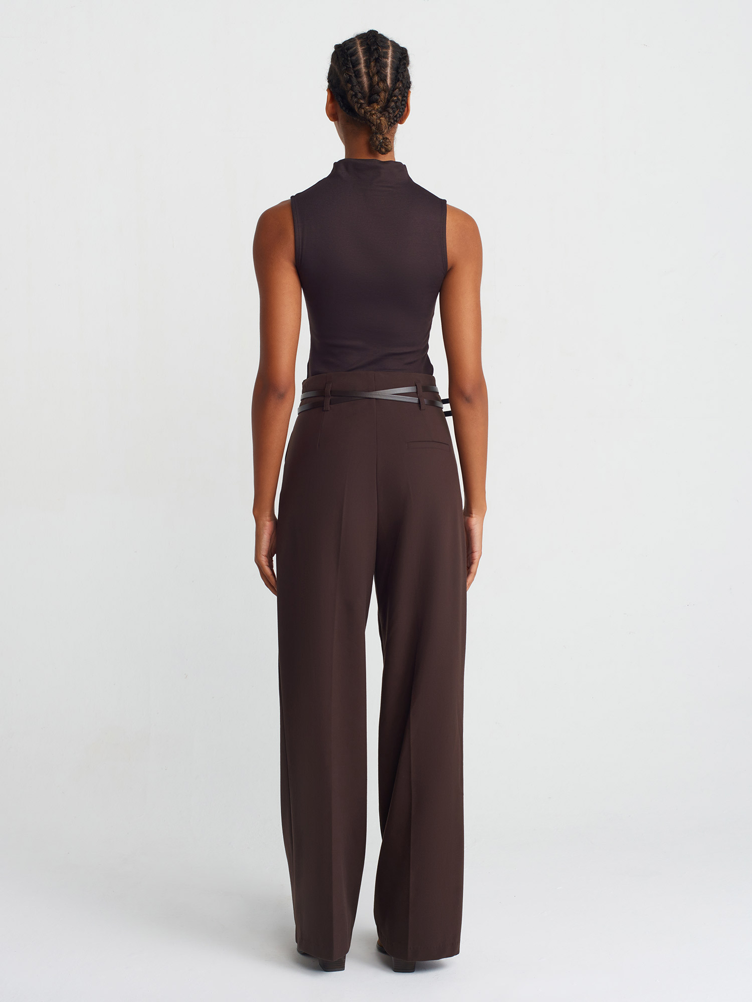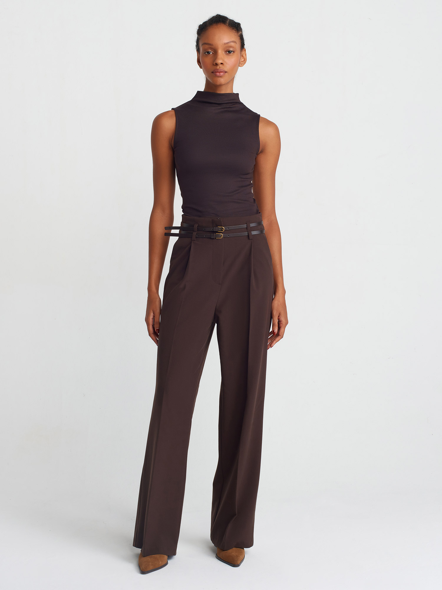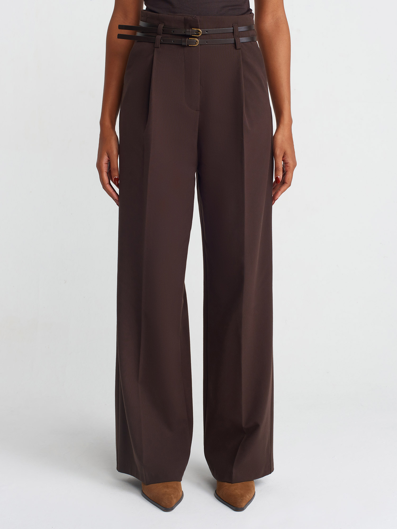 71526 Kemerli Yüksek Bel Pantolon-Kahve