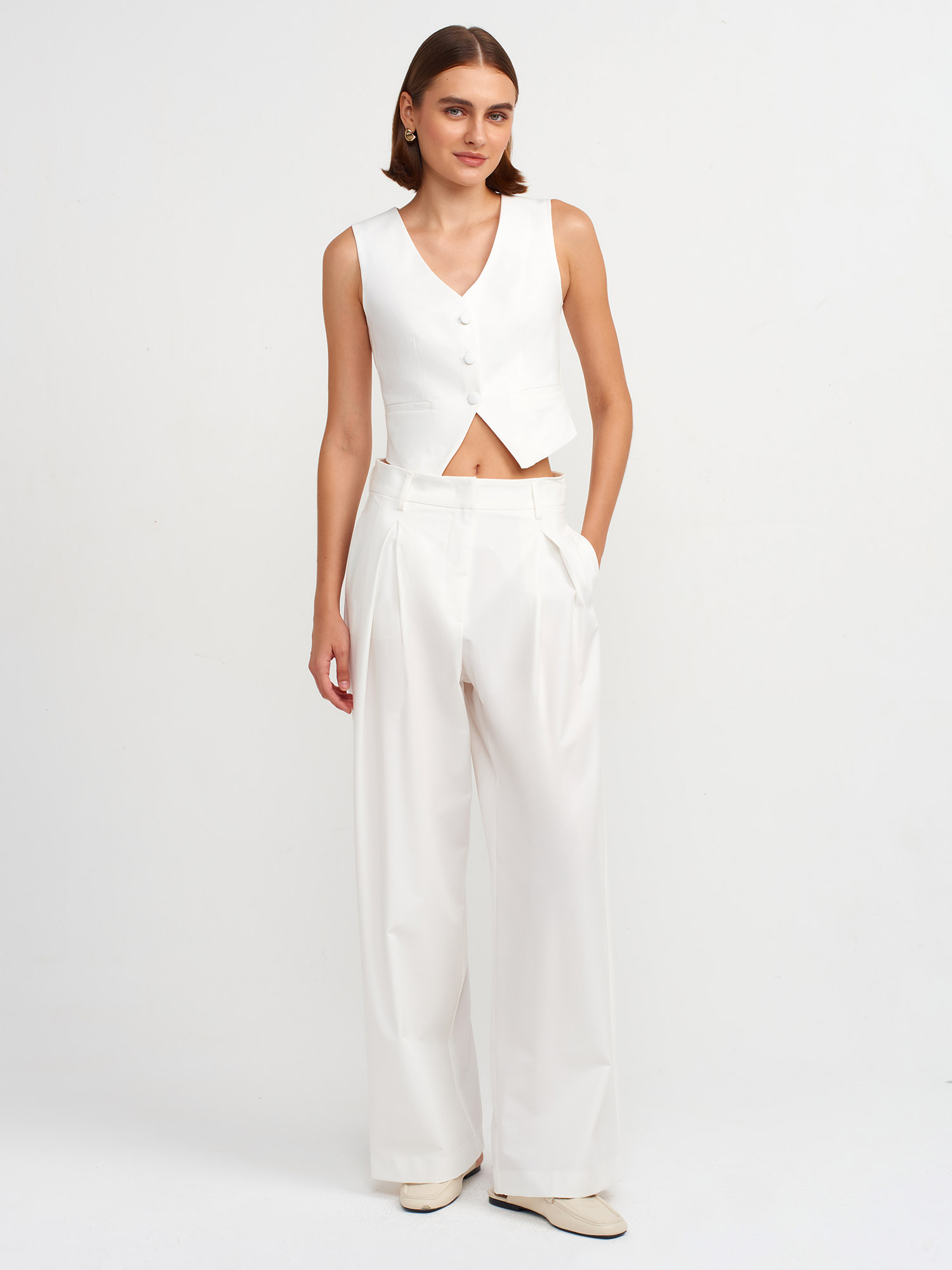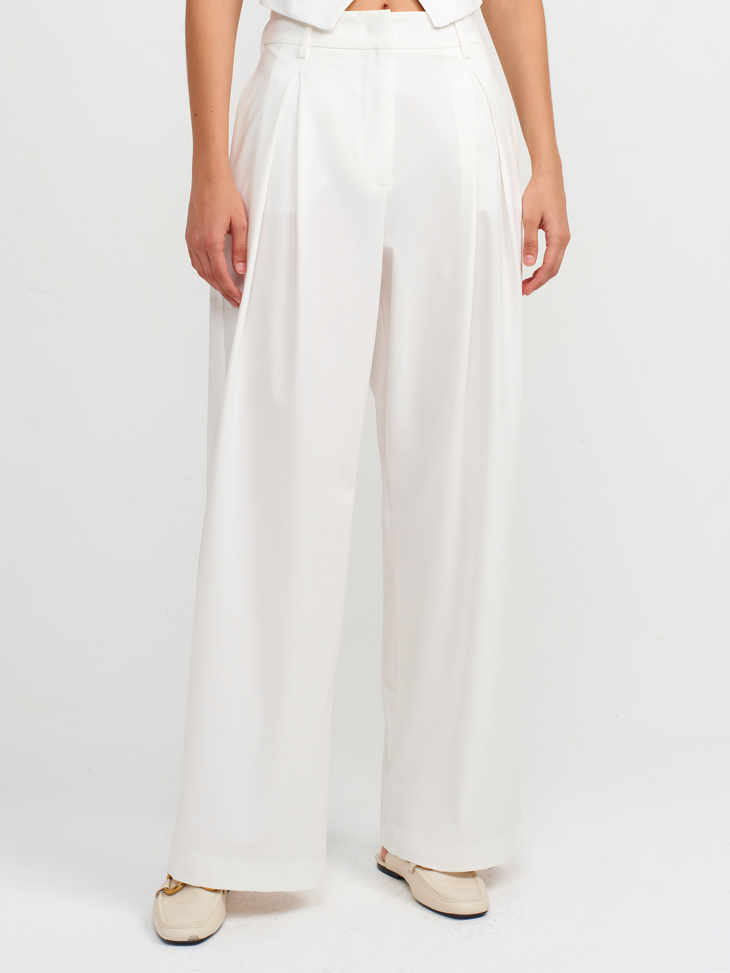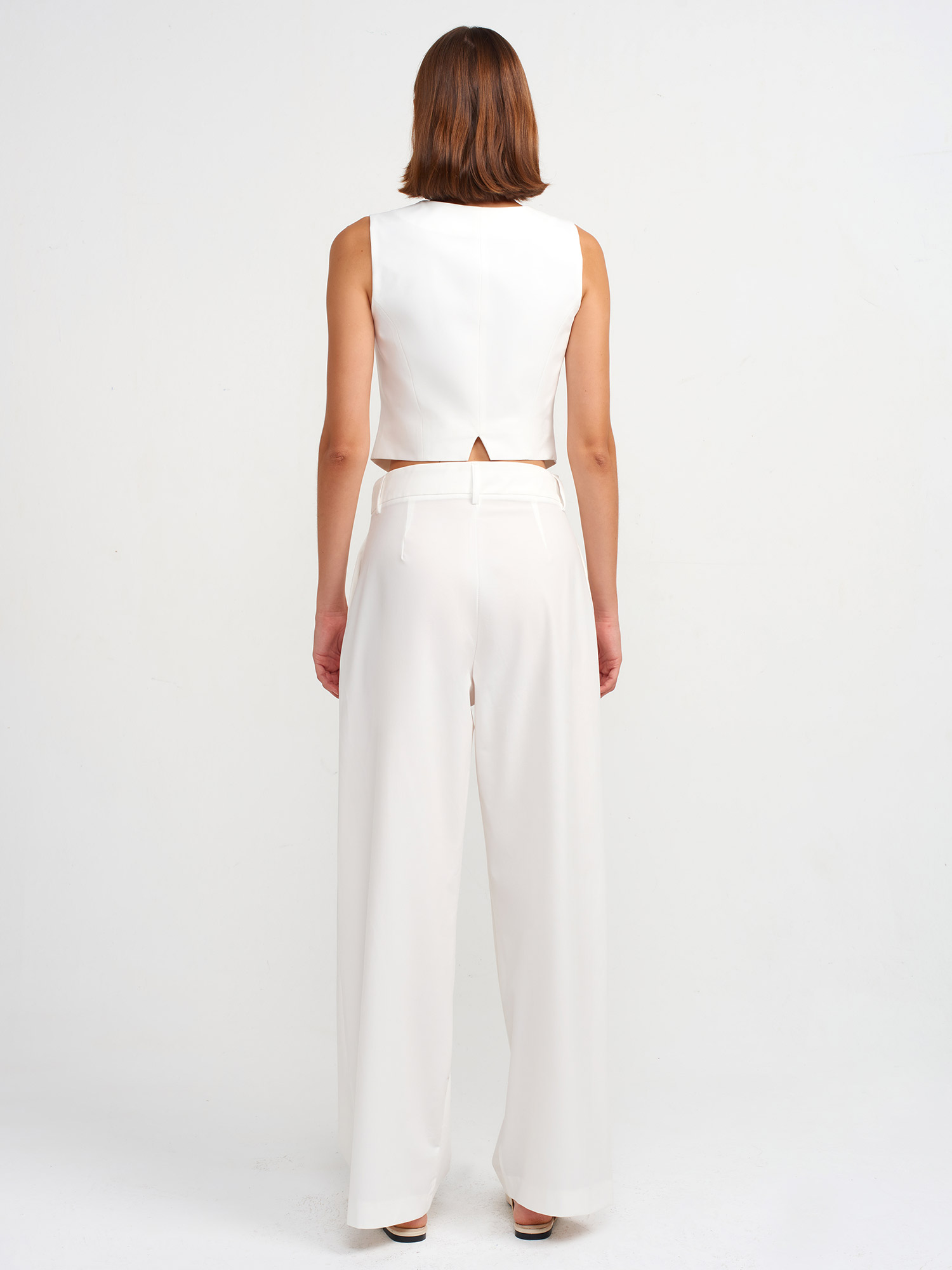 71540 Özel Dikim Geniş Paça Pantolon-Beyaz