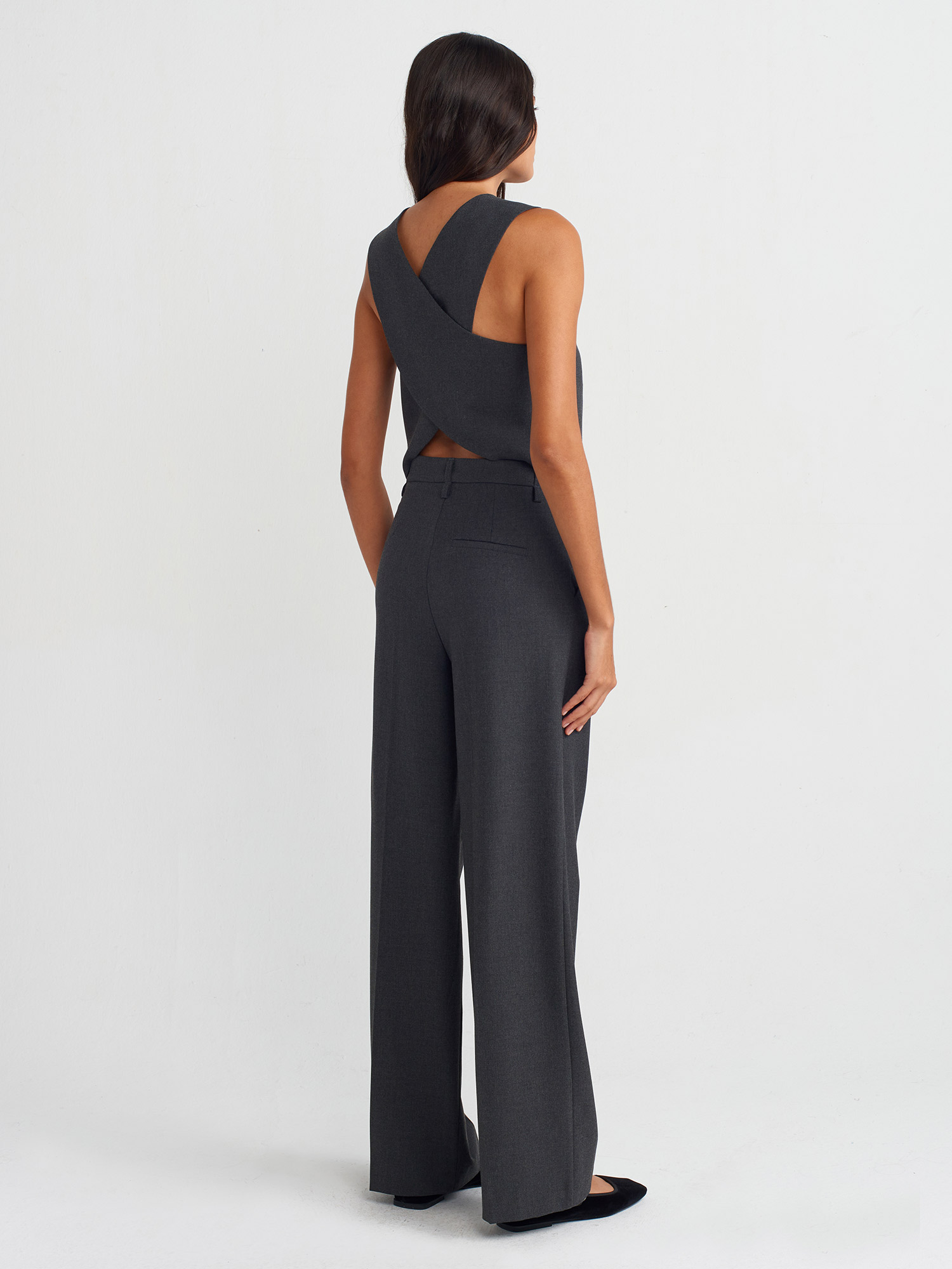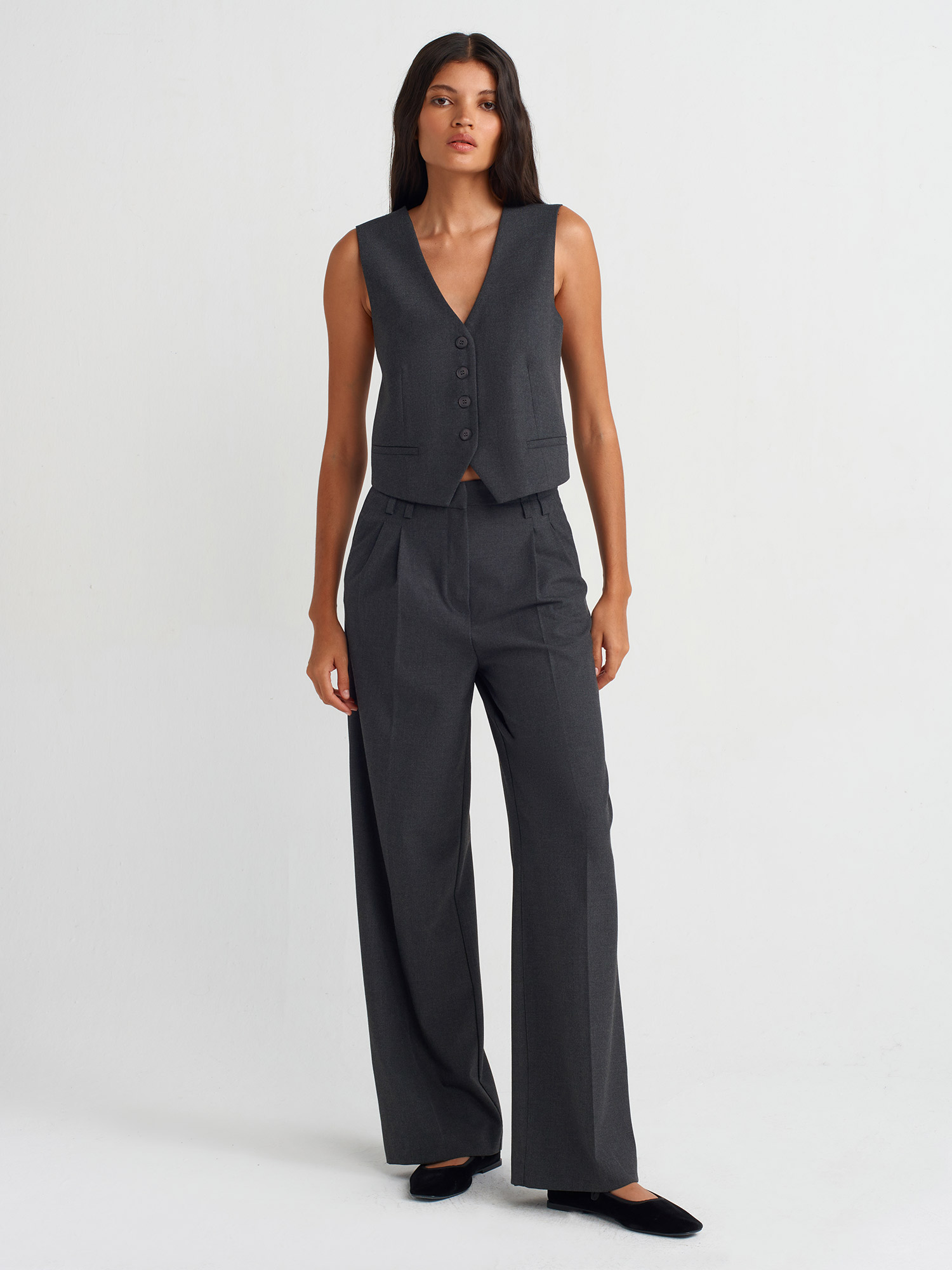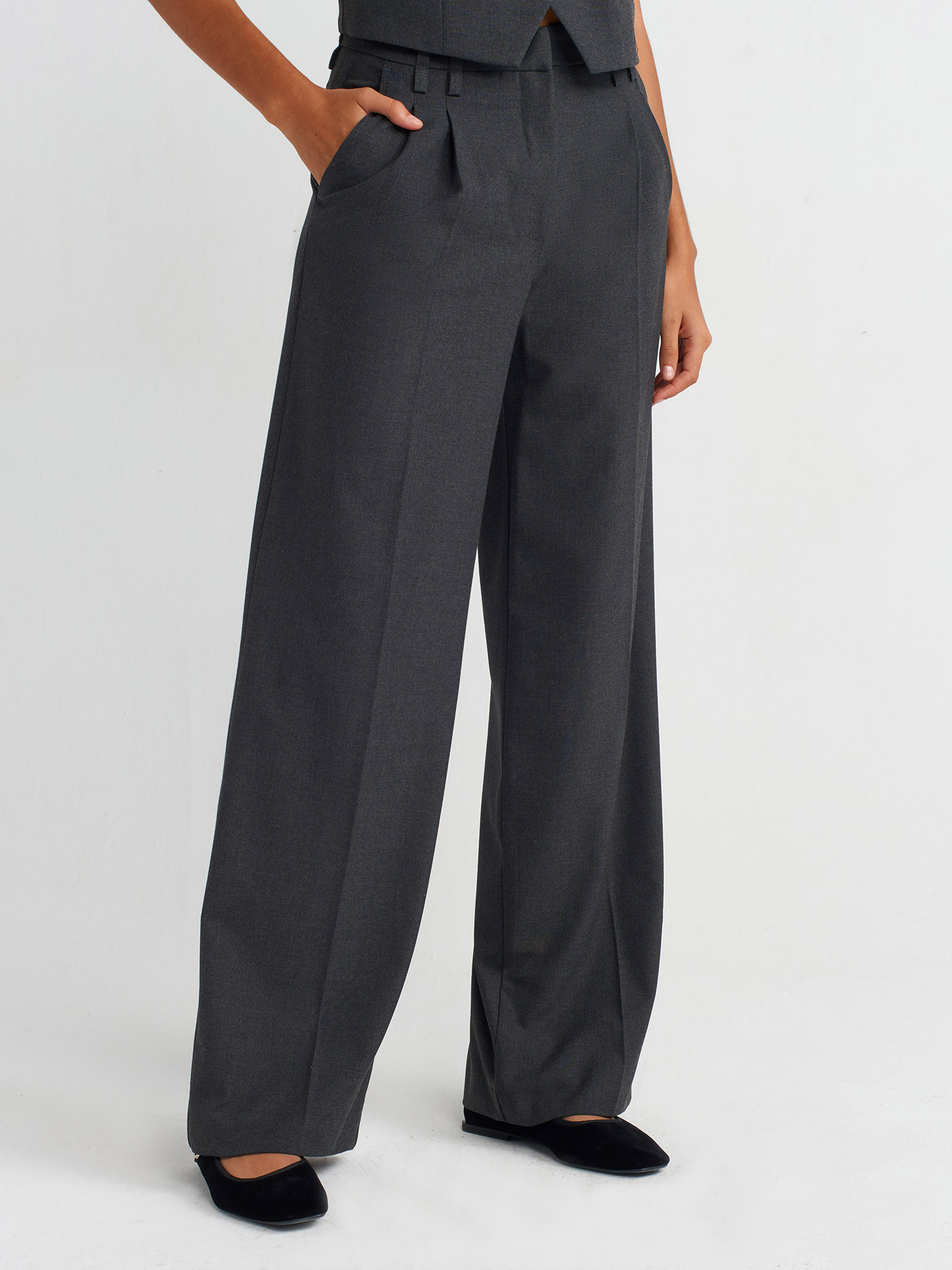 71545 Geniş Paça Dökümlü Pantolon-Antrasit