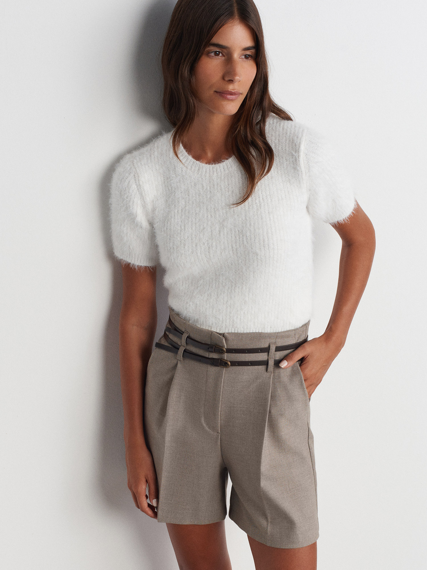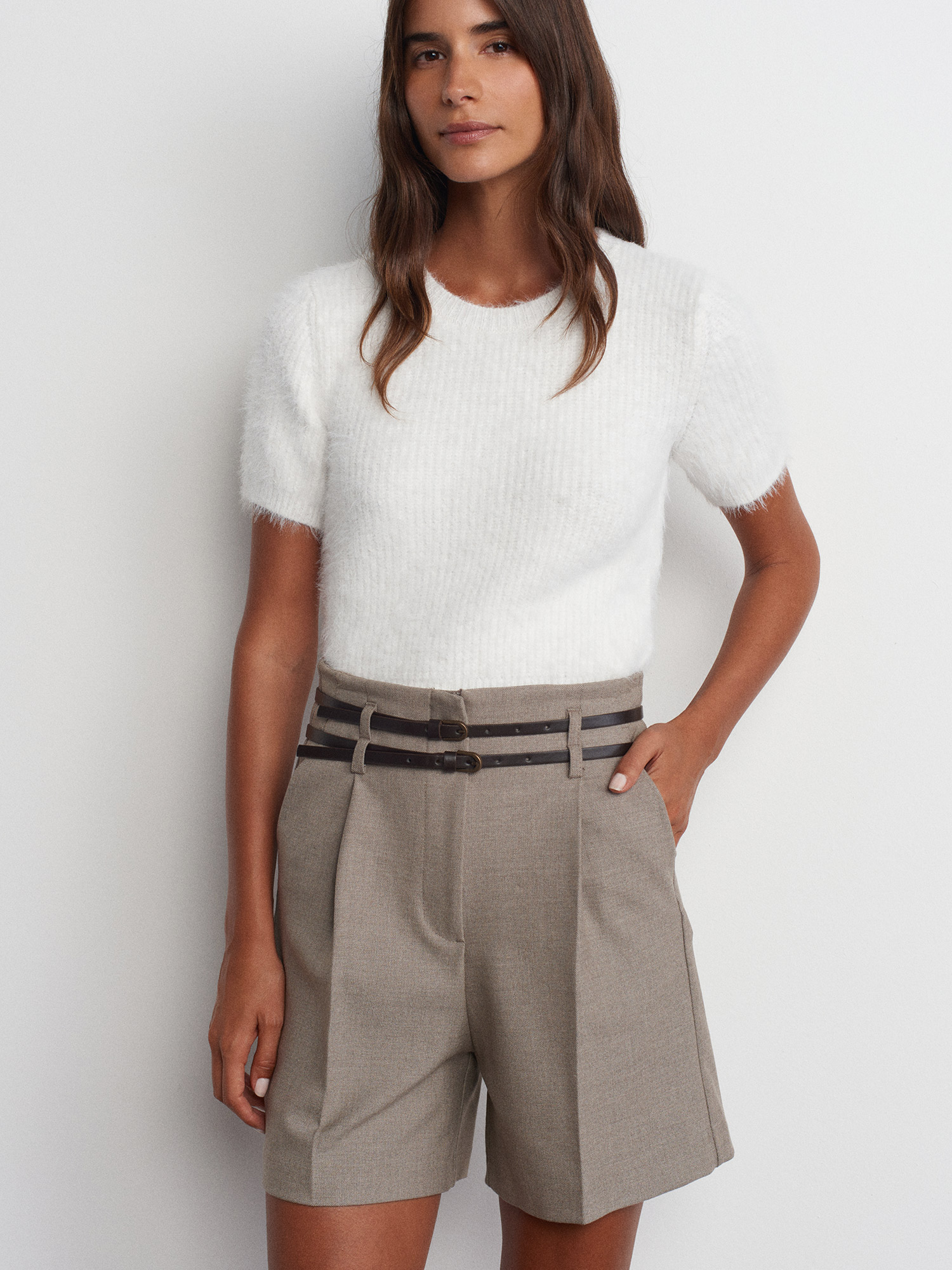 71563 Kemerli Yüksek Bel Şort-Camel