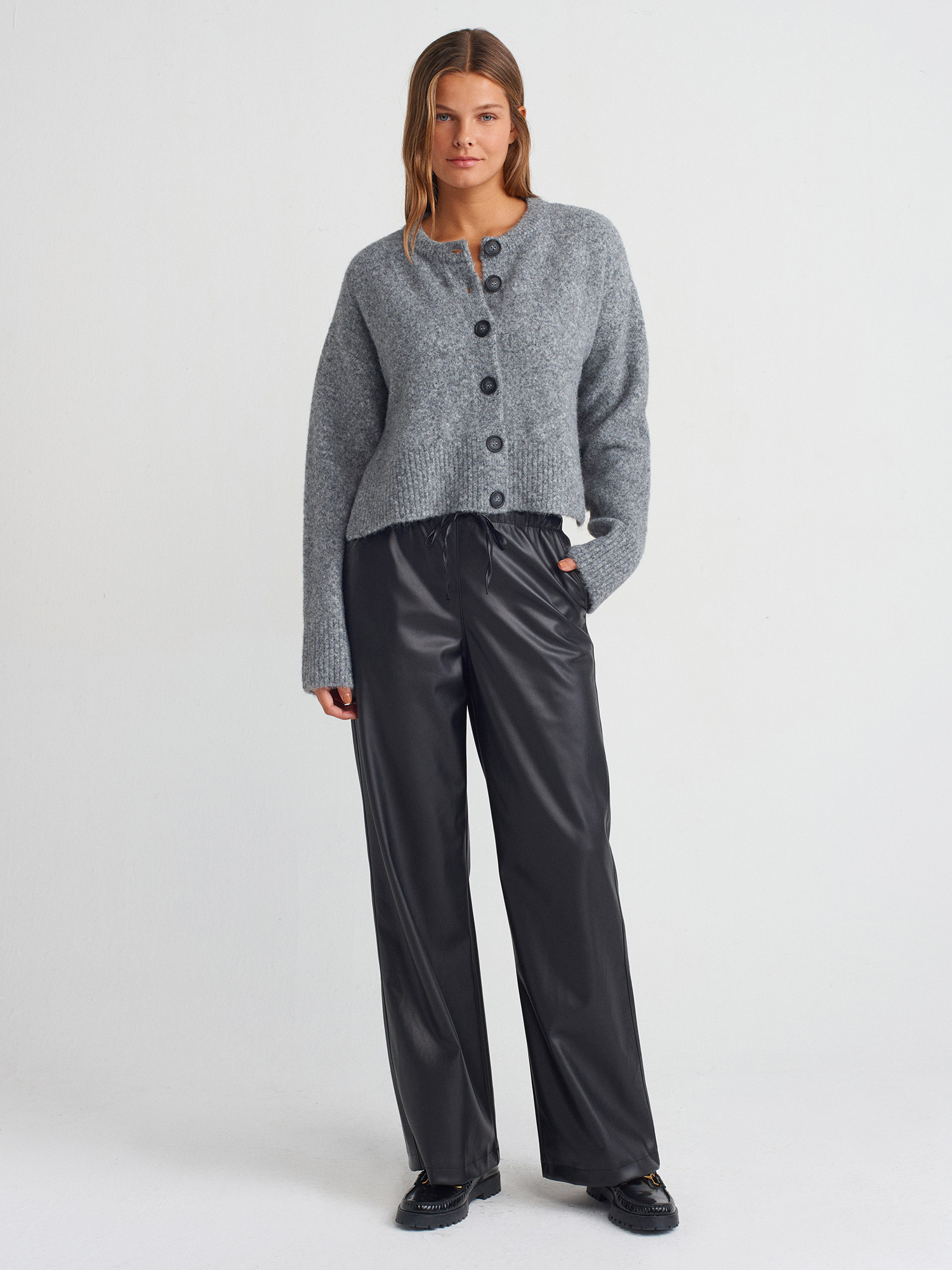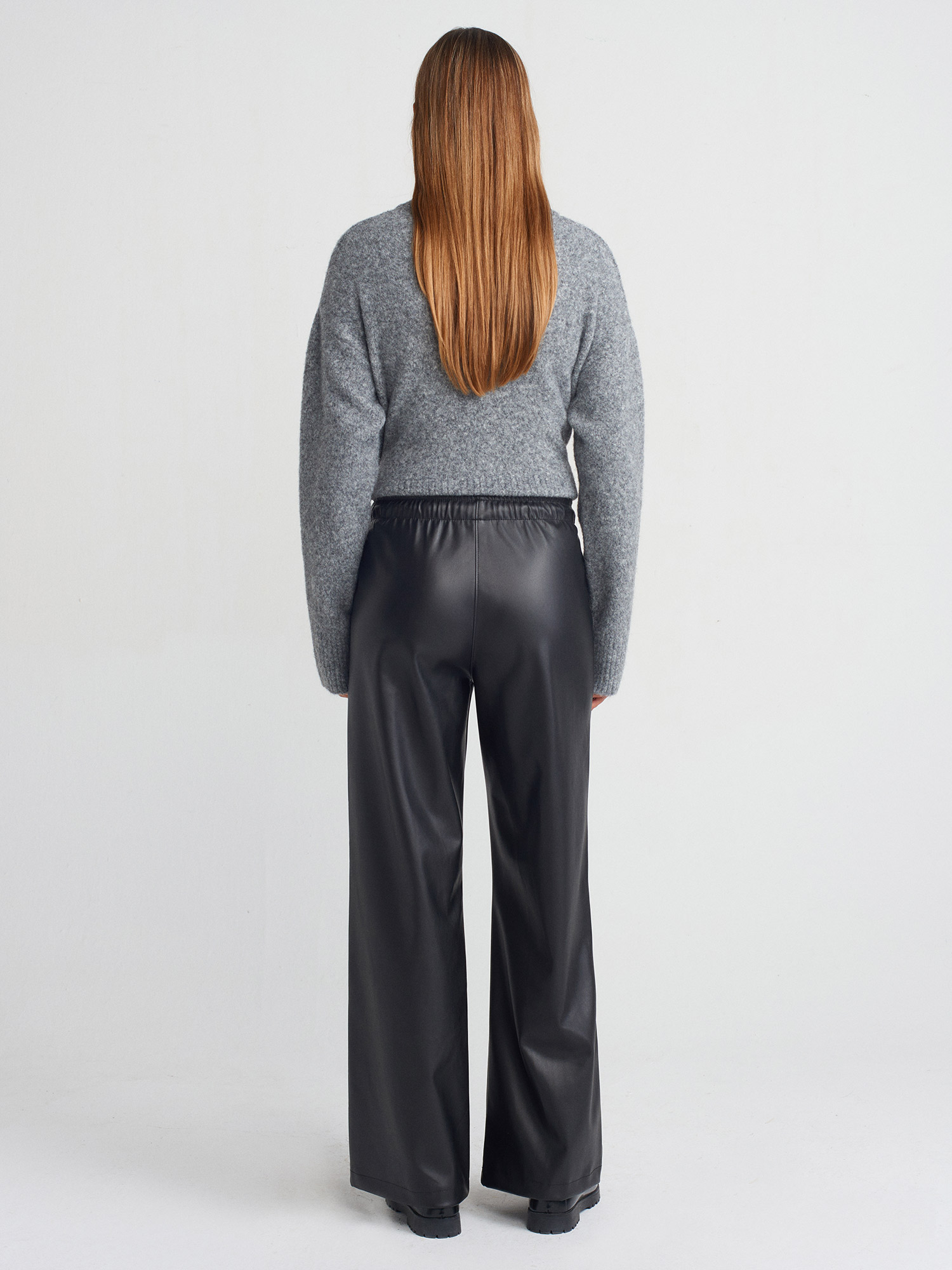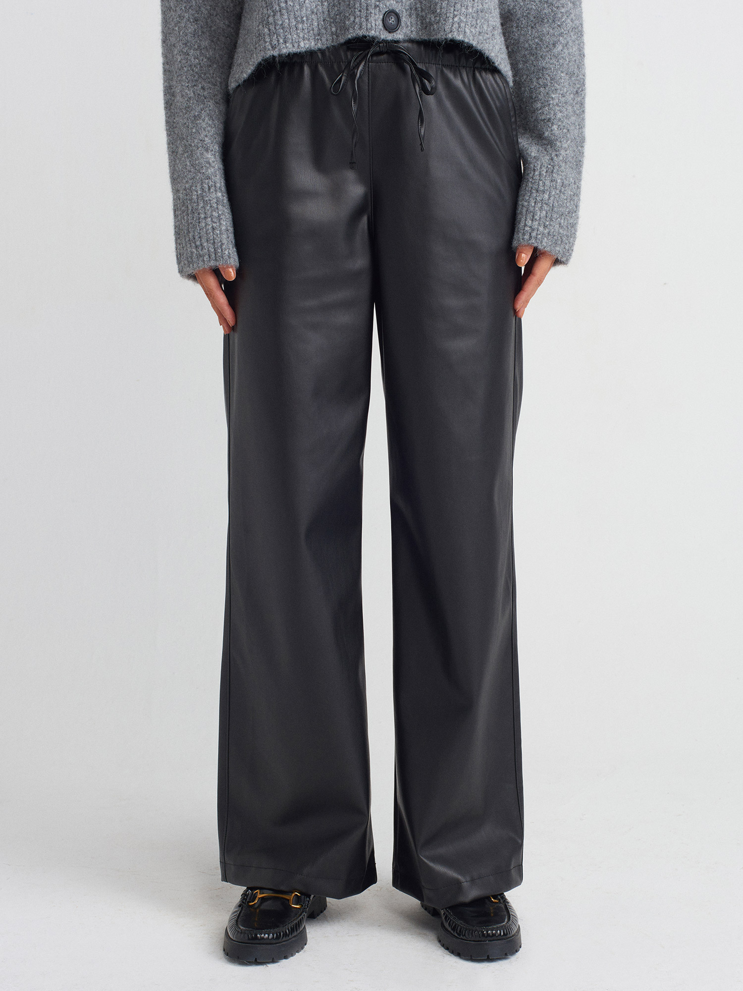 71567 Uzun Şık Suni Deri Pantolon-Siyah