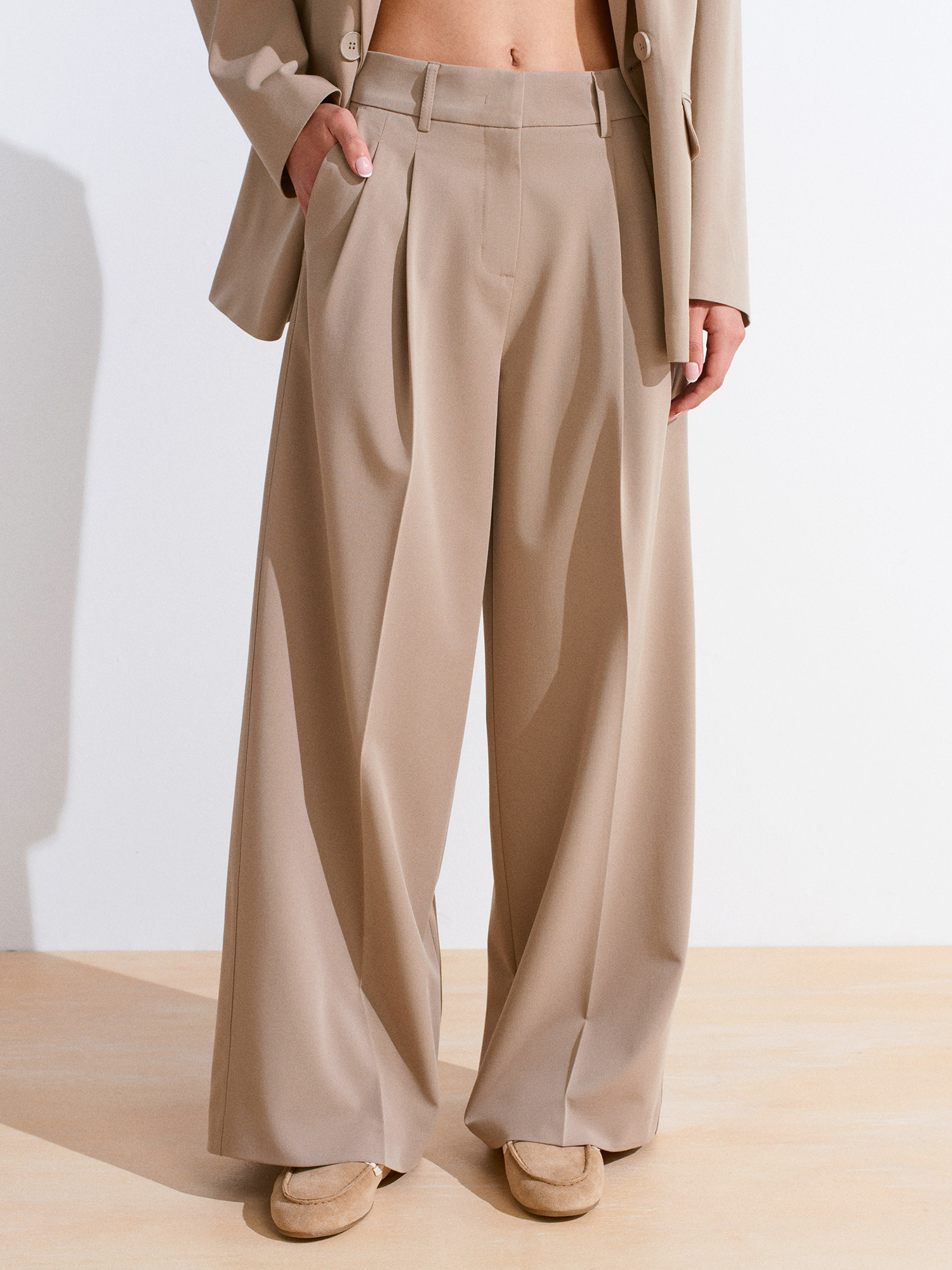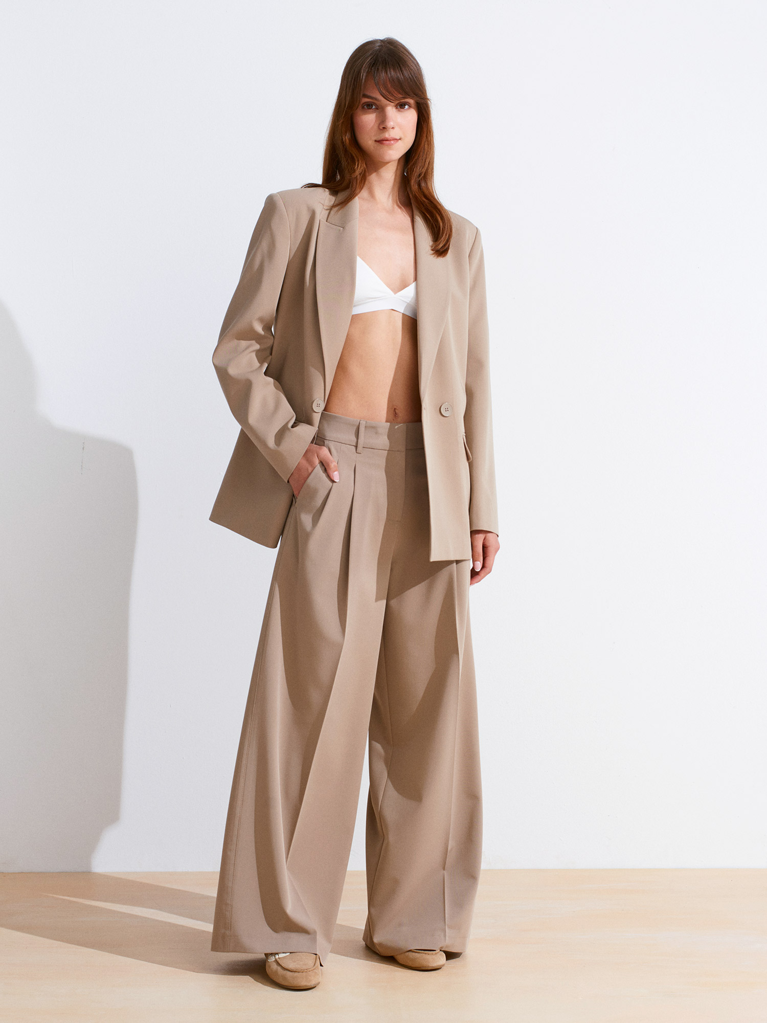 71606 Ekstra Geniş Paça Ayarlanabilir Pantolon-Bej