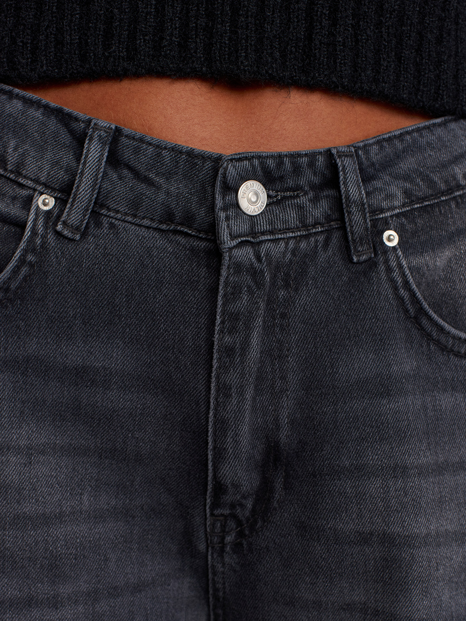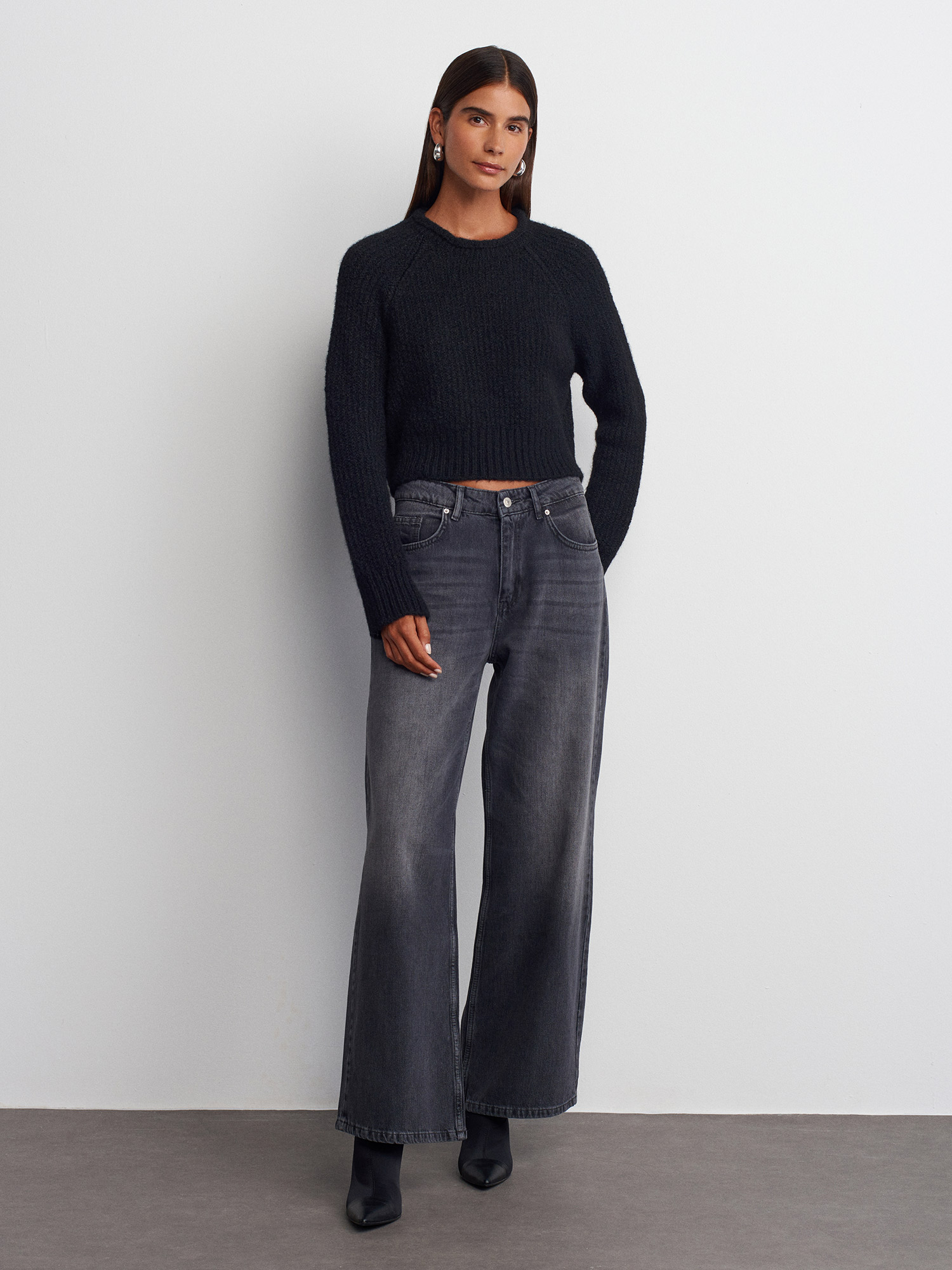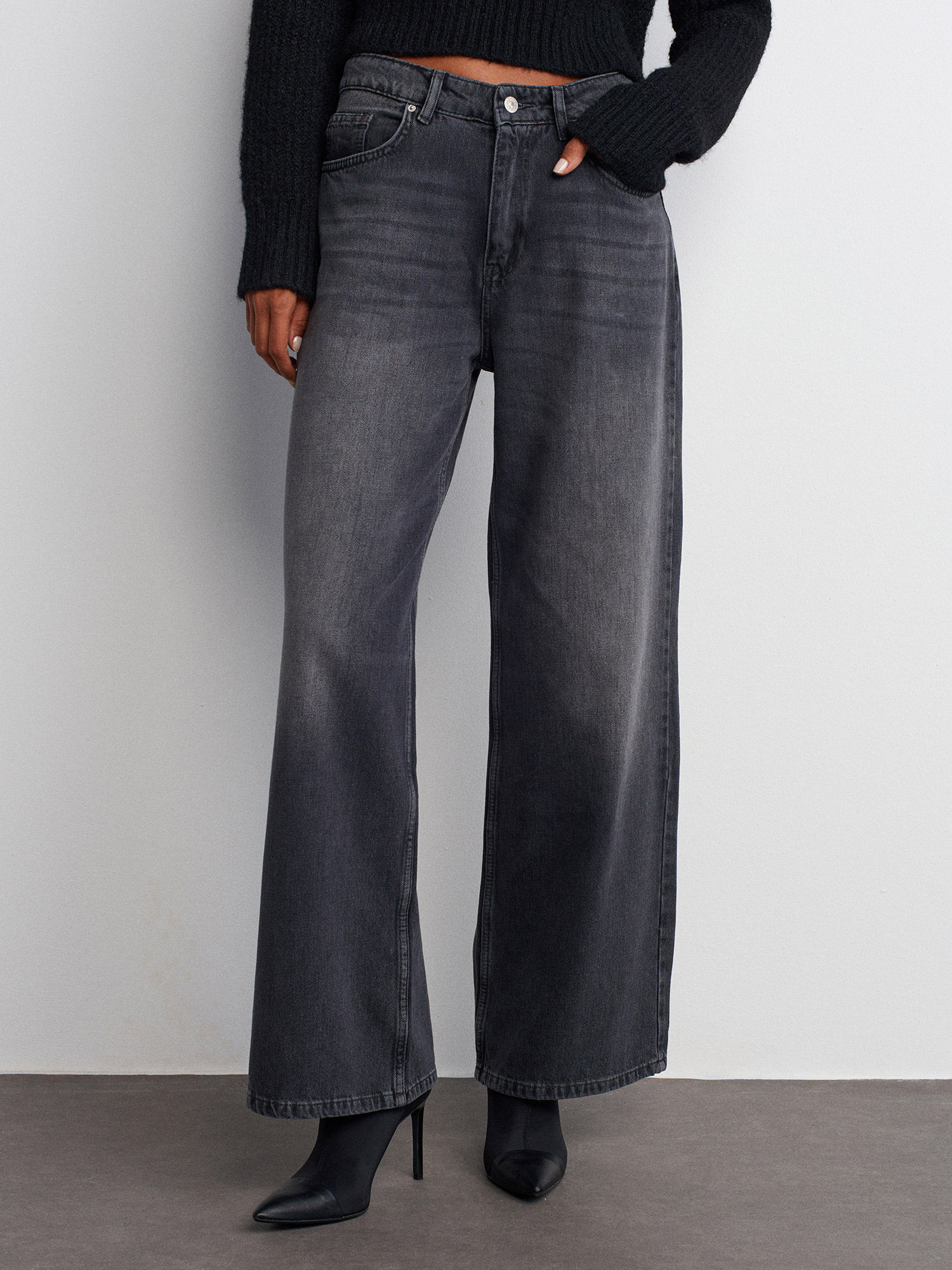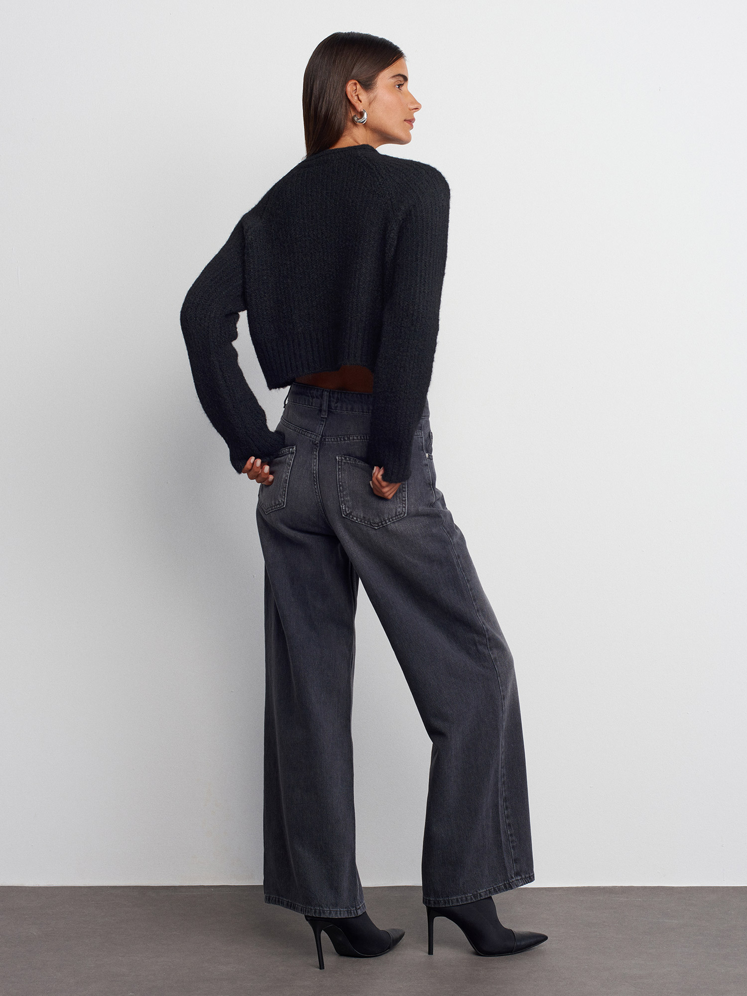 71720 Lazer Yıkama Geniş Denim Pantolon-Siyah