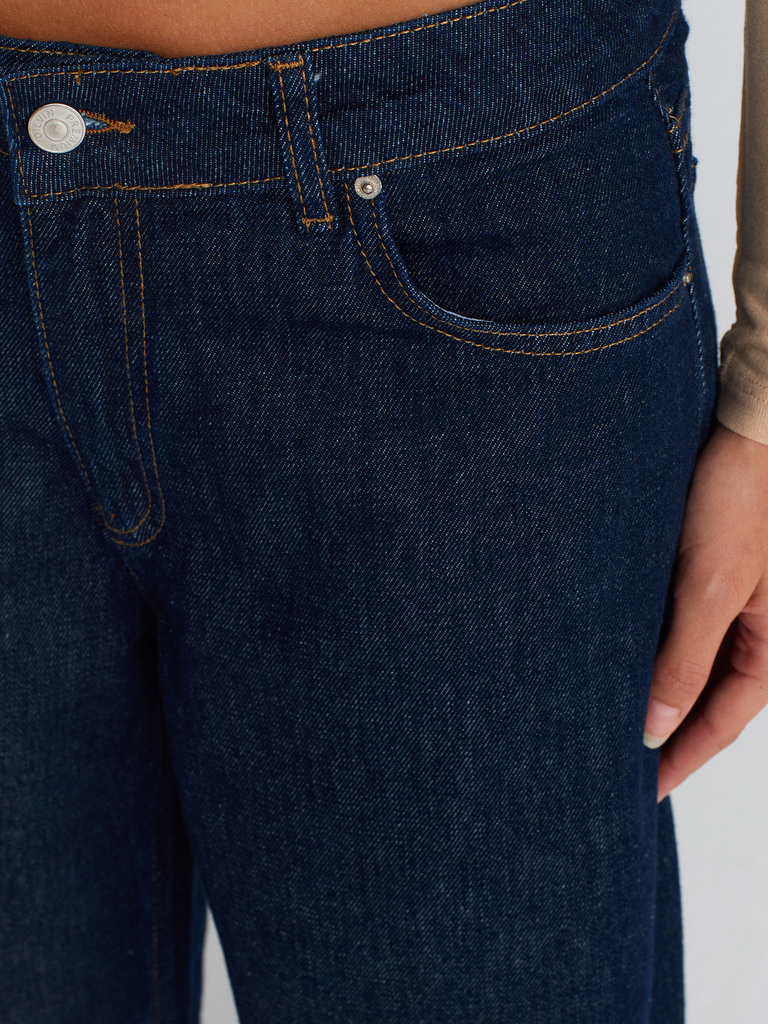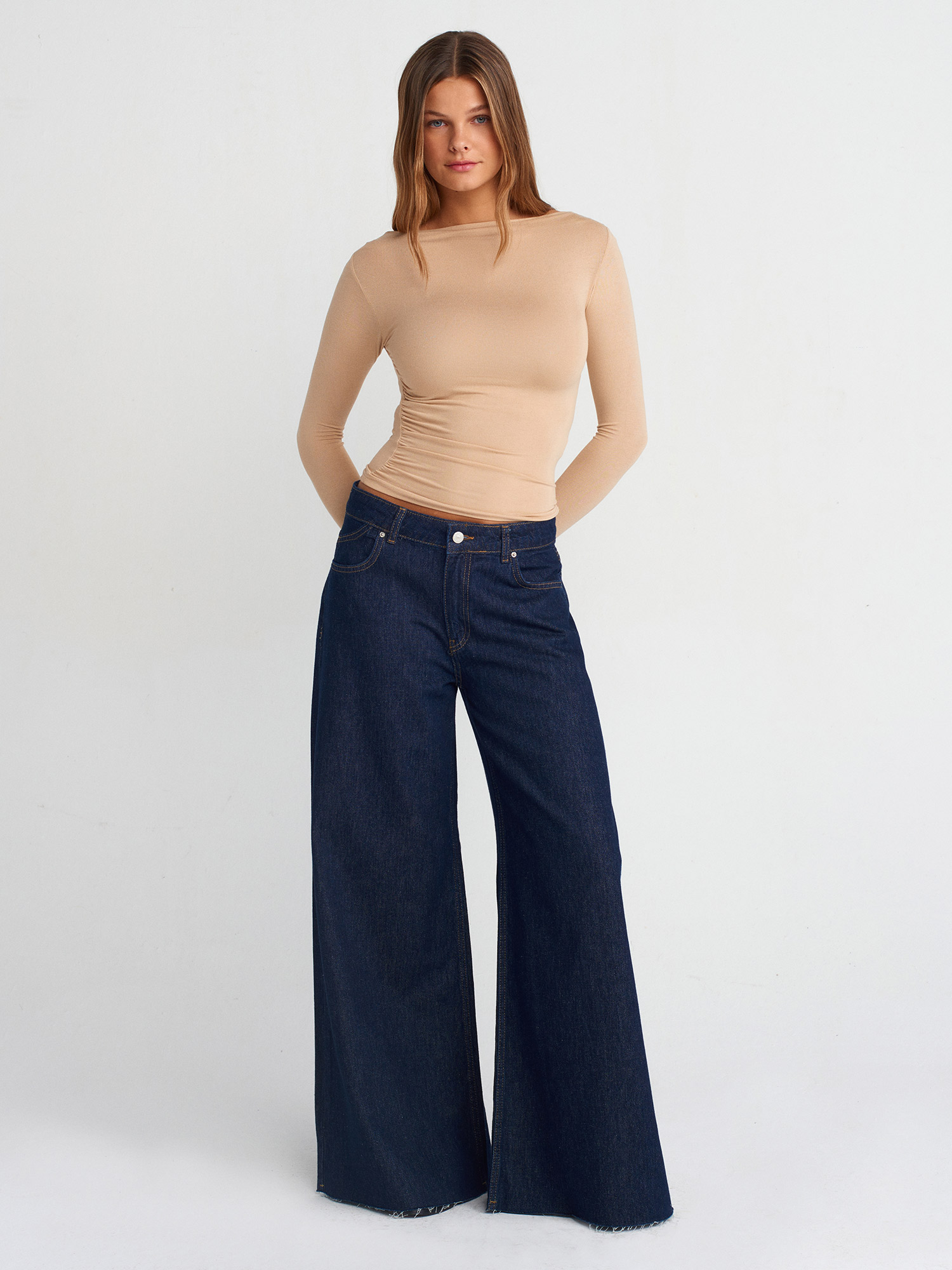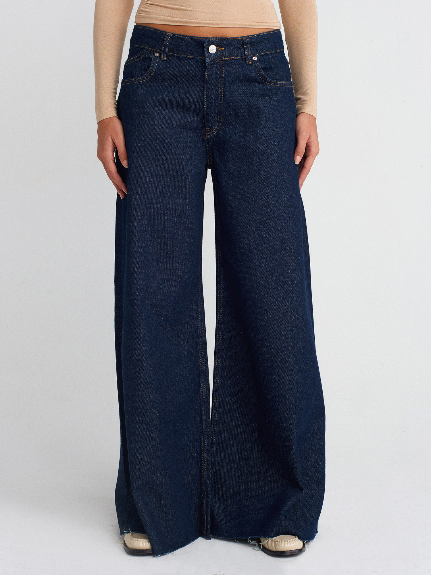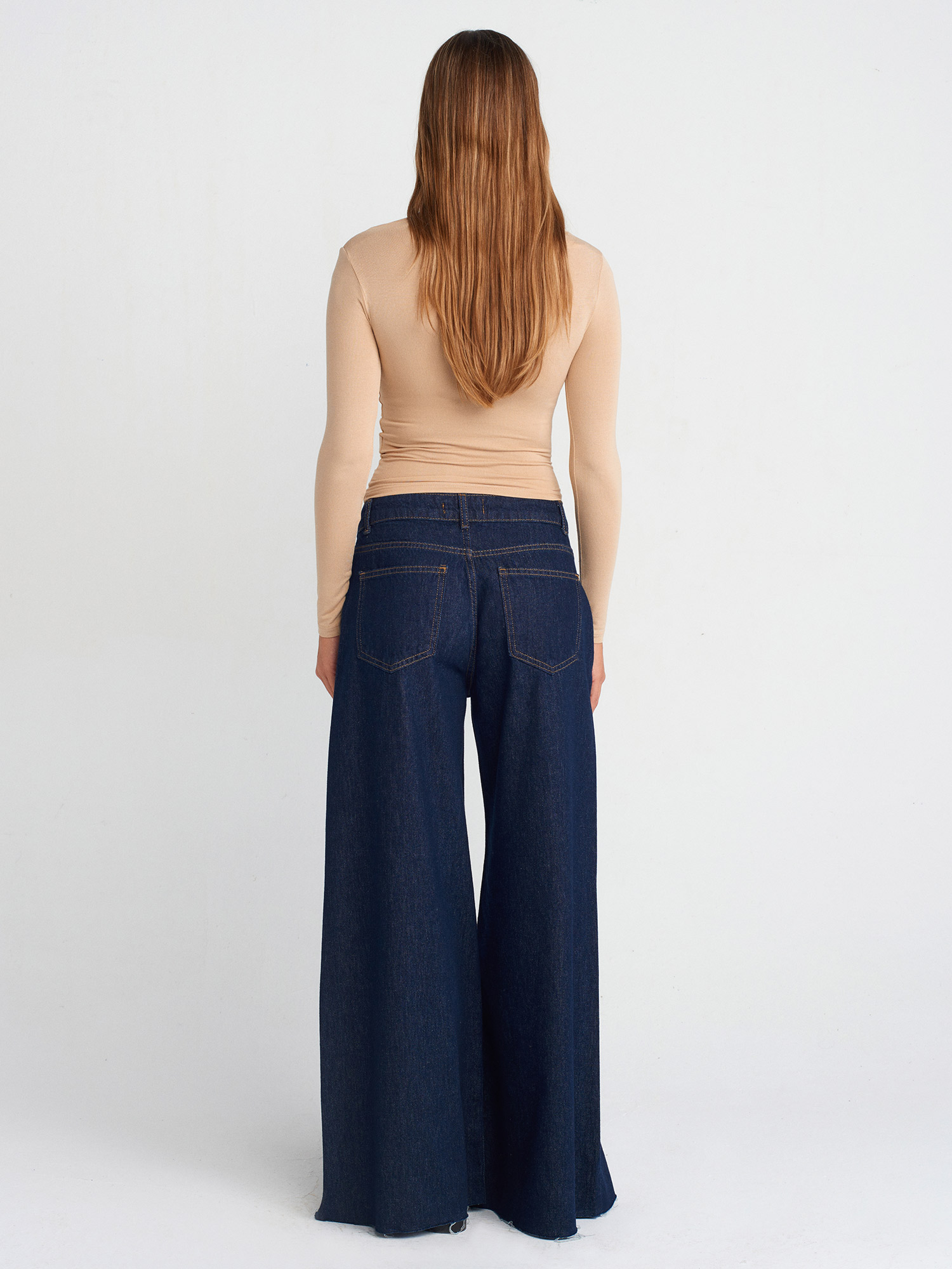 71744 Paçası Dikişsiz Culotte Denim Pantolon-Lacivert