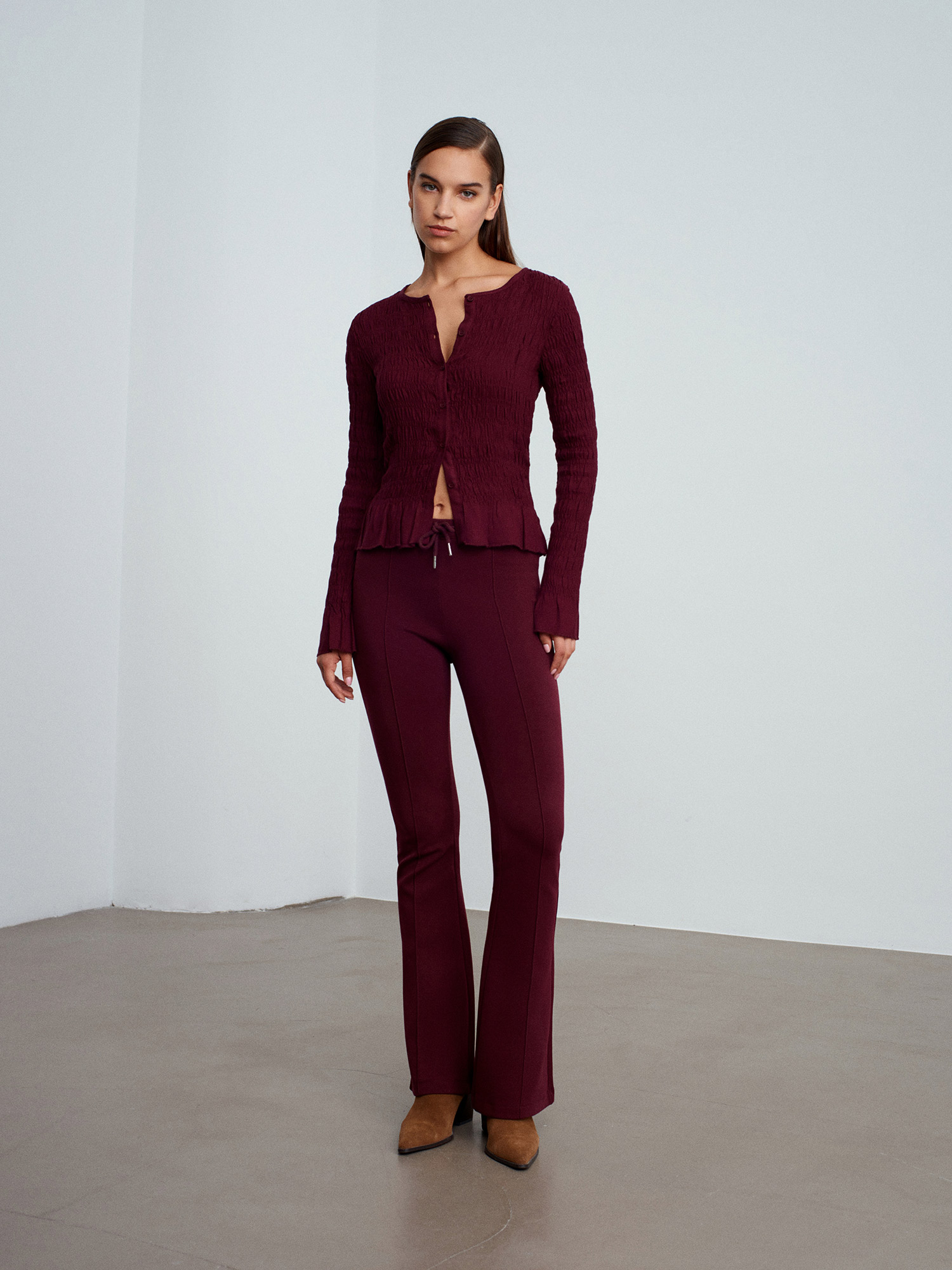 71891 Beli Lastikli İspanyol Paça Eşofman-Bordo