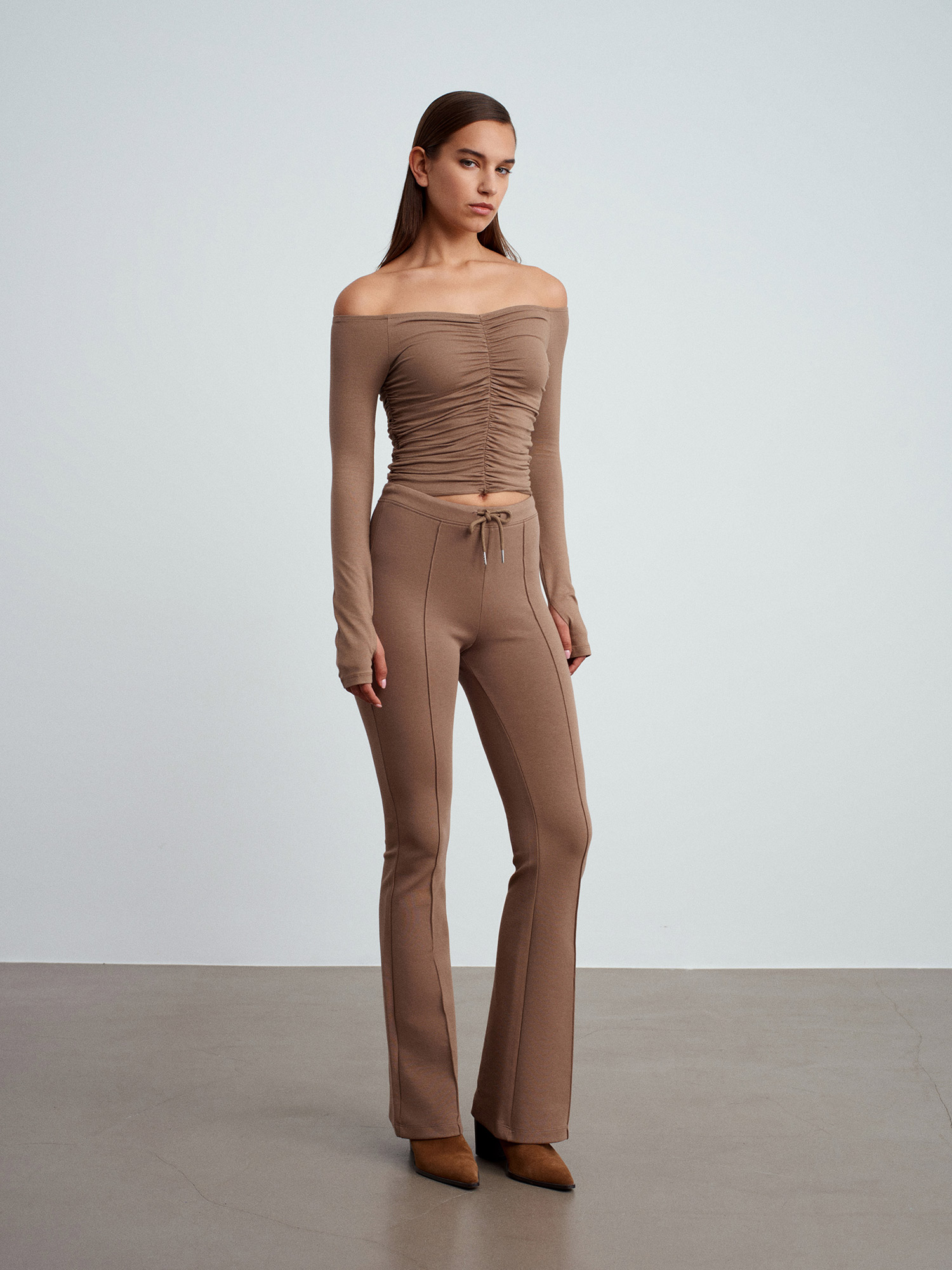 71891 Beli Lastikli İspanyol Paça Eşofman-Vizon