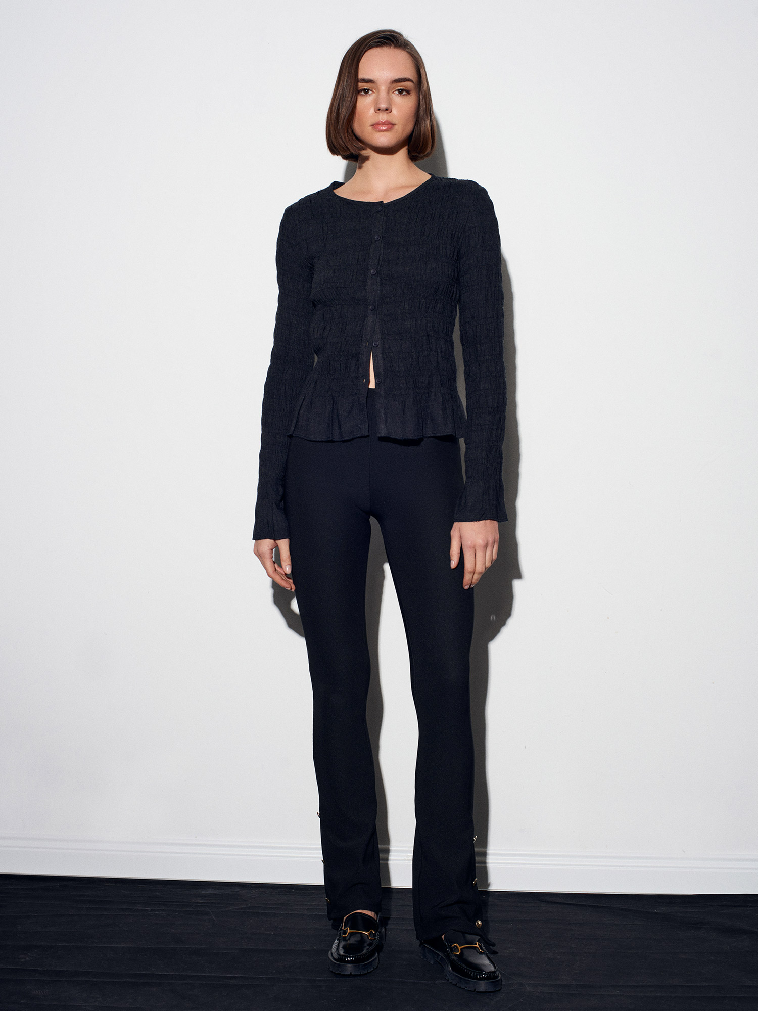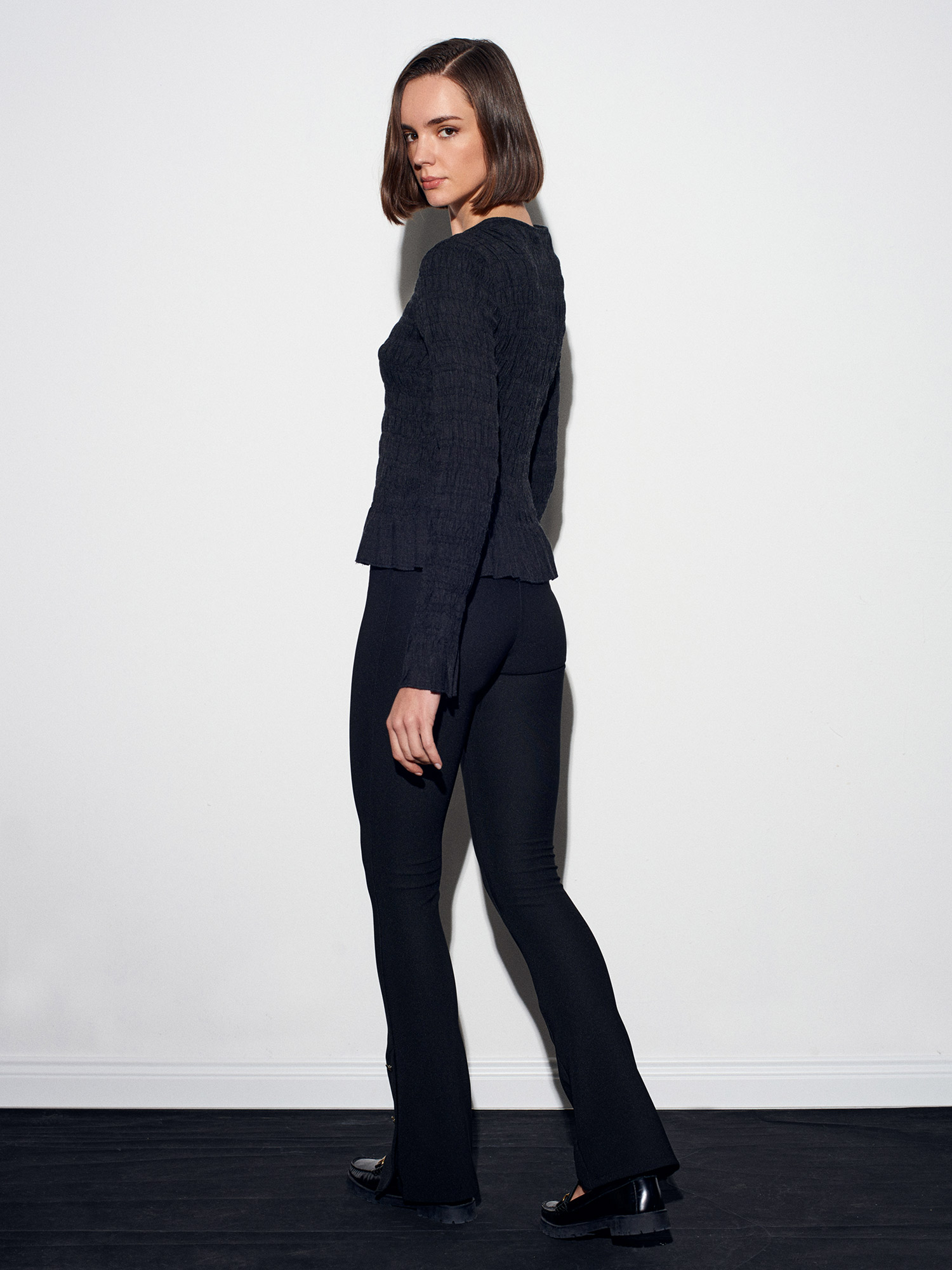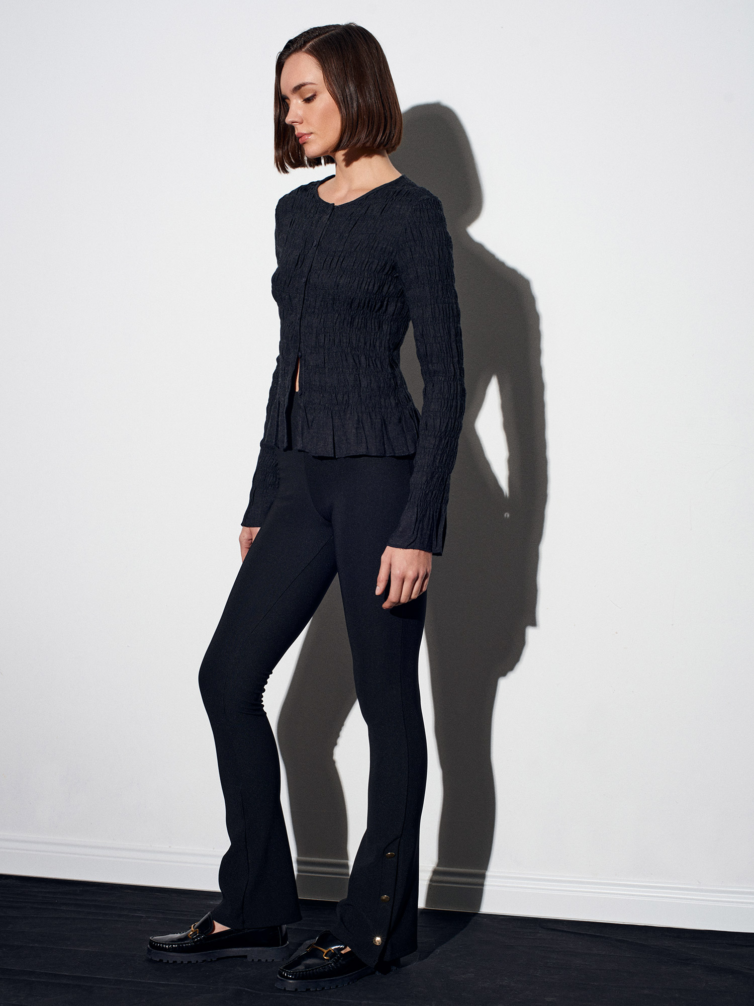 71905 Düğme Detaylı İspanyol Paça Tayt-Siyah