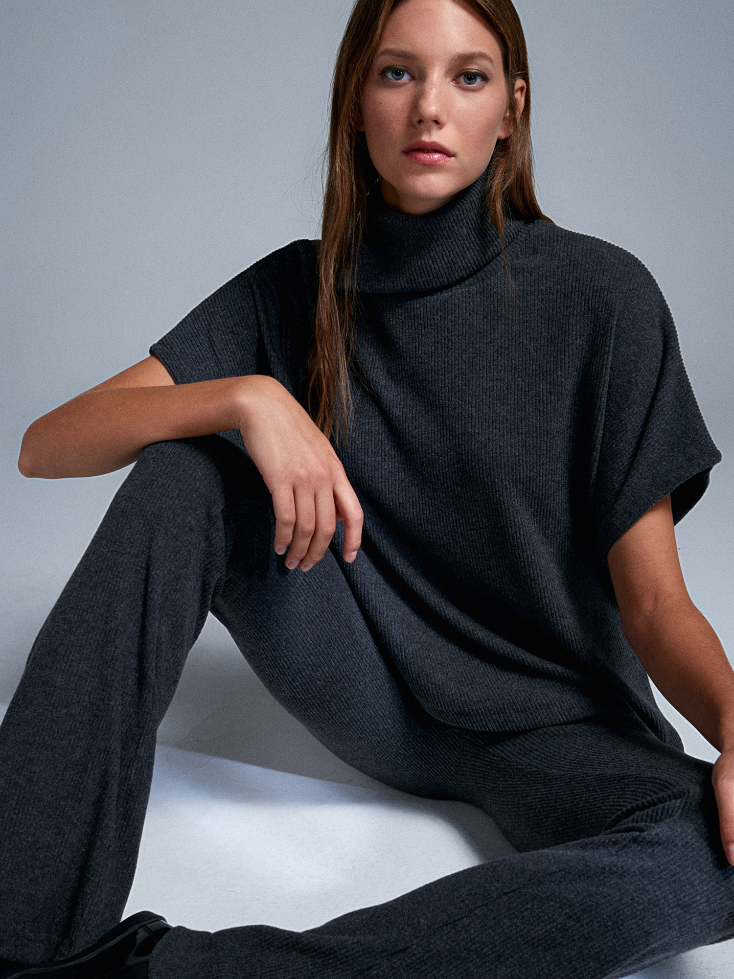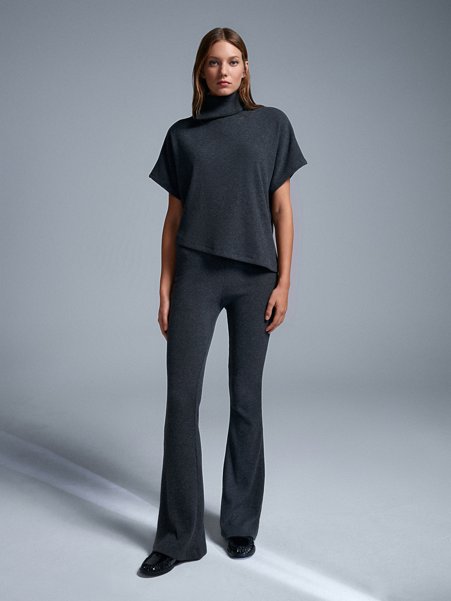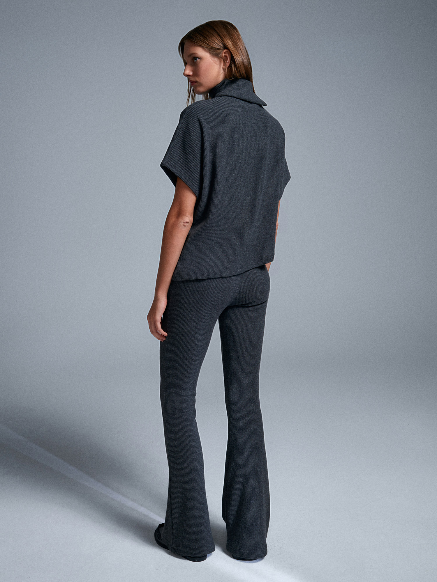 71910 Yüksek Bel Örme Pantolon-Antrasit