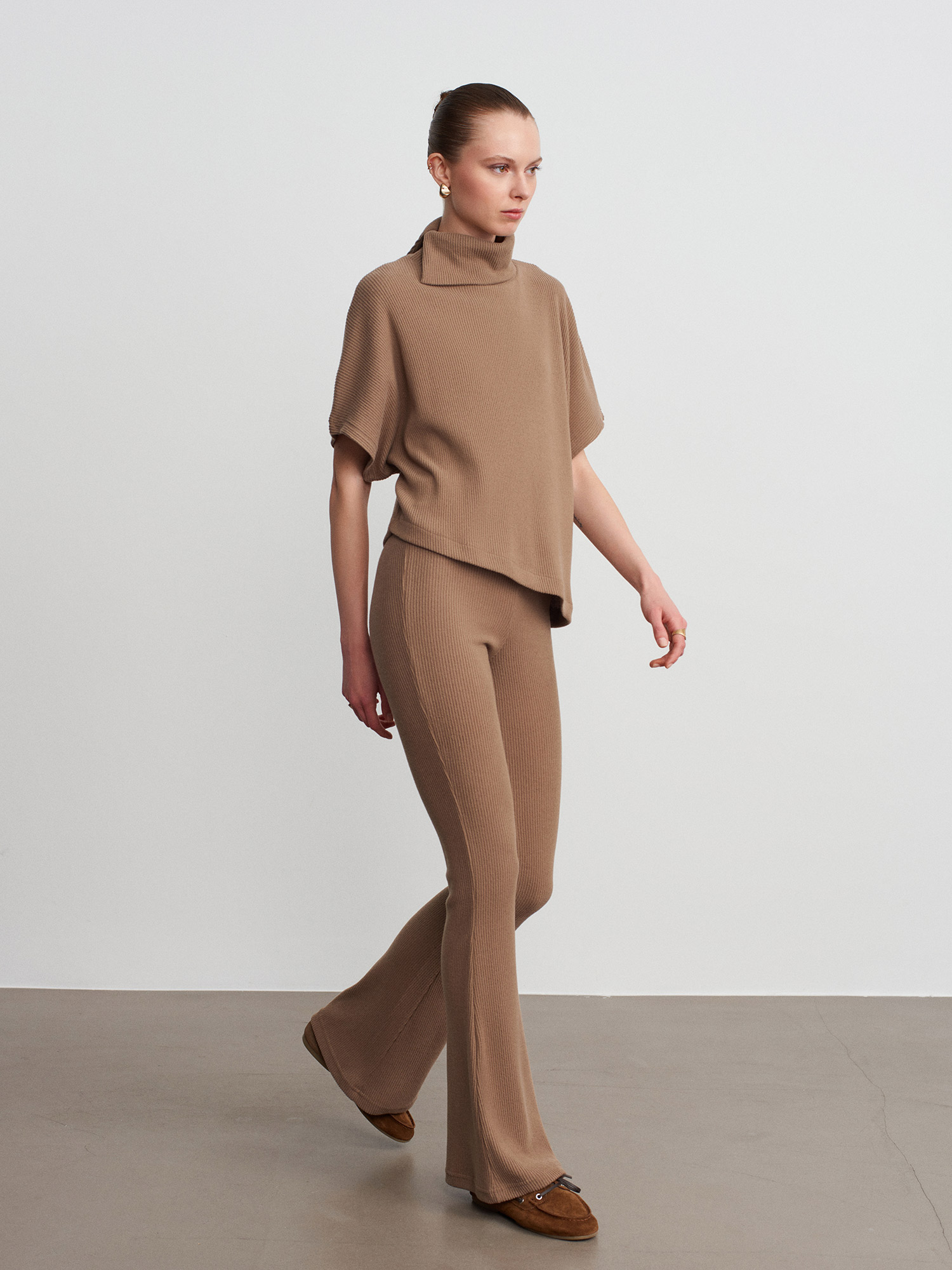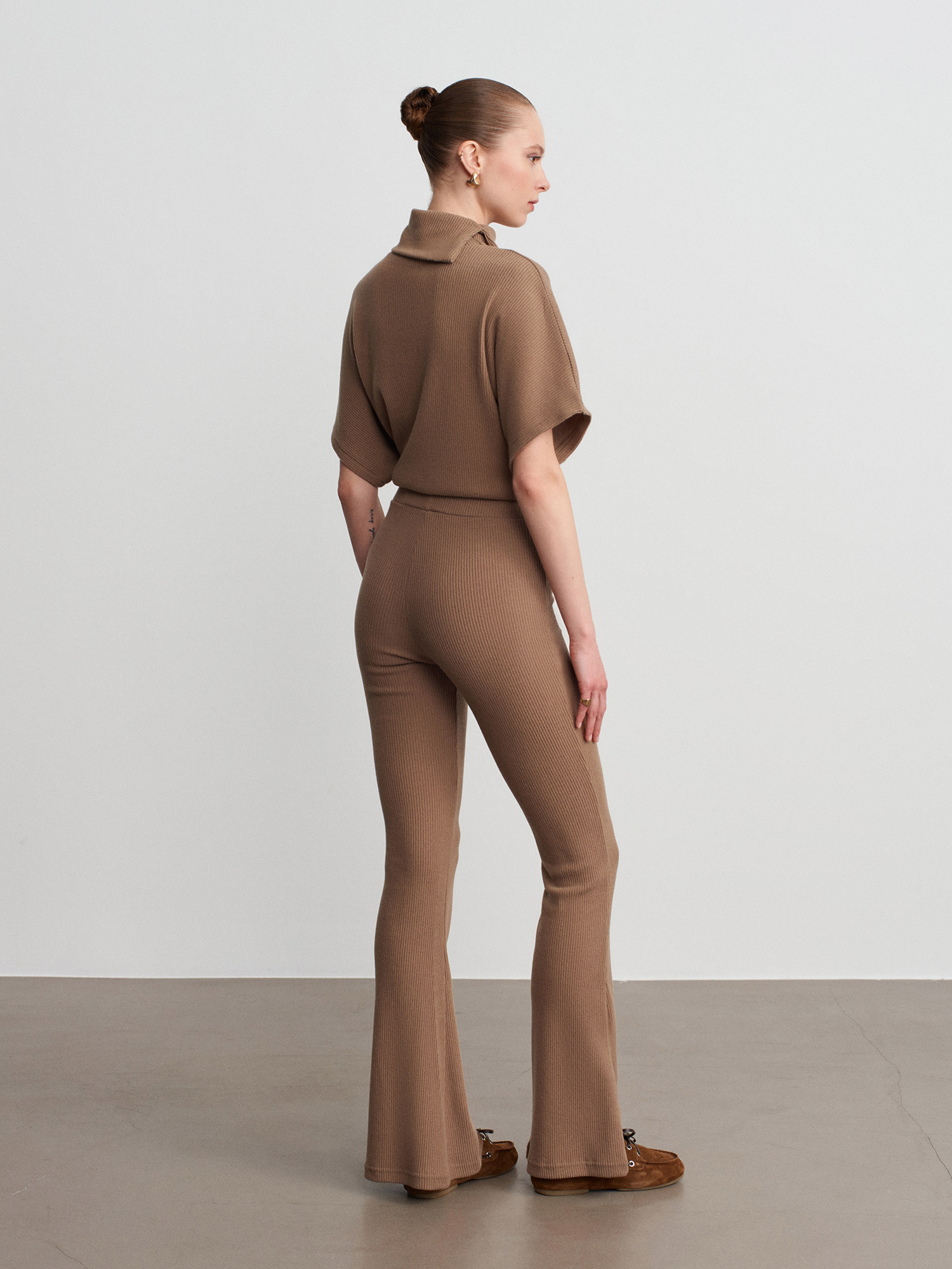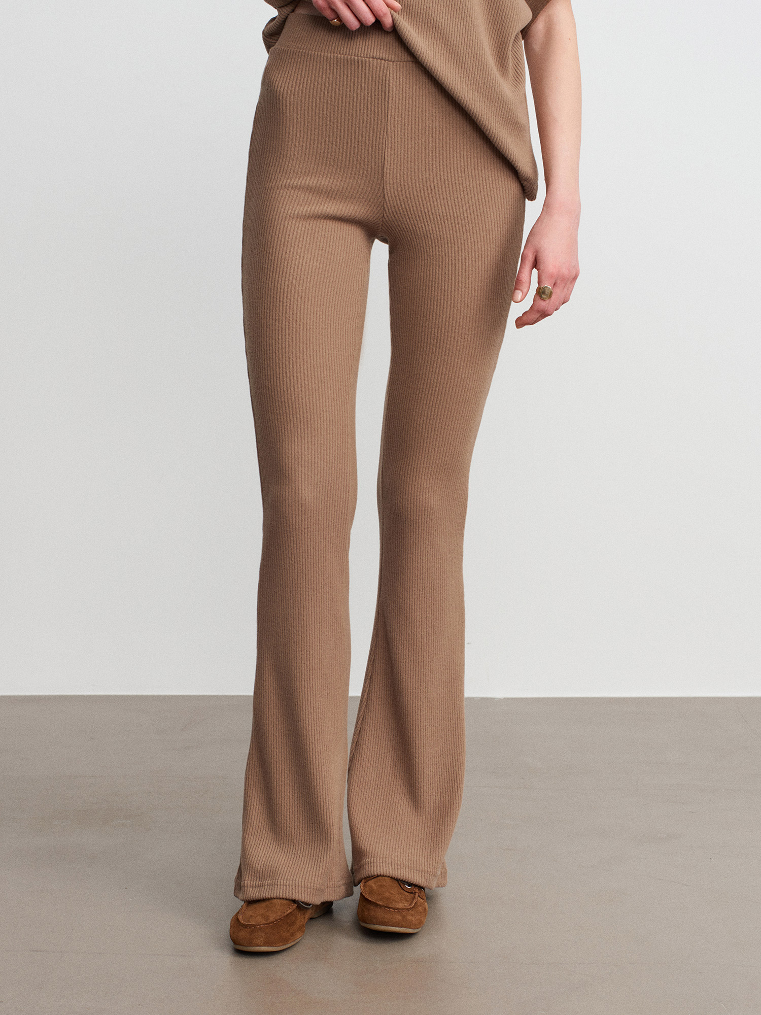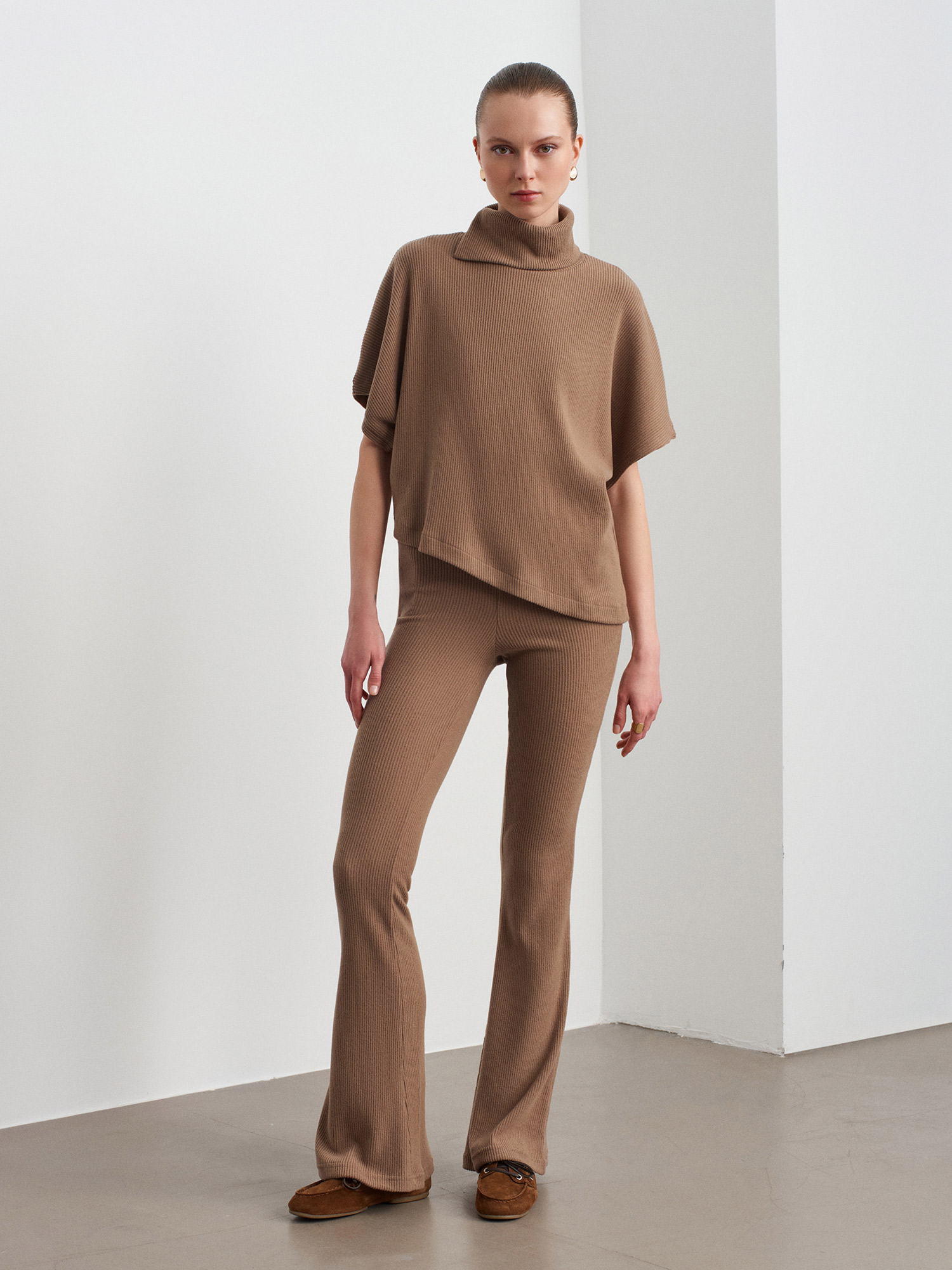 71910 Yüksek Bel Örme Pantolon-Vizon