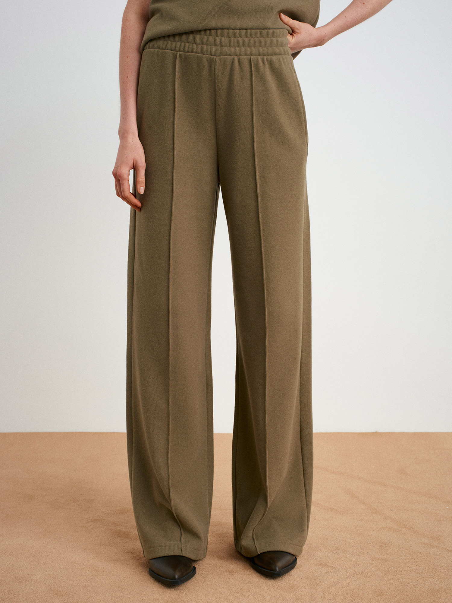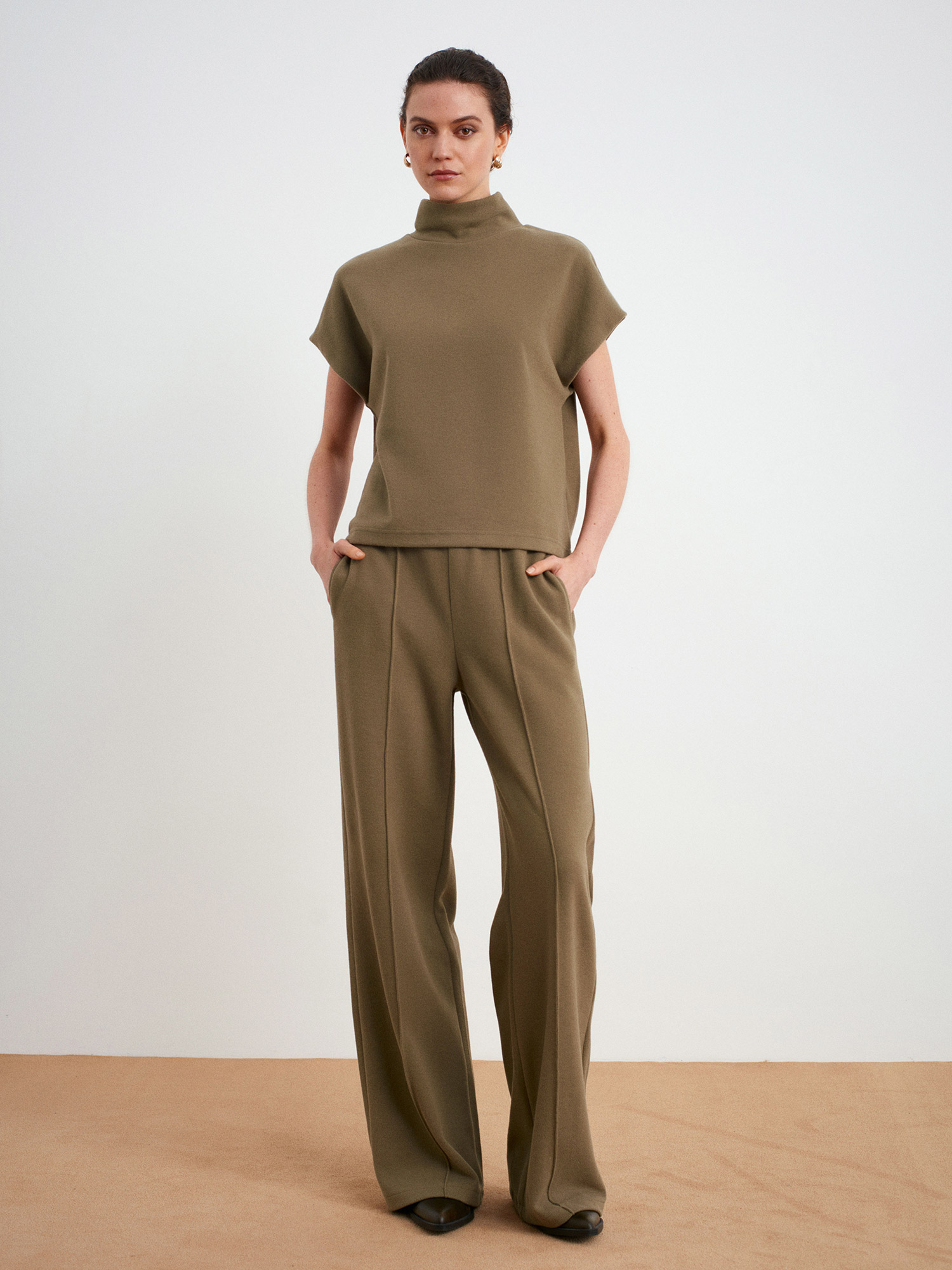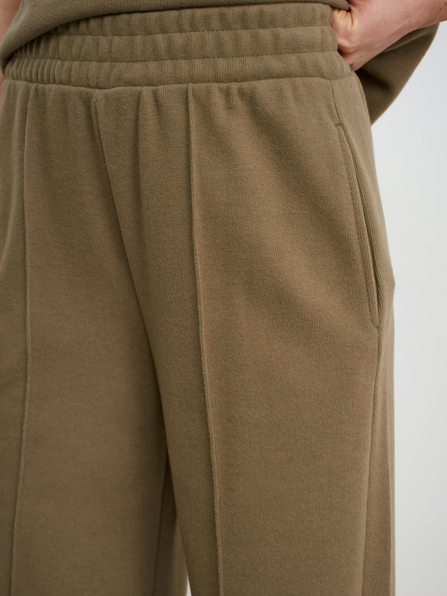 71927 Beli Lastikli Dikiş Detaylı Bol Eşofman-Açık Haki