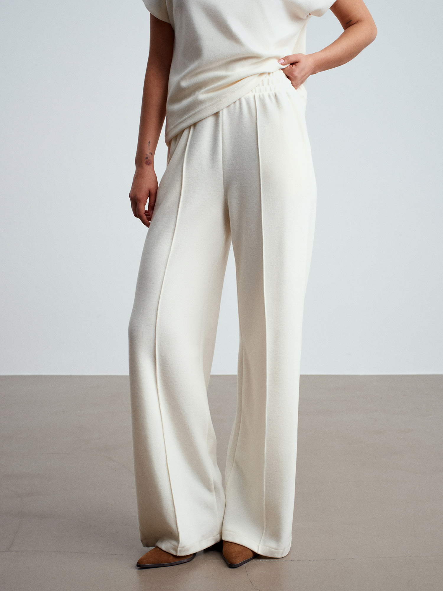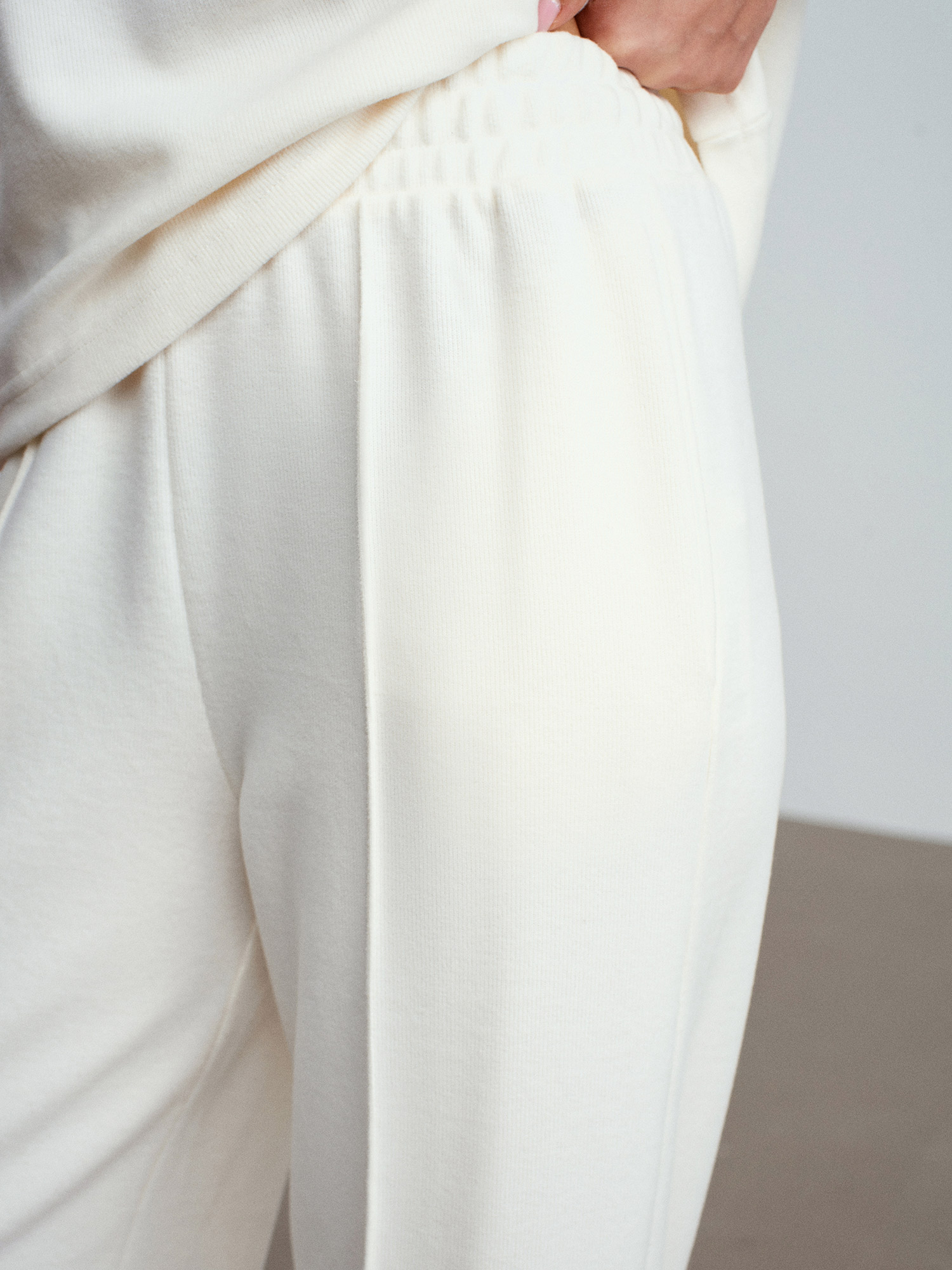 71927 Beli Lastikli Dikiş Detaylı Bol Eşofman-Ekru