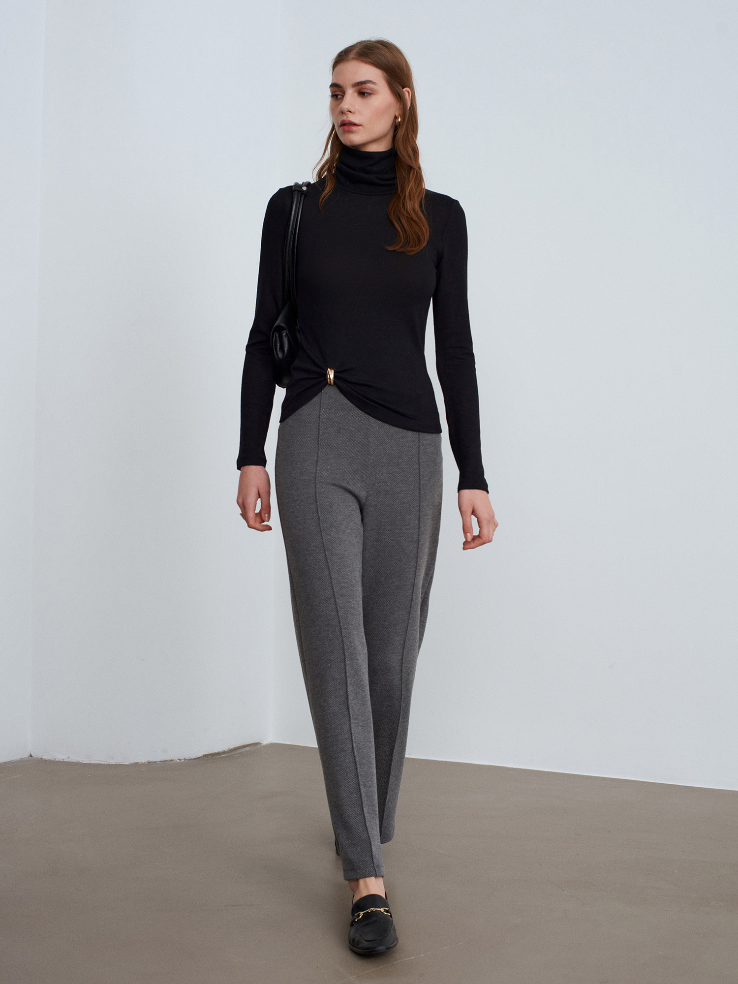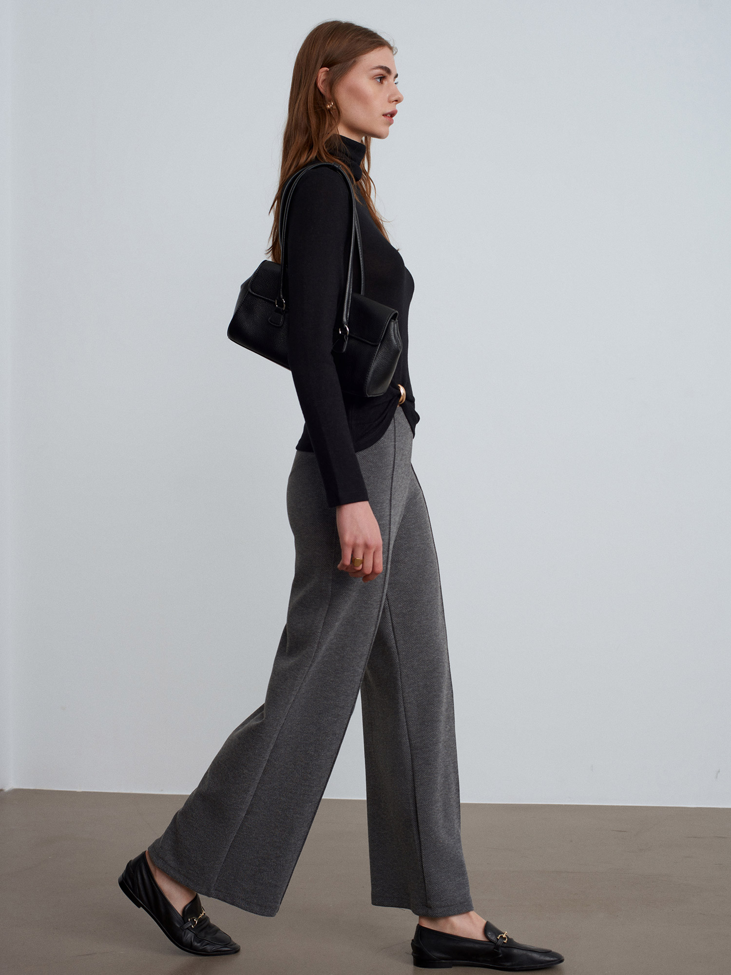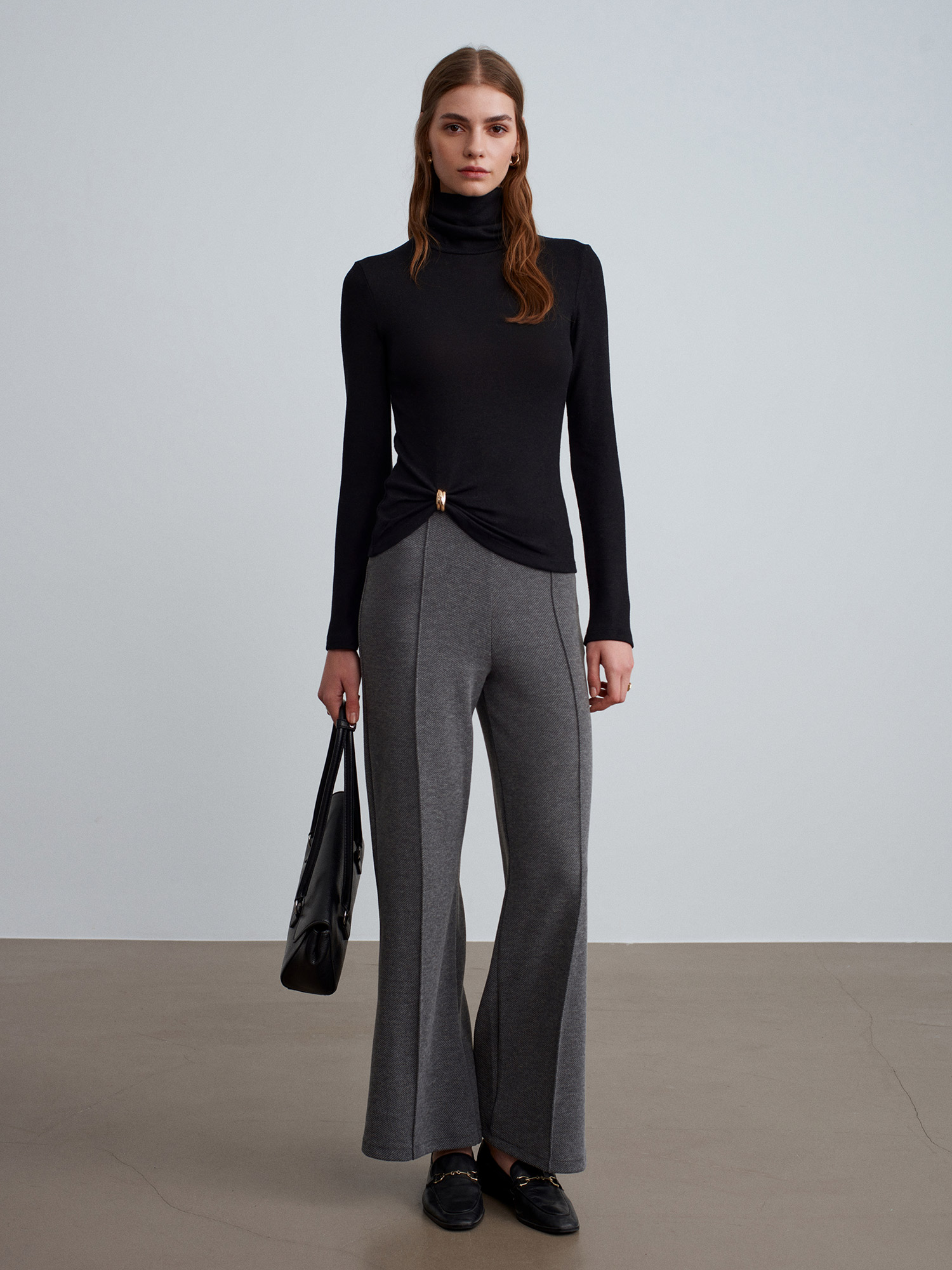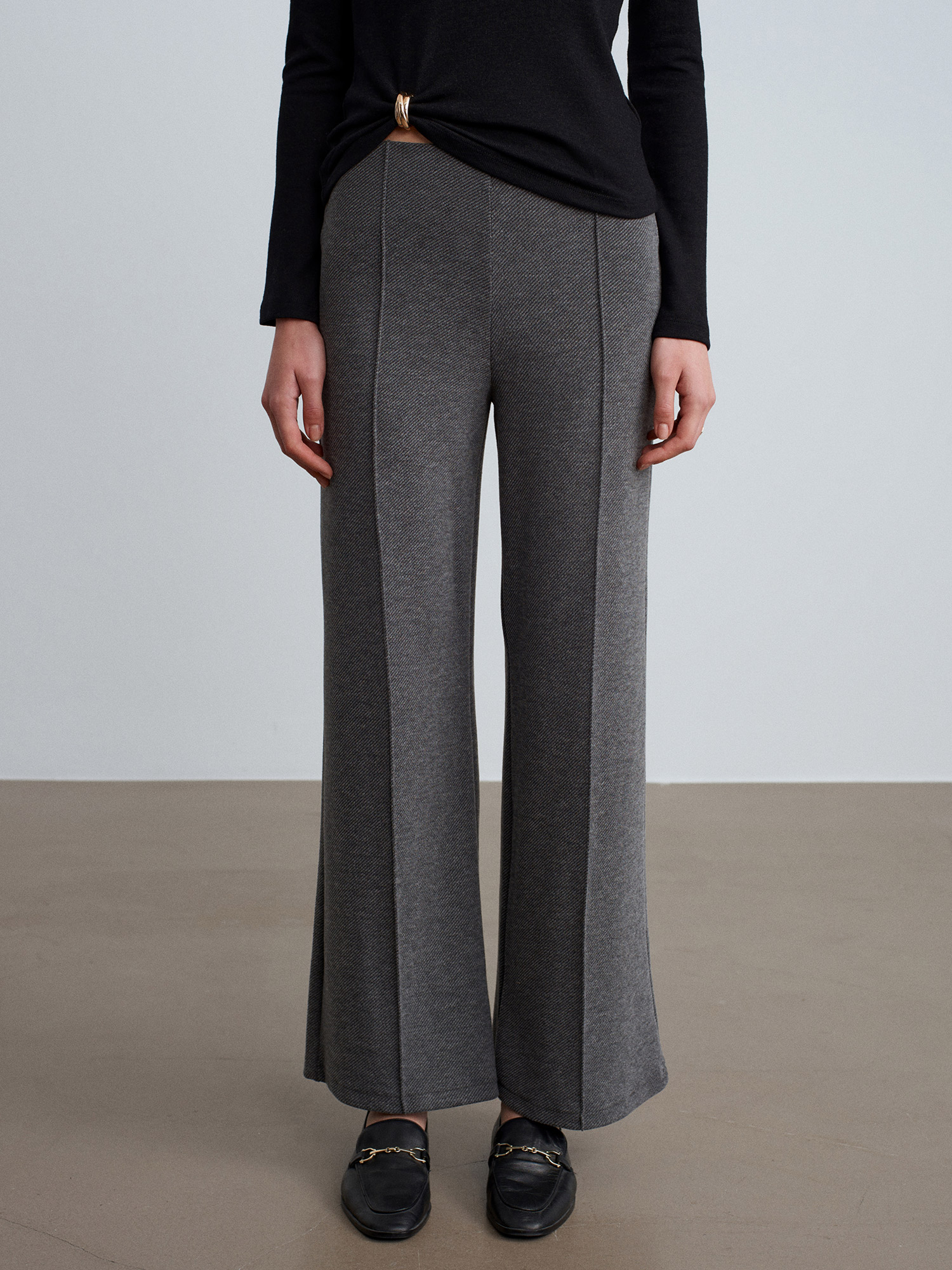 71934 Dikiş Detaylı Geniş Paça Pantolon-Füme M.