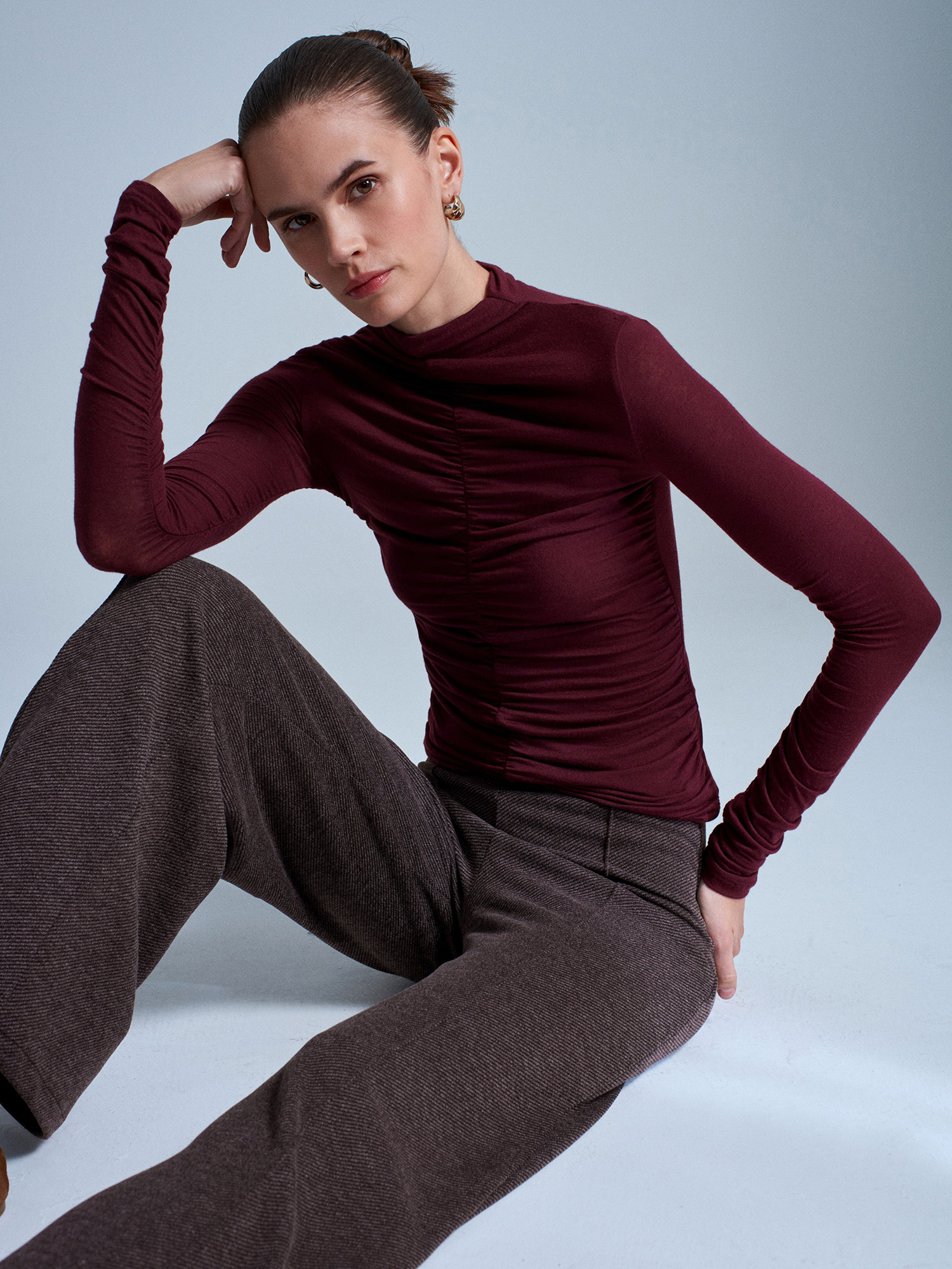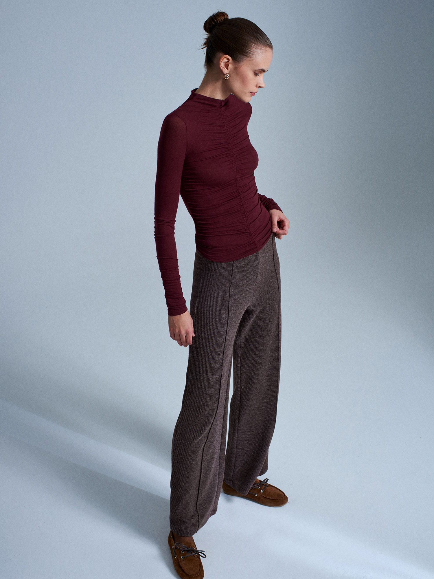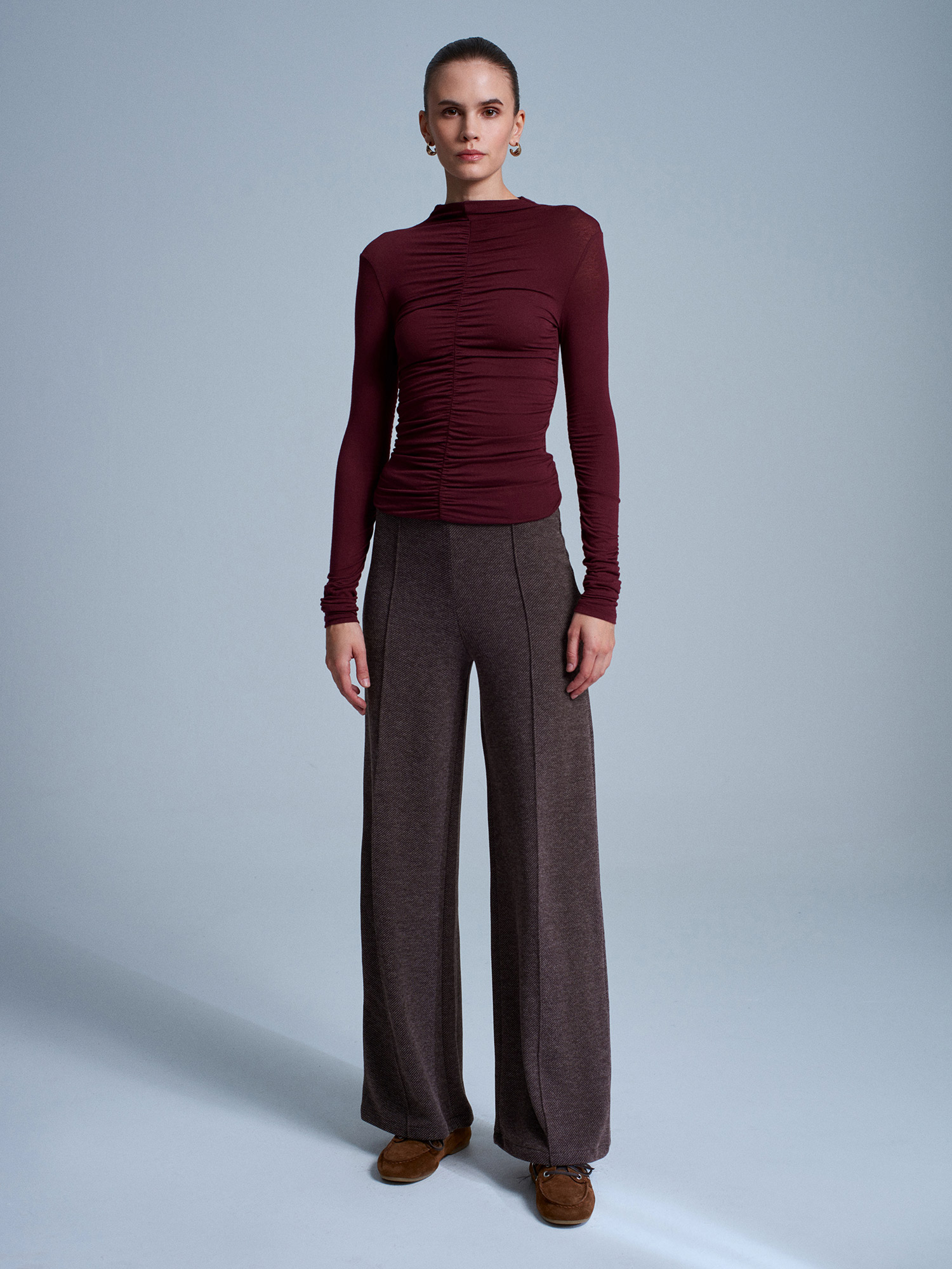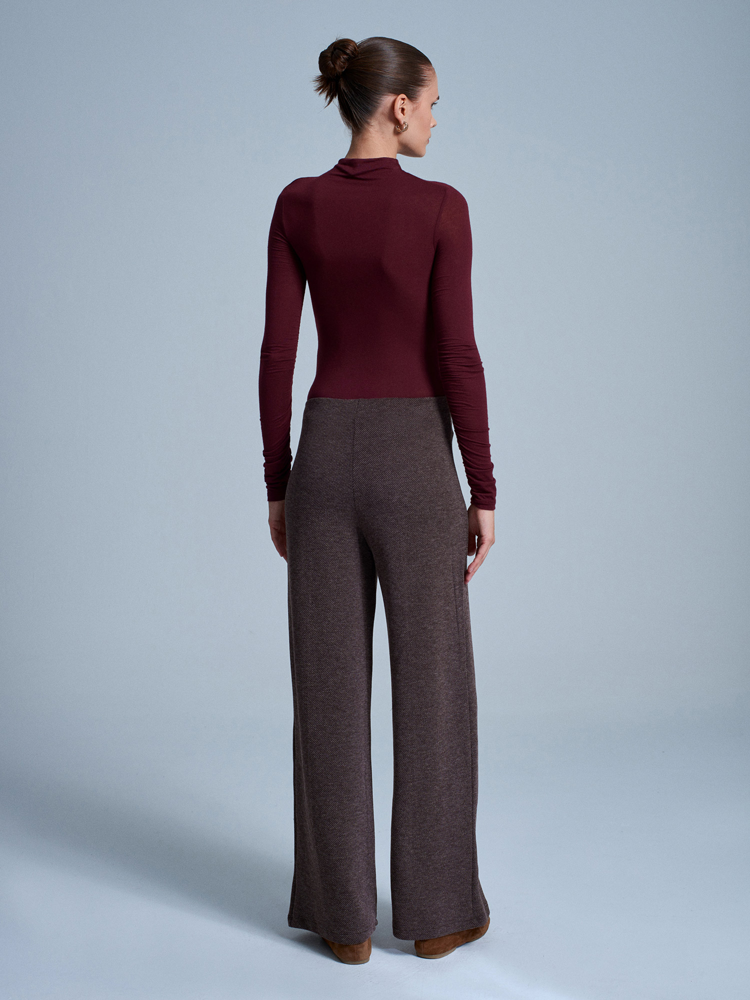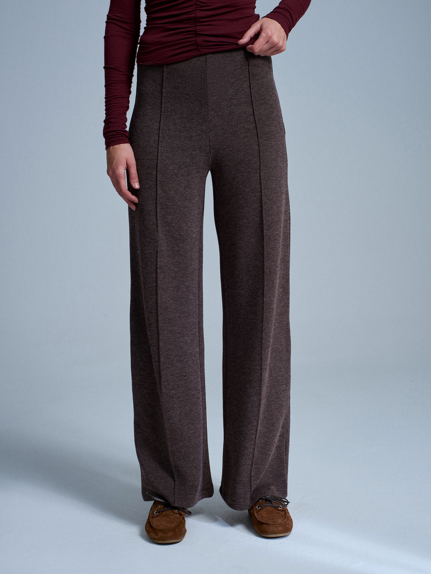 71934 Dikiş Detaylı Geniş Paça Pantolon-Kahve M.