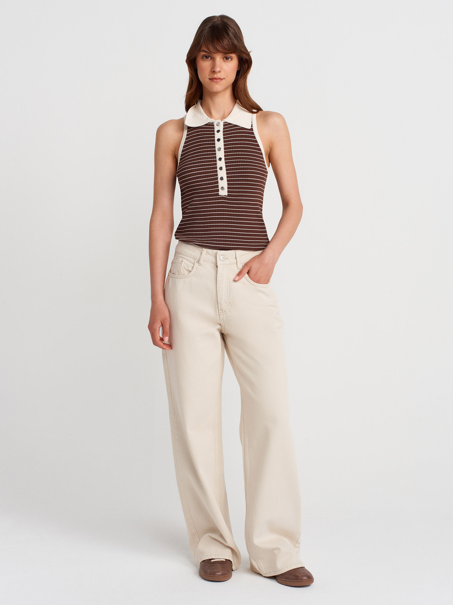 71994 Parçaboya Wideleg Denim Pantolon-Taş