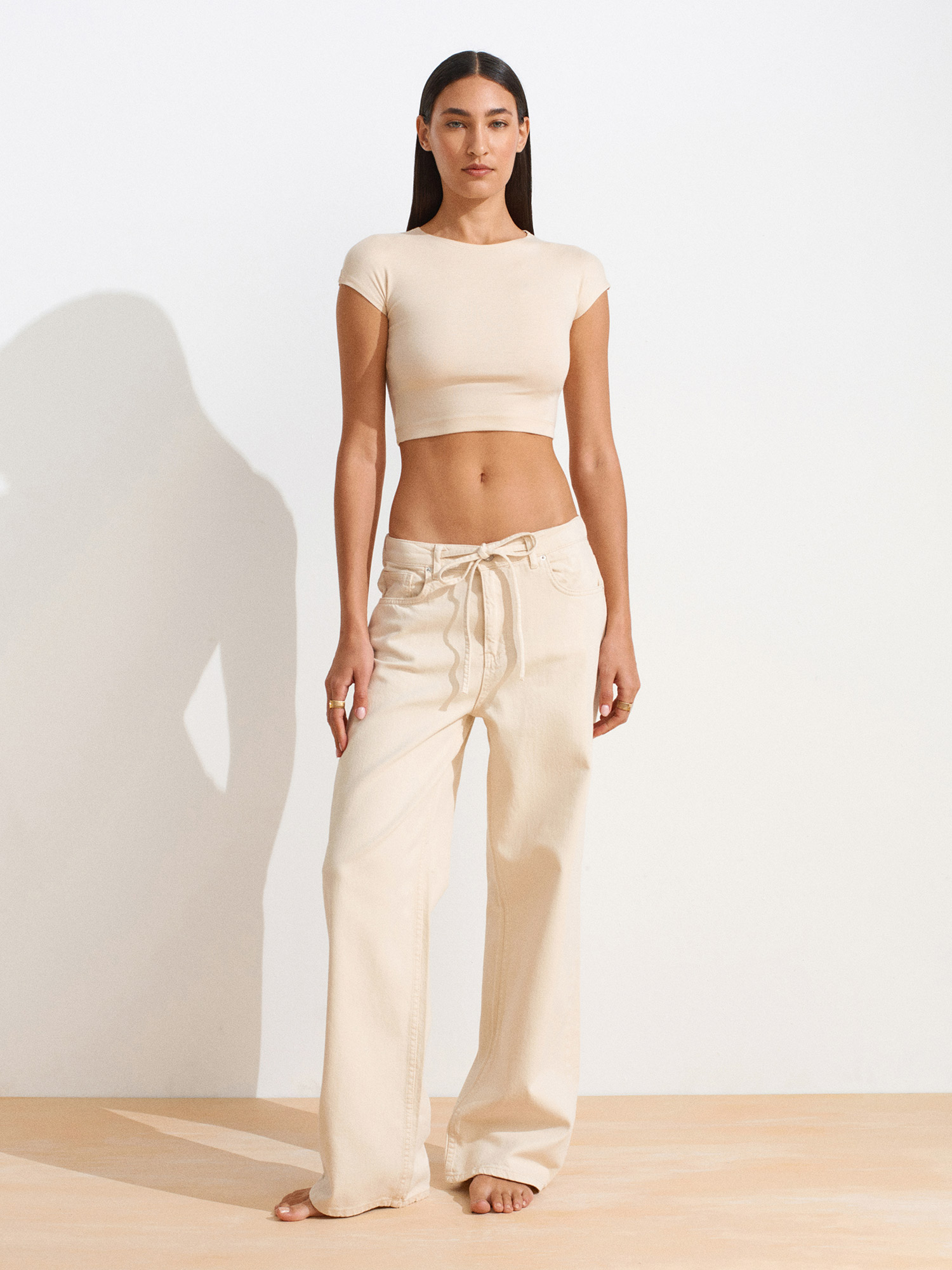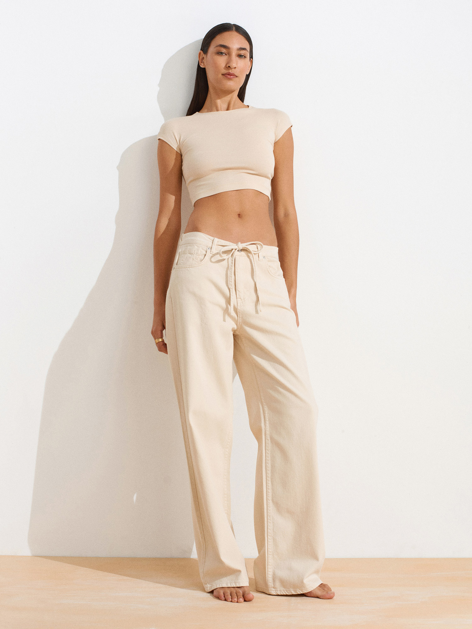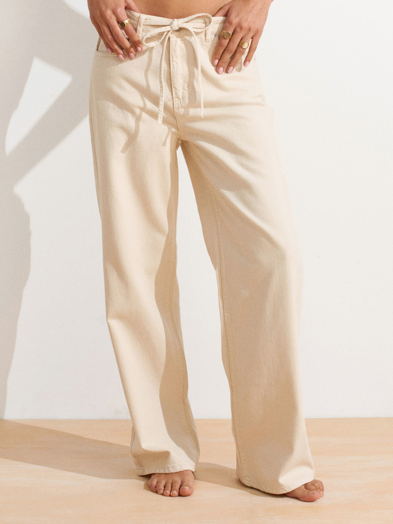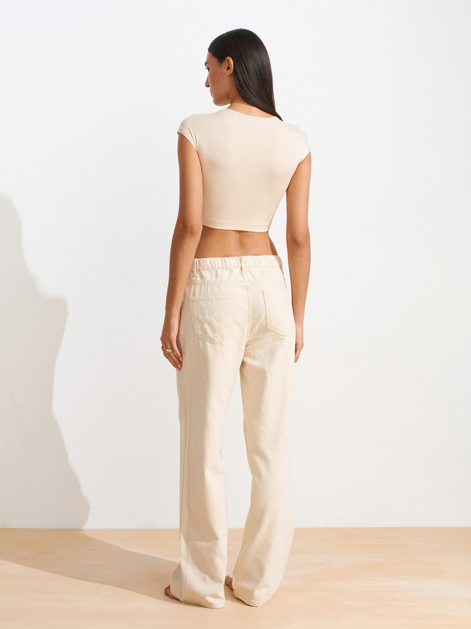 72009 Arkası Lastikli Pamuklu Denim Pantolon-Taş