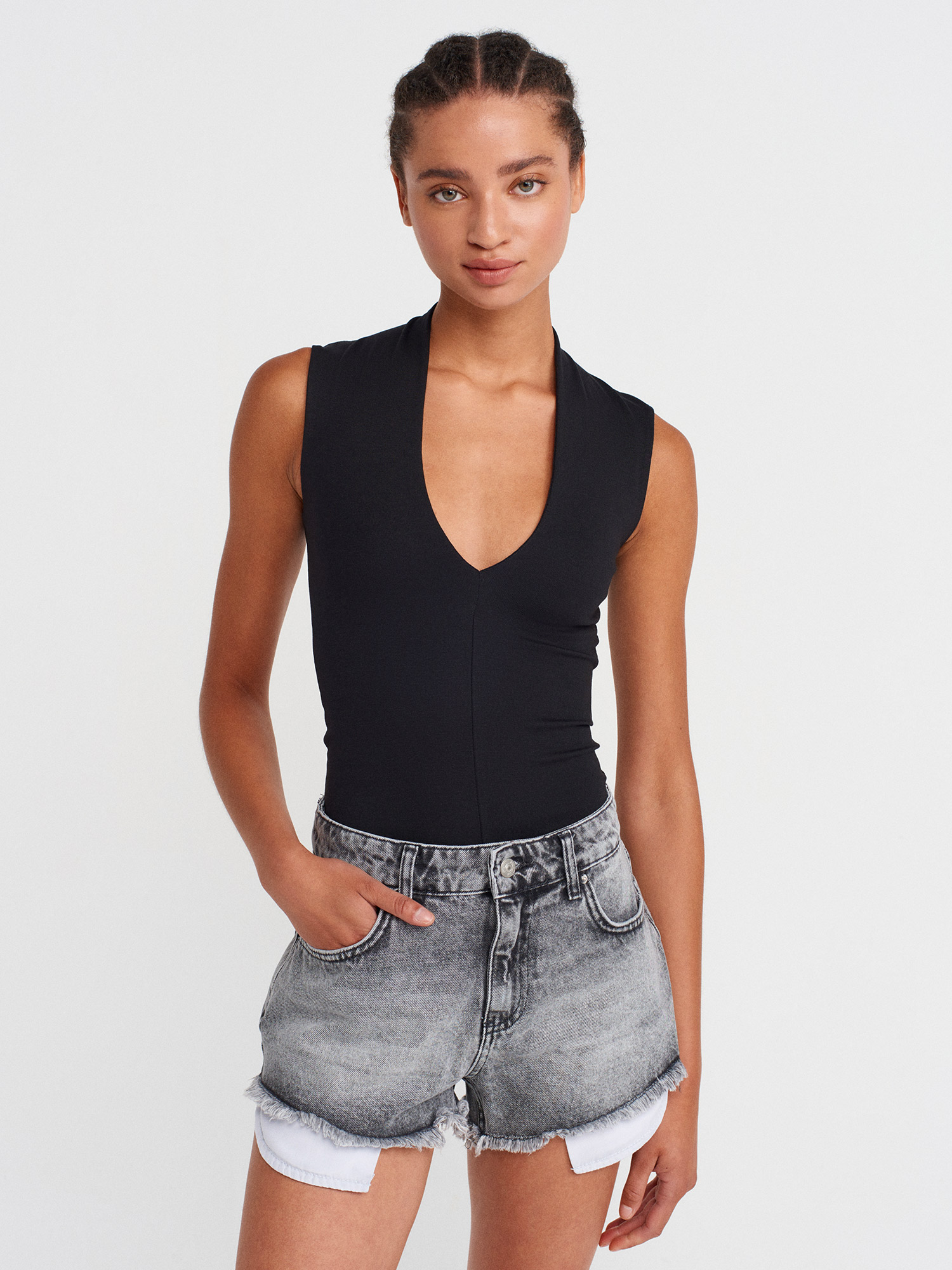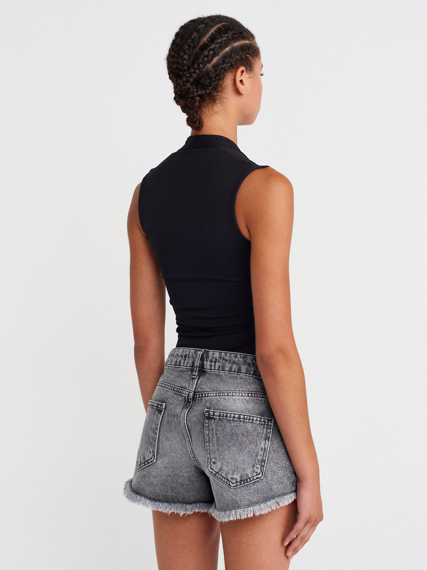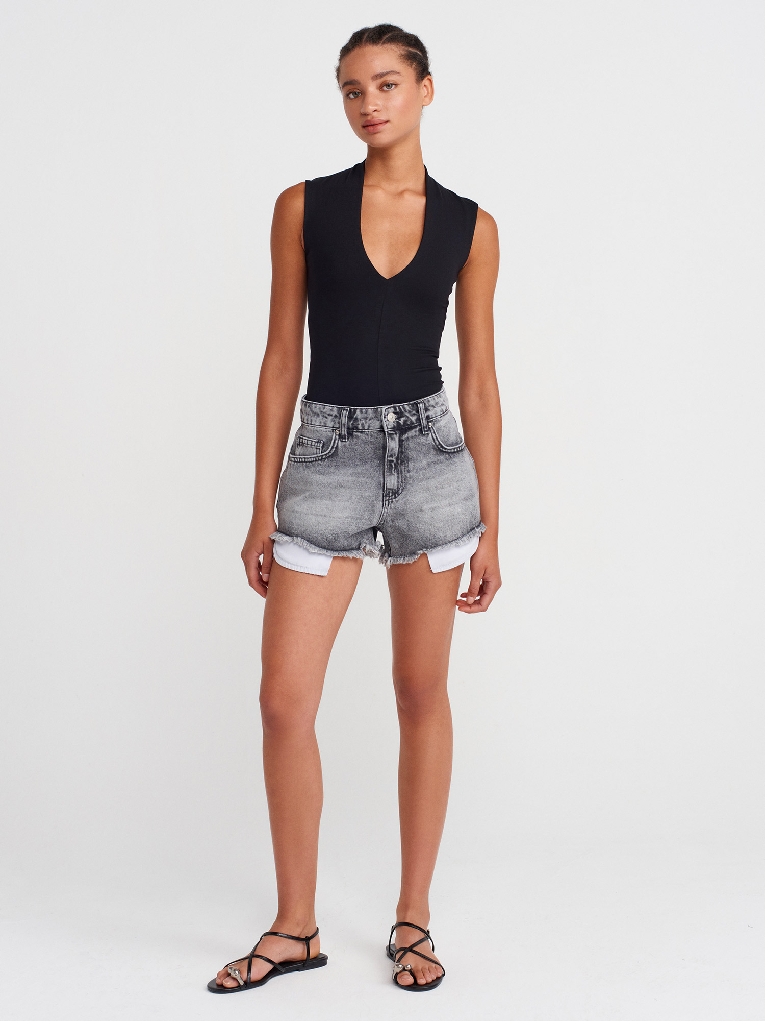 72014 Kar Yıkama Kısa Denim Şort-Antrasit