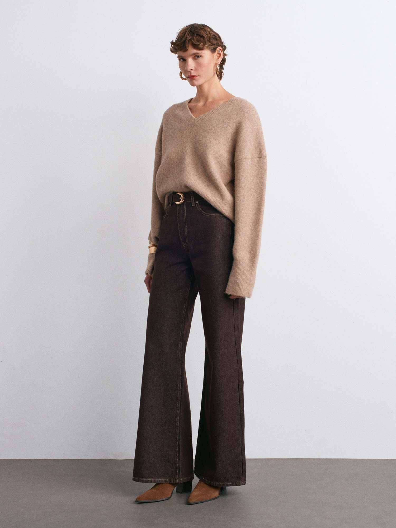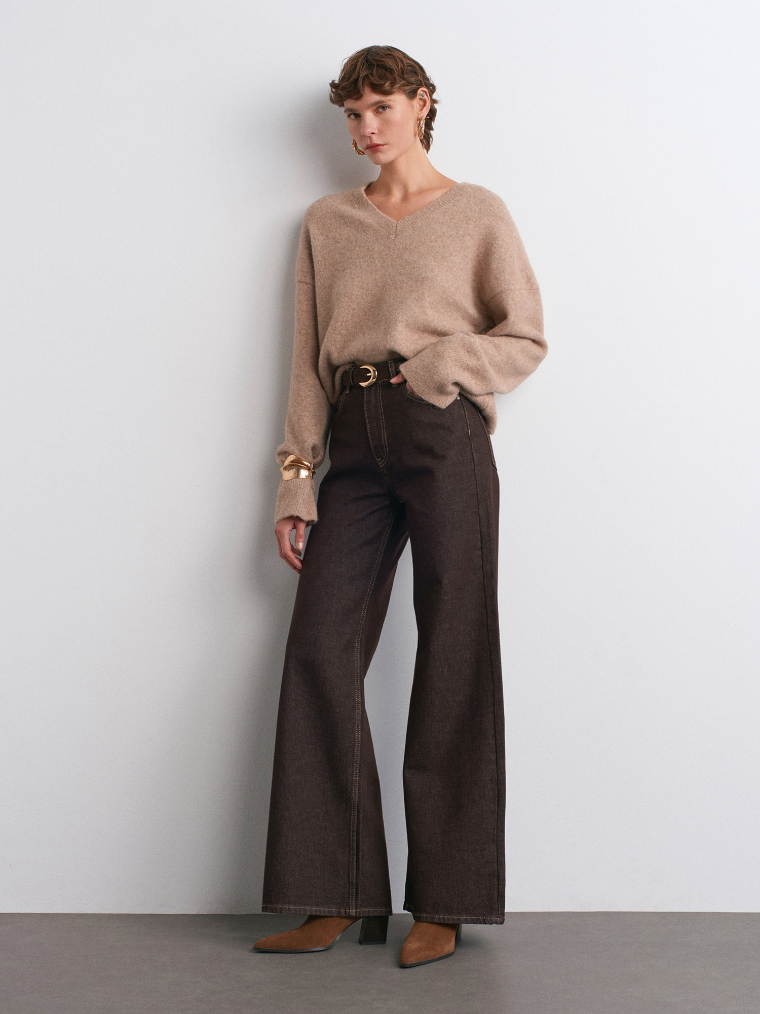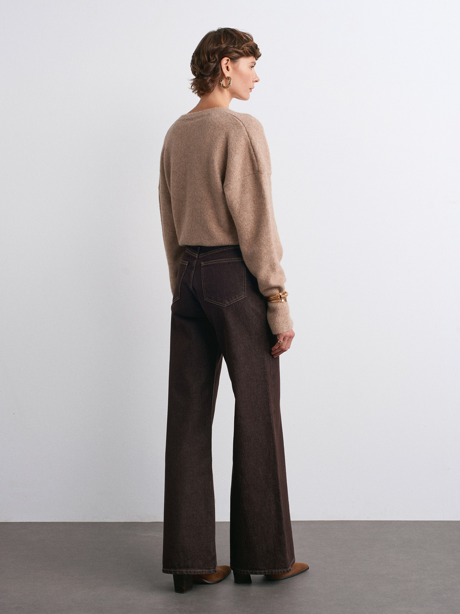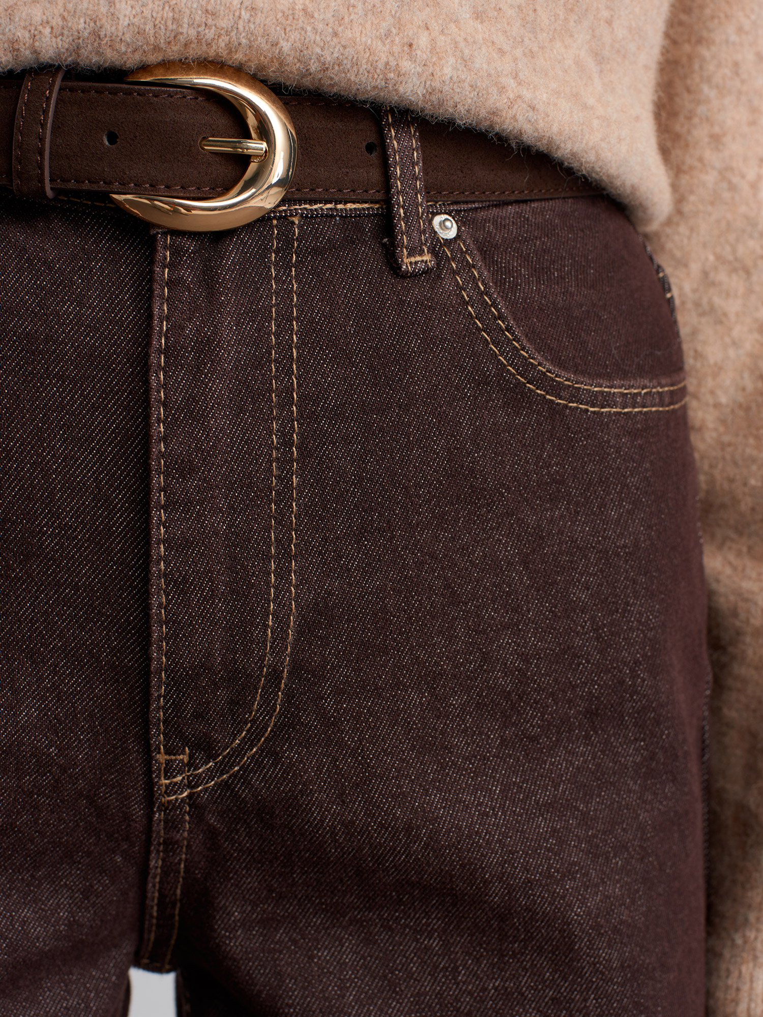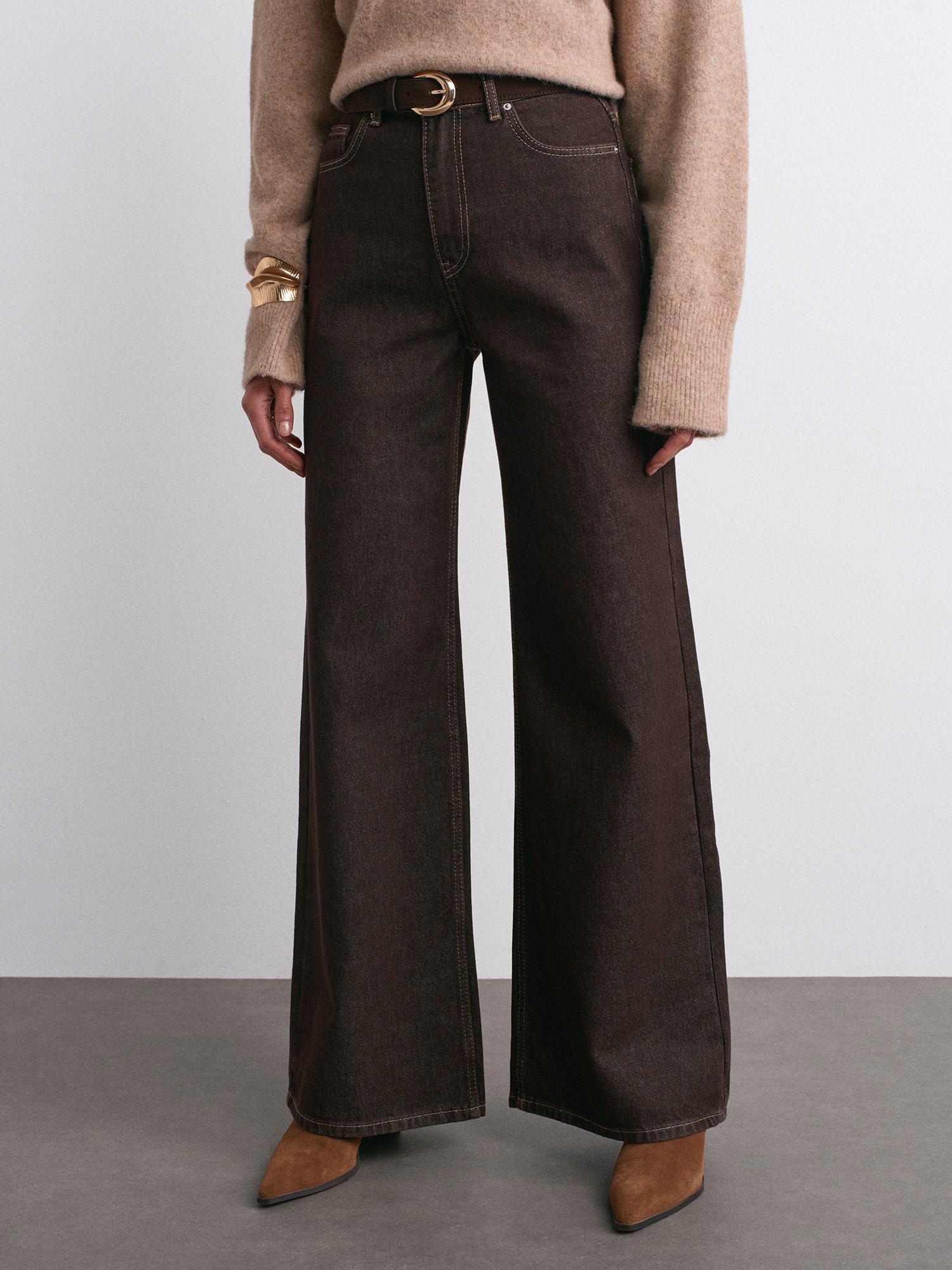 72033 Geniş Kalıp Renkli Denim Pantolon-Koyu Kahve